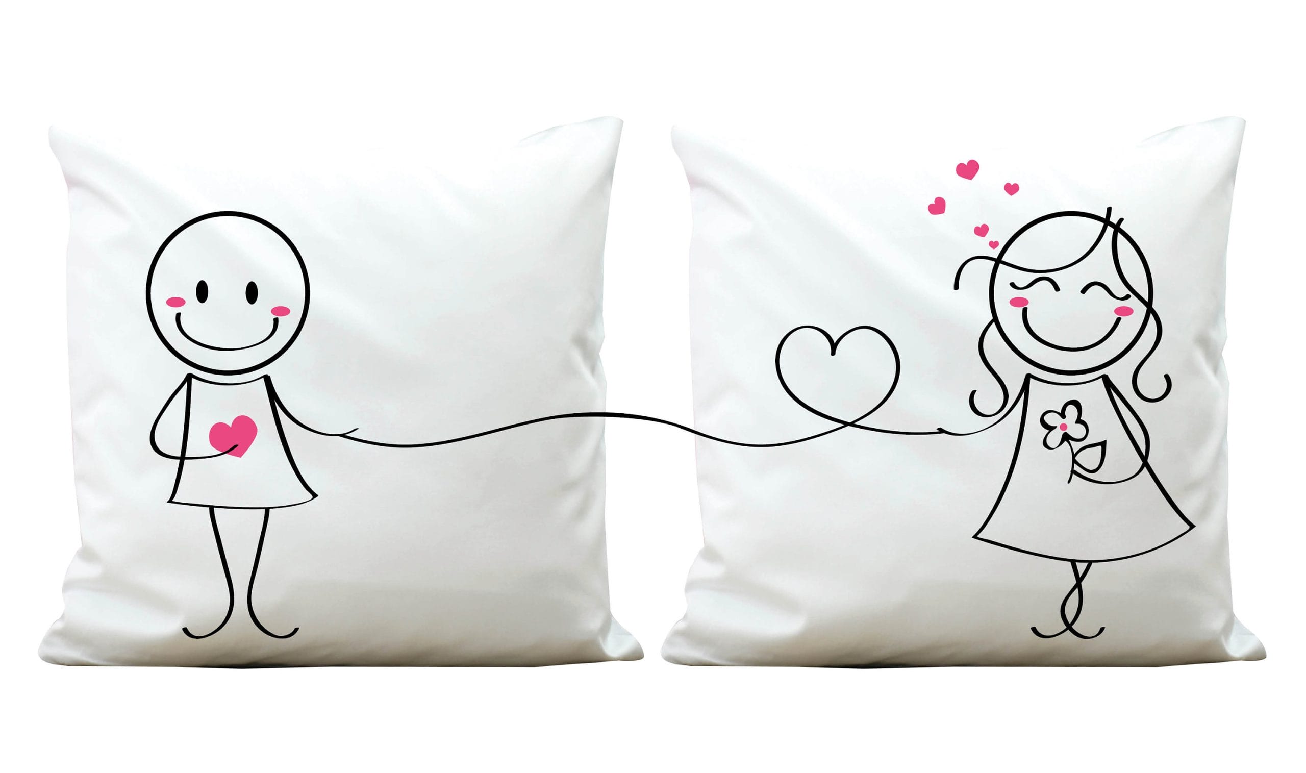 2 Kissen Liebespaar Strichmännchen Partnerkissen, Polyester, Geschenk Geburtstag