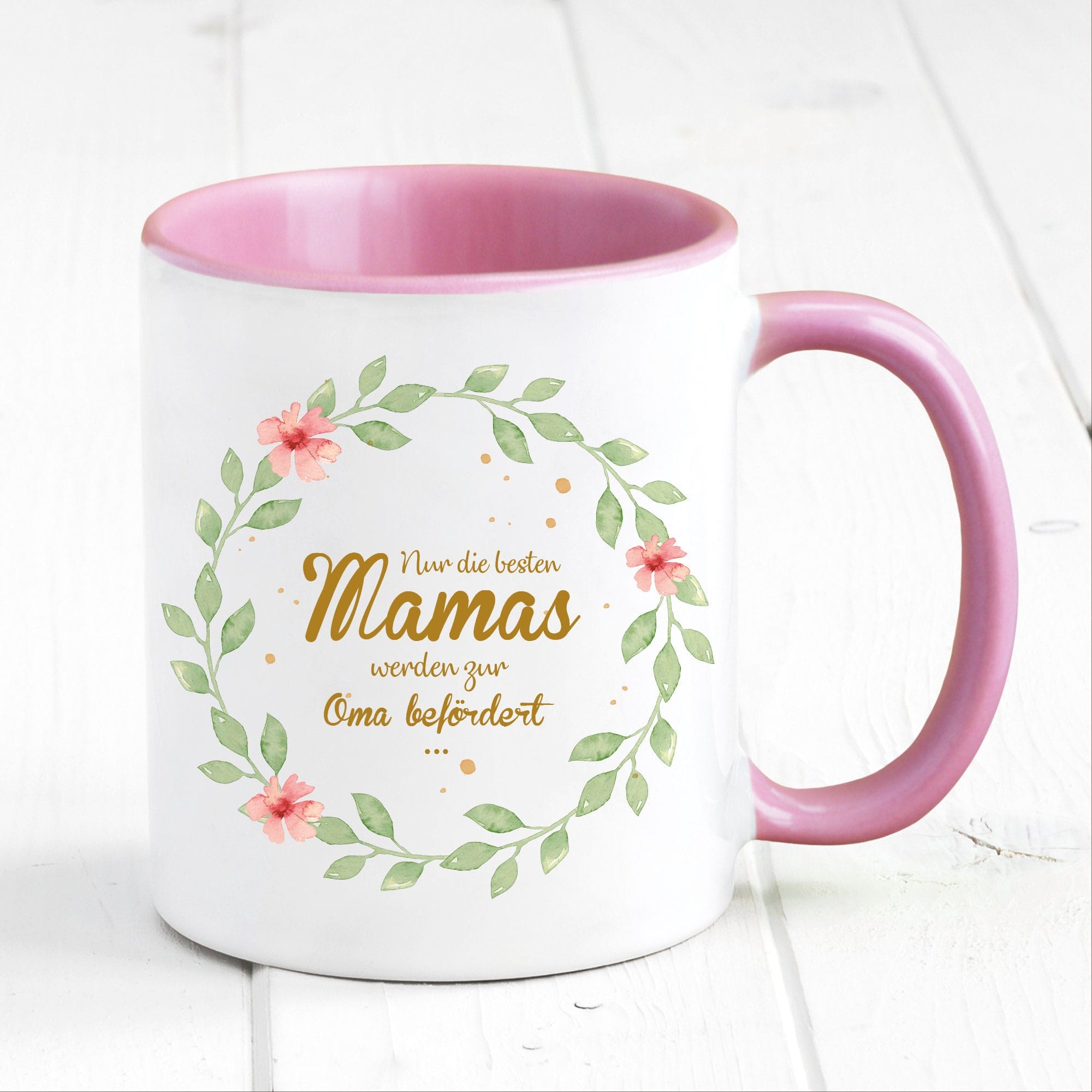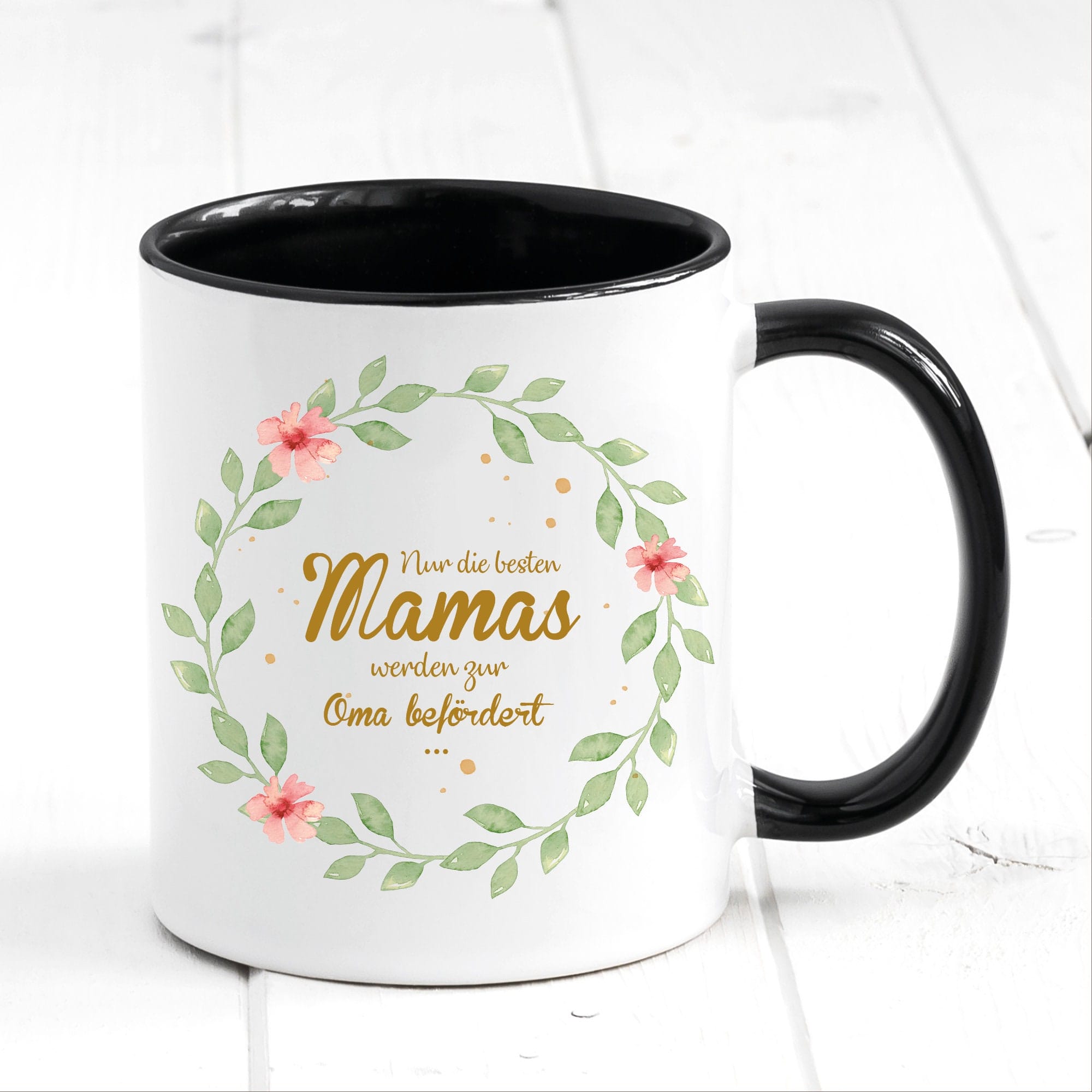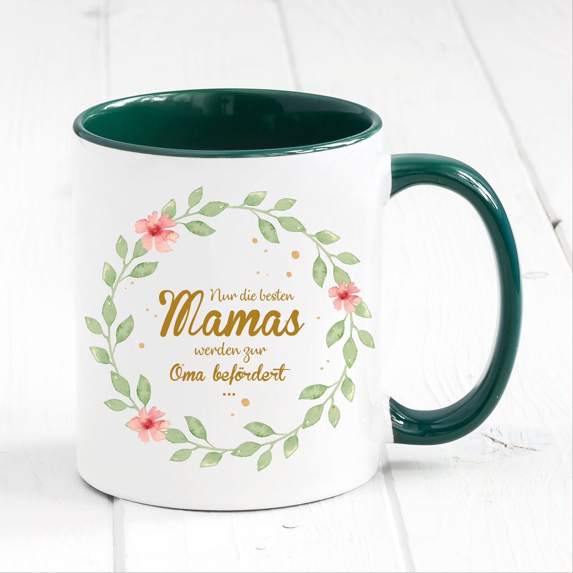 Bedruckte Tasse Nur die besten Mamas werden zur Oma befördert… Geschenk Mama Oma Blätterkranz mit Blumen, Geschenk zu Weihnachten