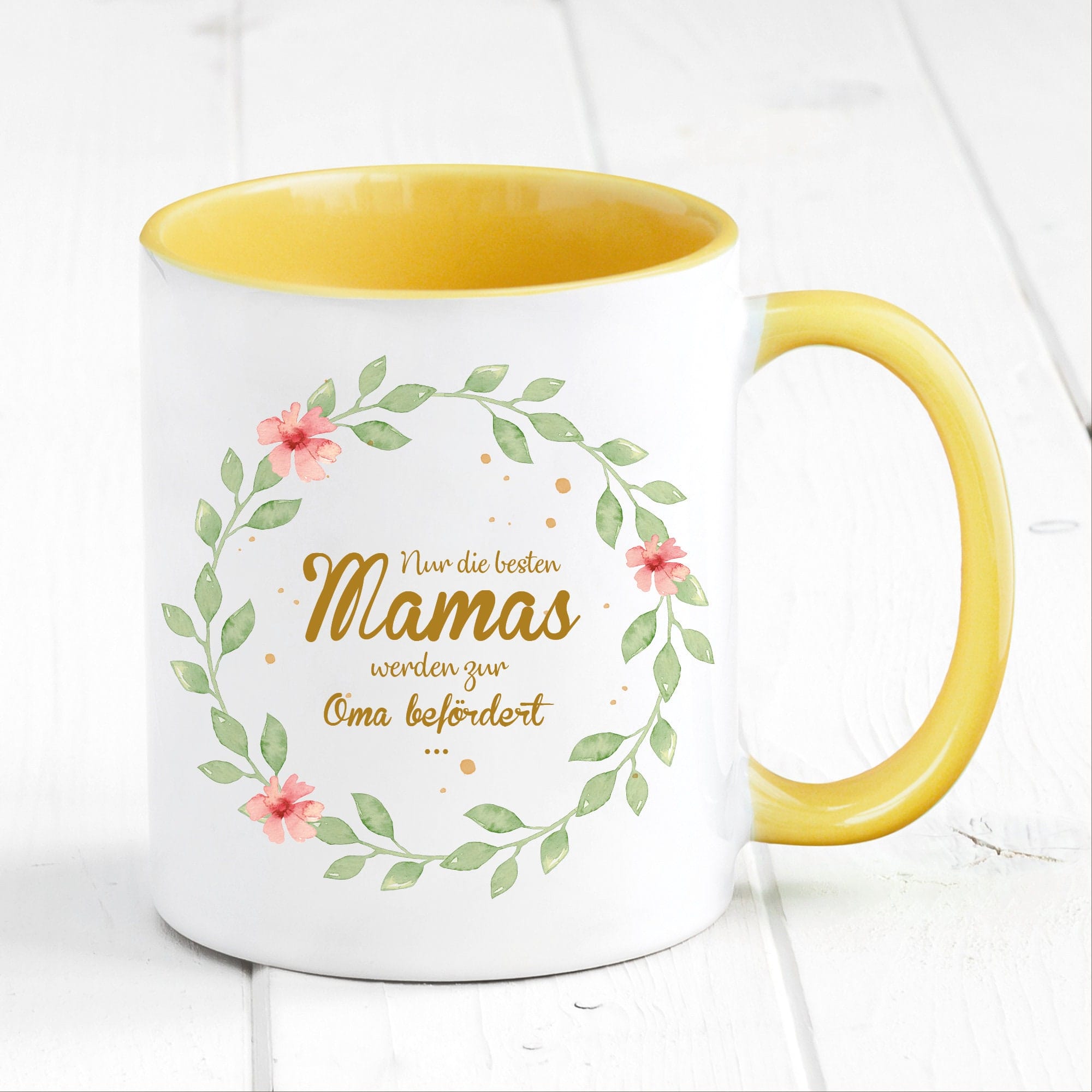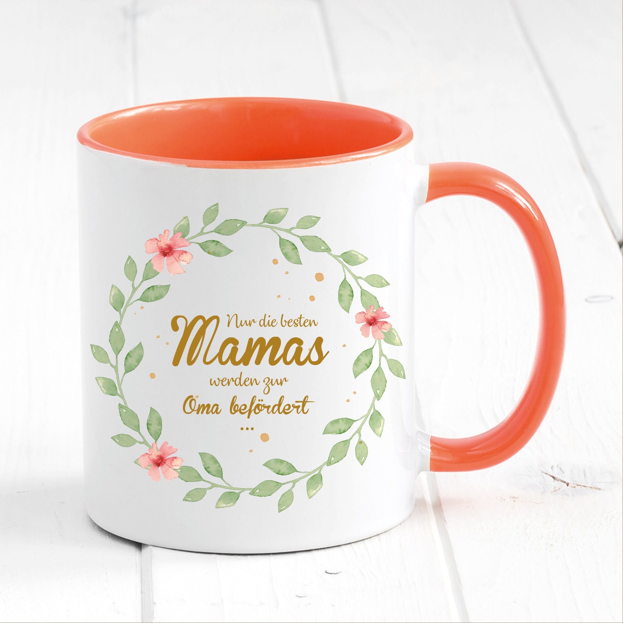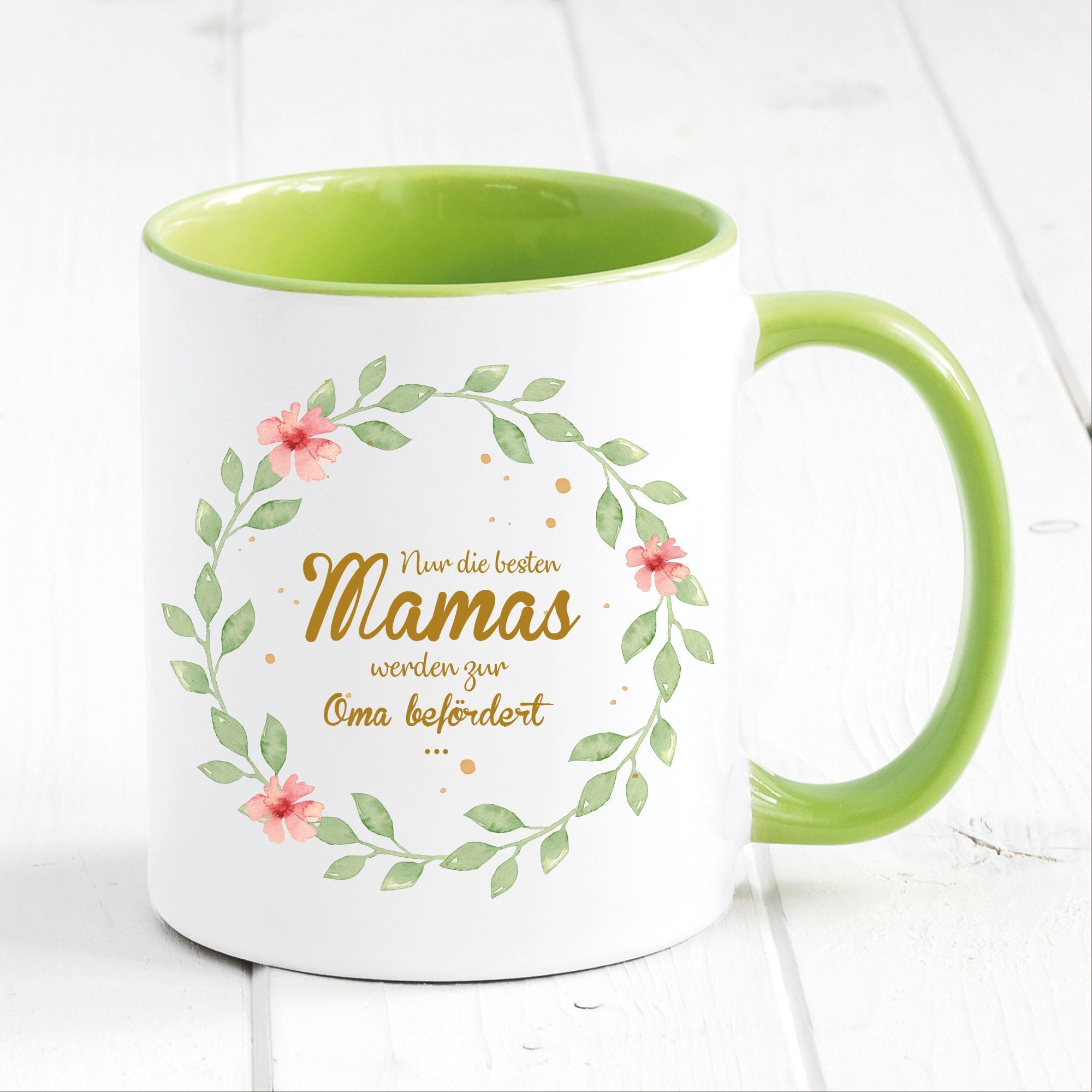 Bedruckte Tasse Nur die besten Mamas werden zur Oma befördert… Geschenk Mama Oma Blätterkranz mit Blumen, Geschenk zu Weihnachten