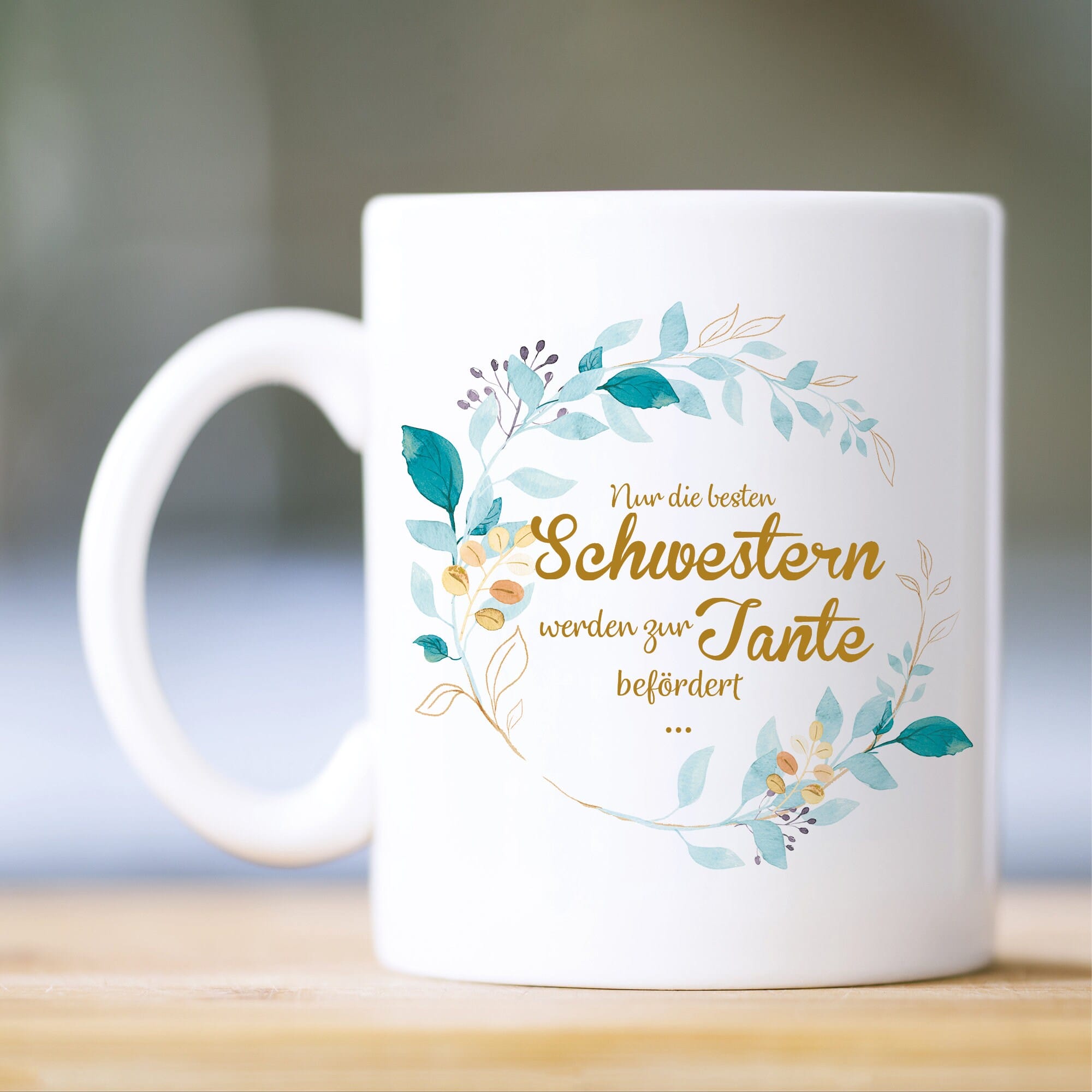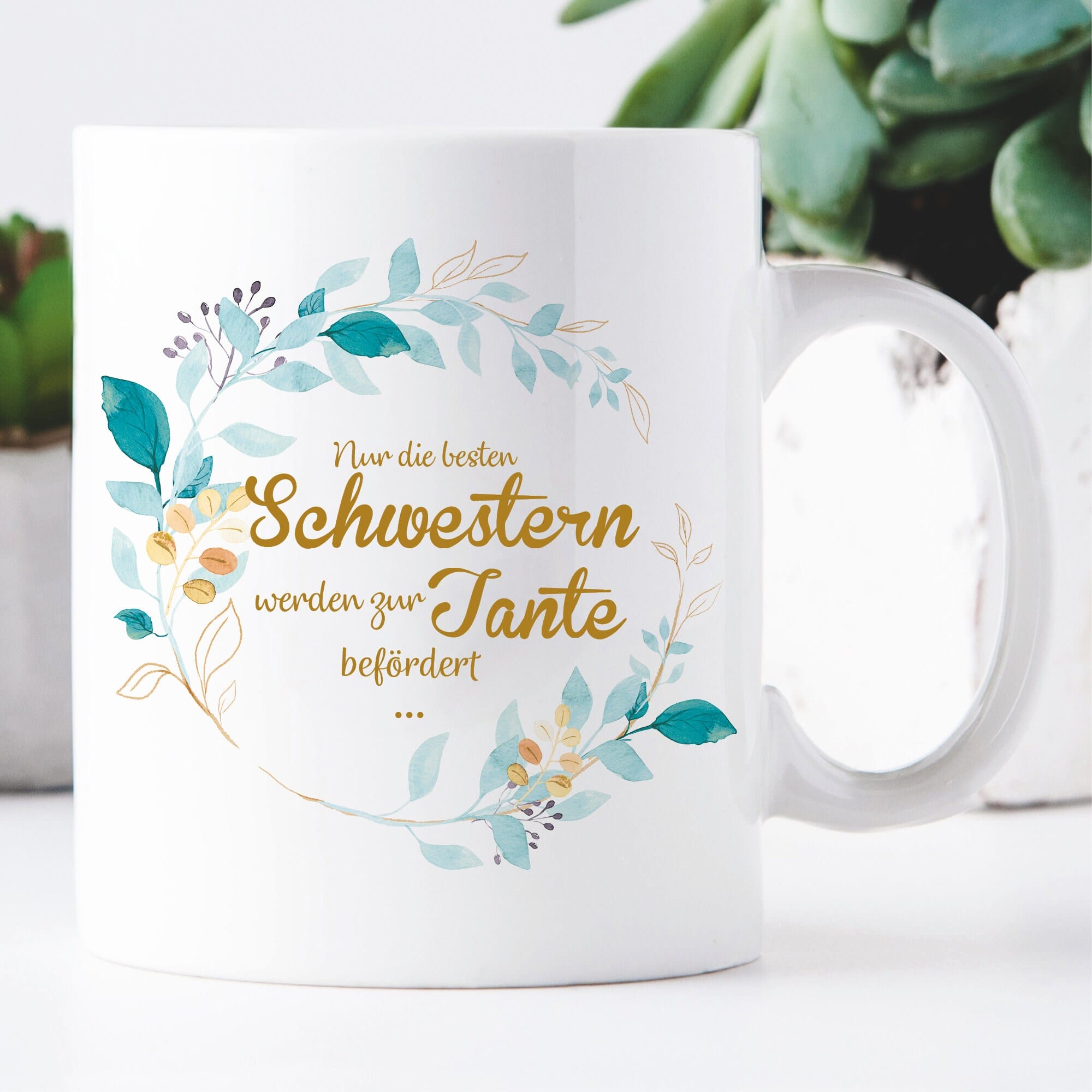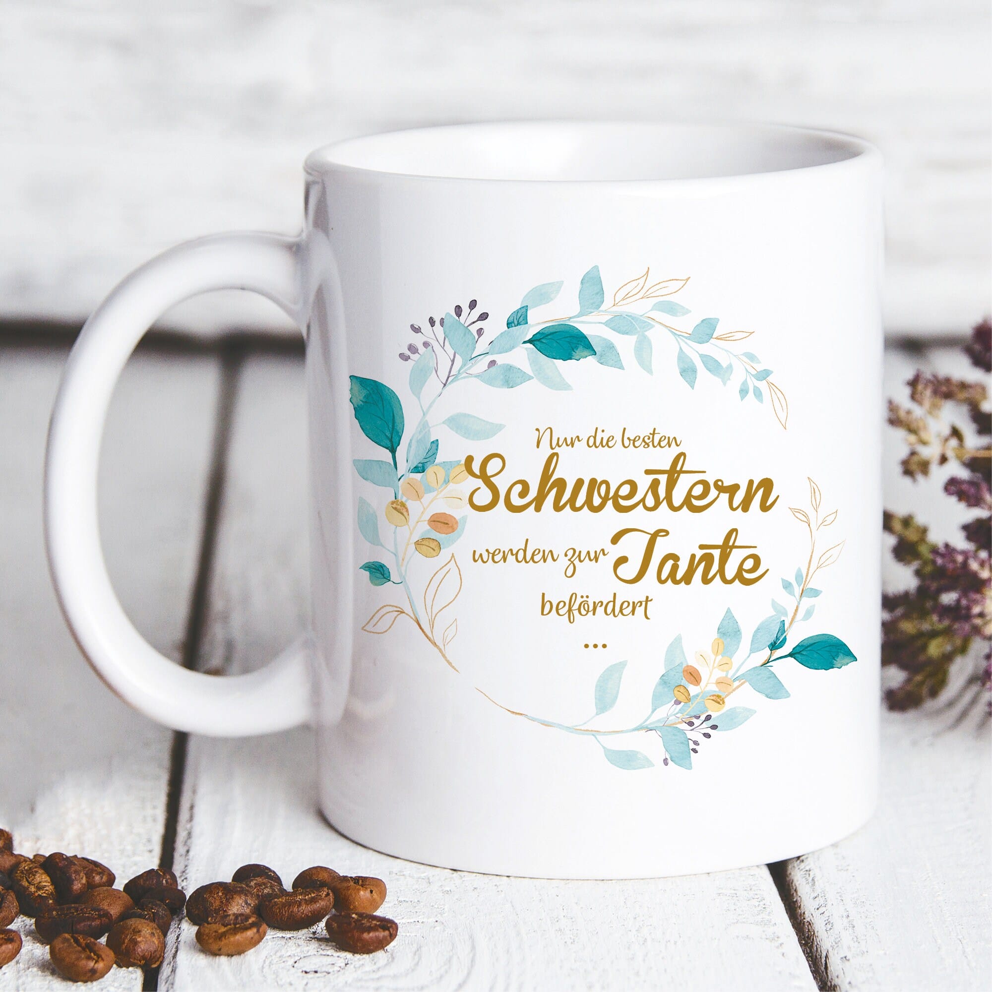 Die Kaffeetasse Nur die besten Schwestern werden zur Tante befördert…ist ein wundervolles Geschenk für eine frisch gebackene oder werdende Tante oder Patentante.