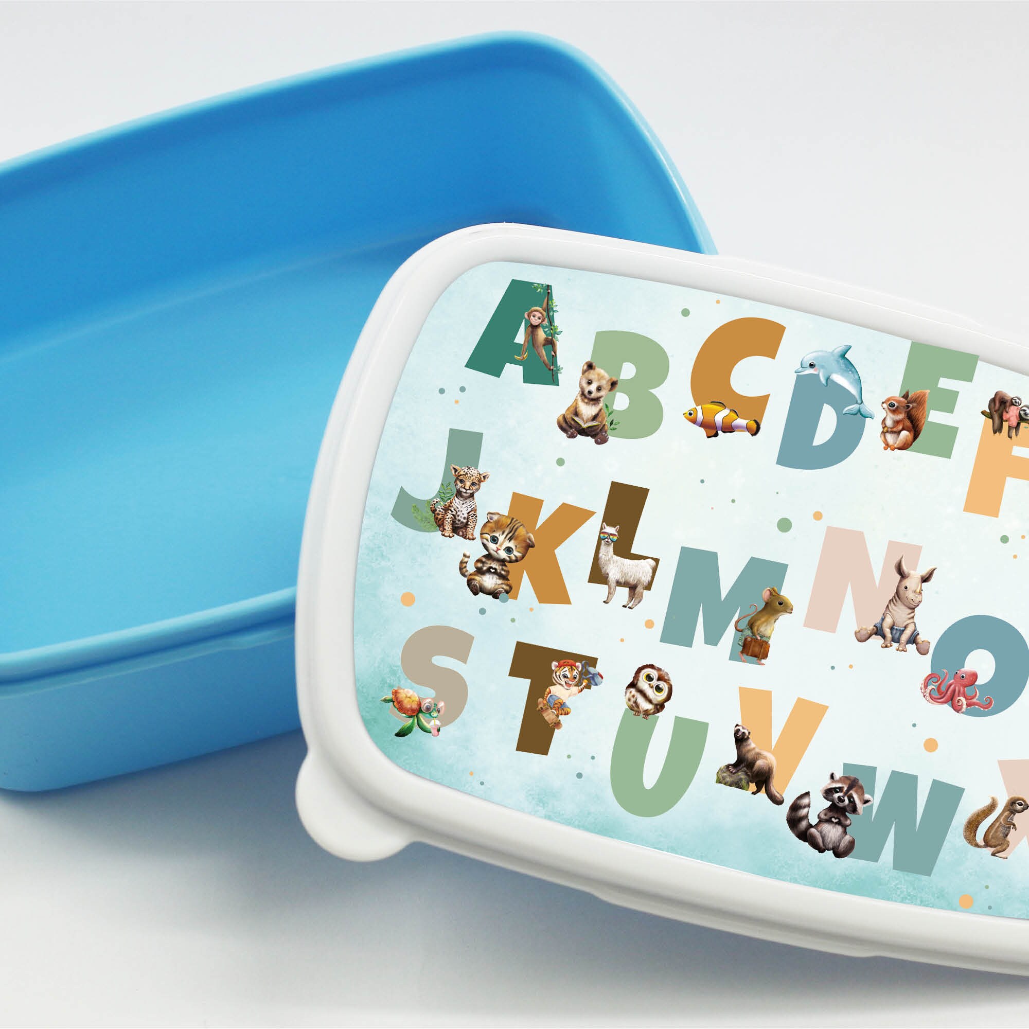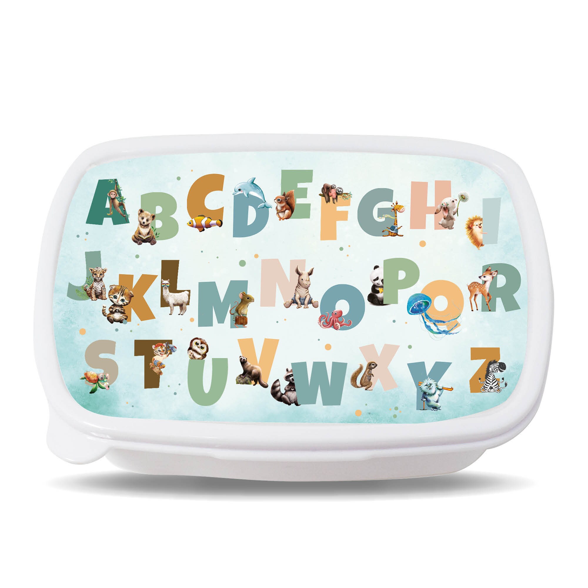 Brotdose Alphabet mit Tieren, kratz- und bruchsicher, Geschenk Einschulung Geburtstag