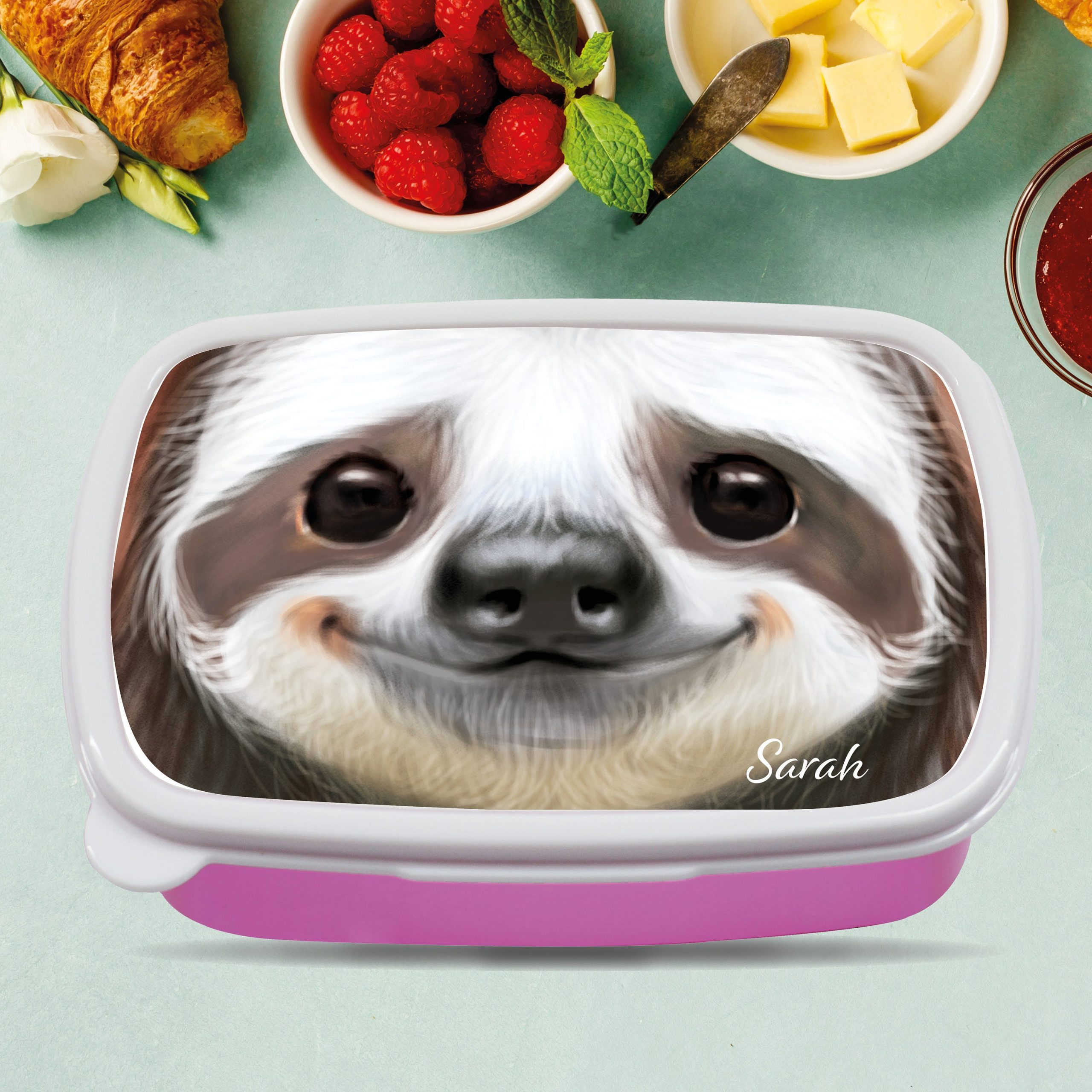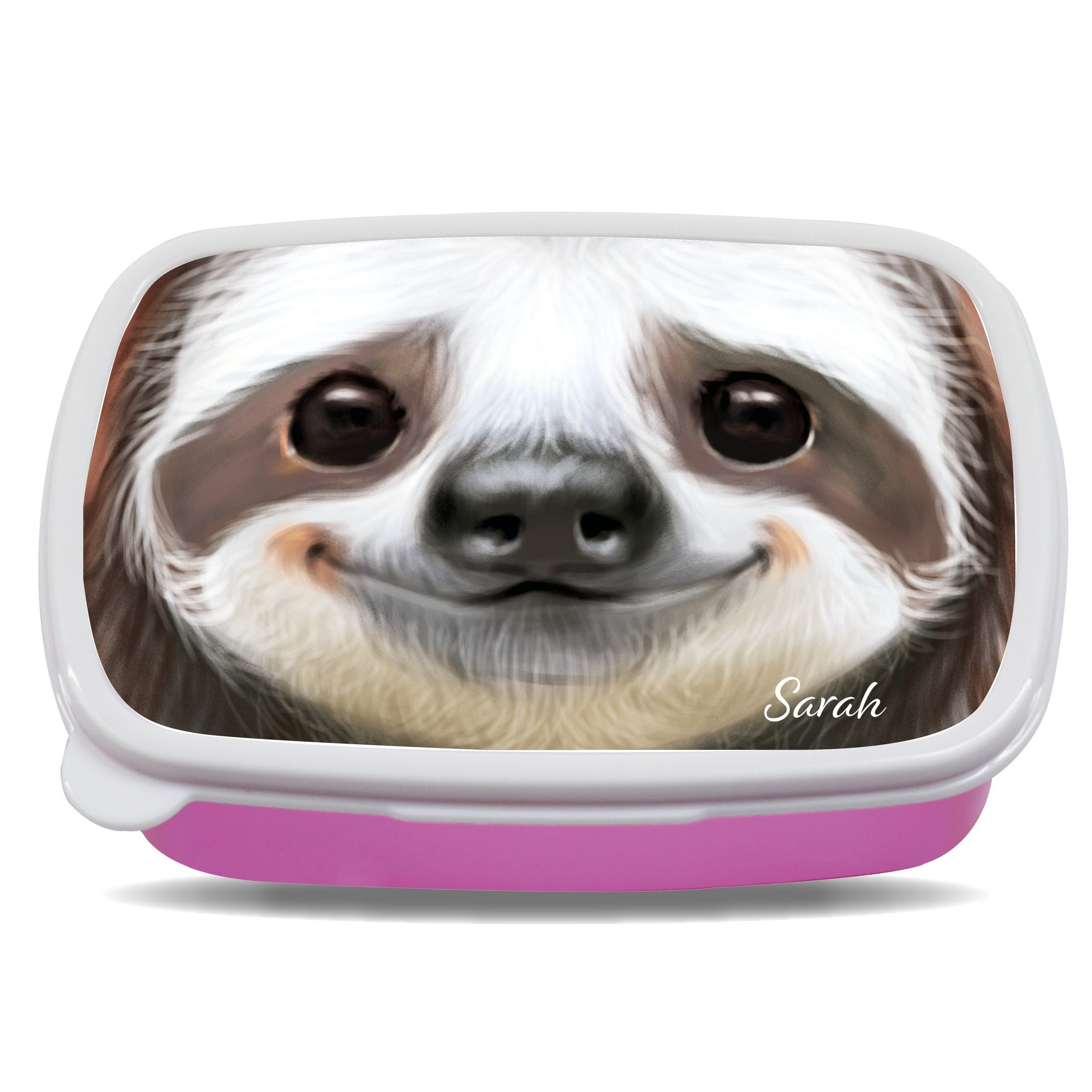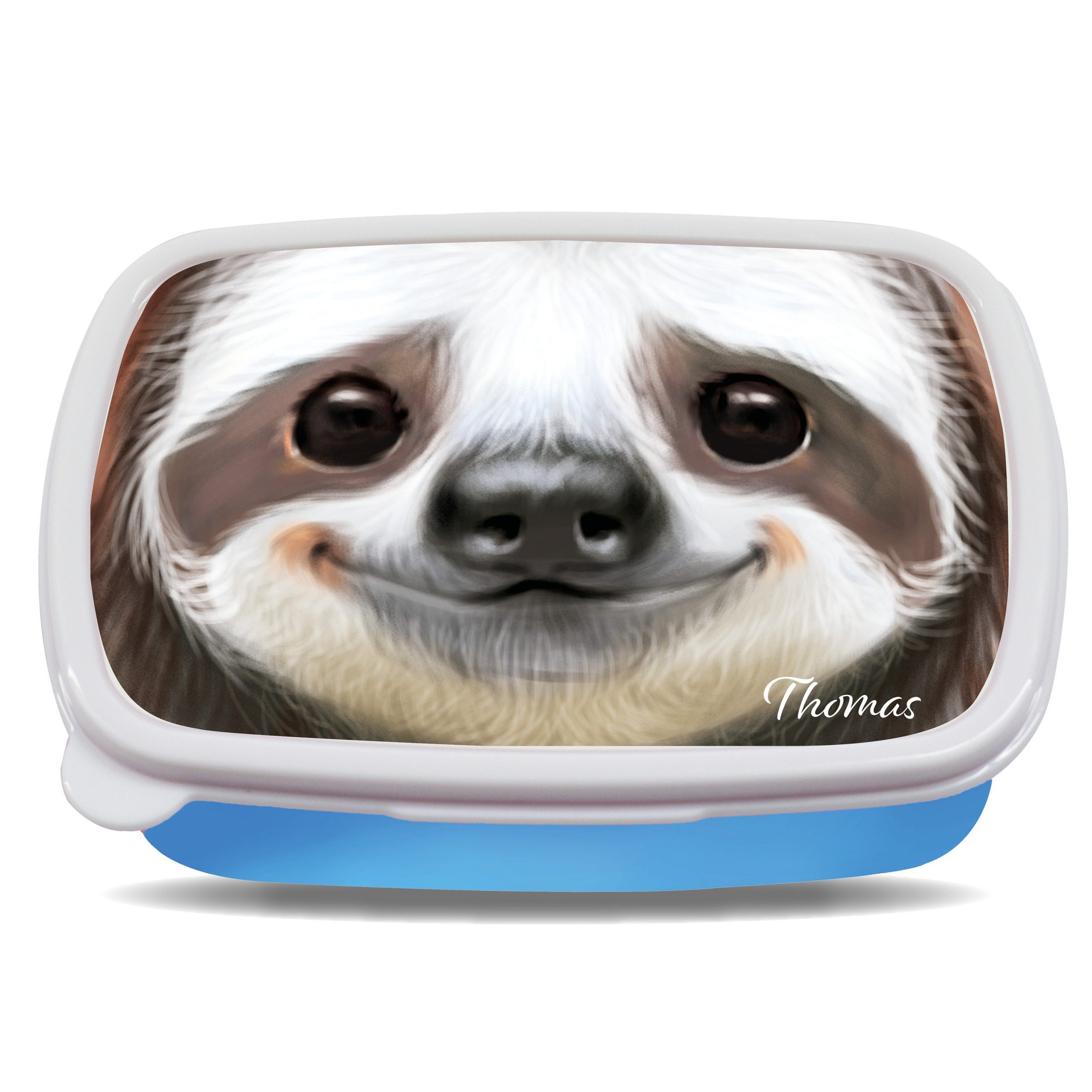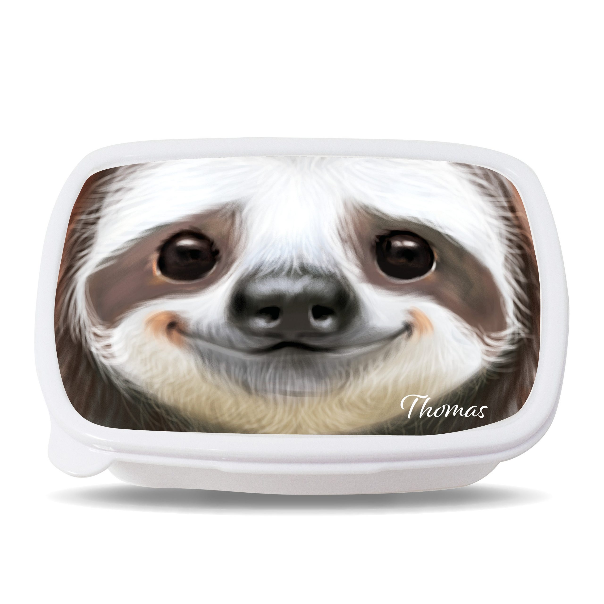 Ostergeschenk Brotdose mit dem niedlichen Faultier Gesicht personalisiert mit dem Wunschnamen, kratz- und bruchsicher, Geschenk Geburtstag