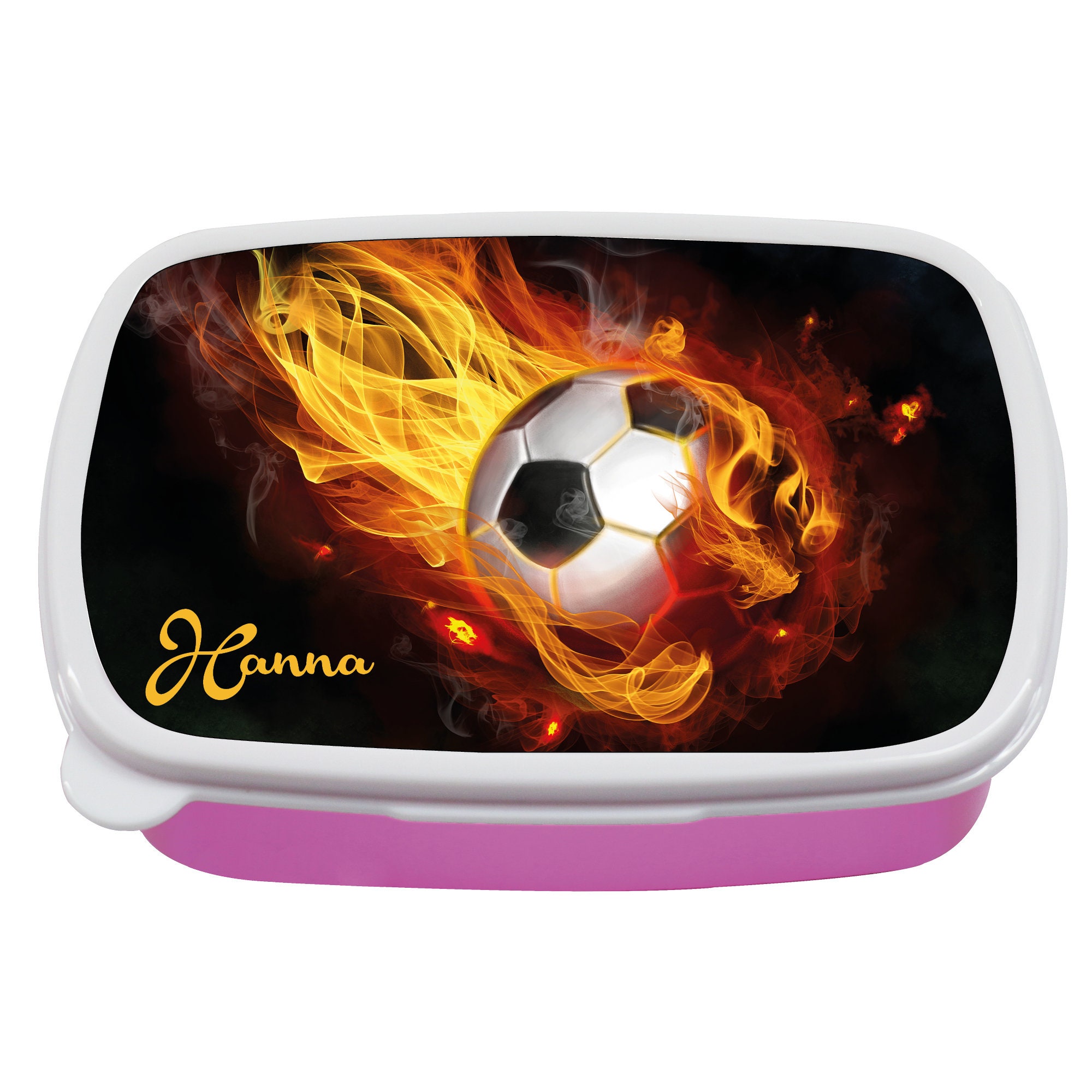 Kratz- und bruchsichere Brotdose Fußball Feuer personalisiert mit Wunschnamen Schule Geschenk Einschulung, Geschenk Geburtstag, Geschenk zur Einschulung