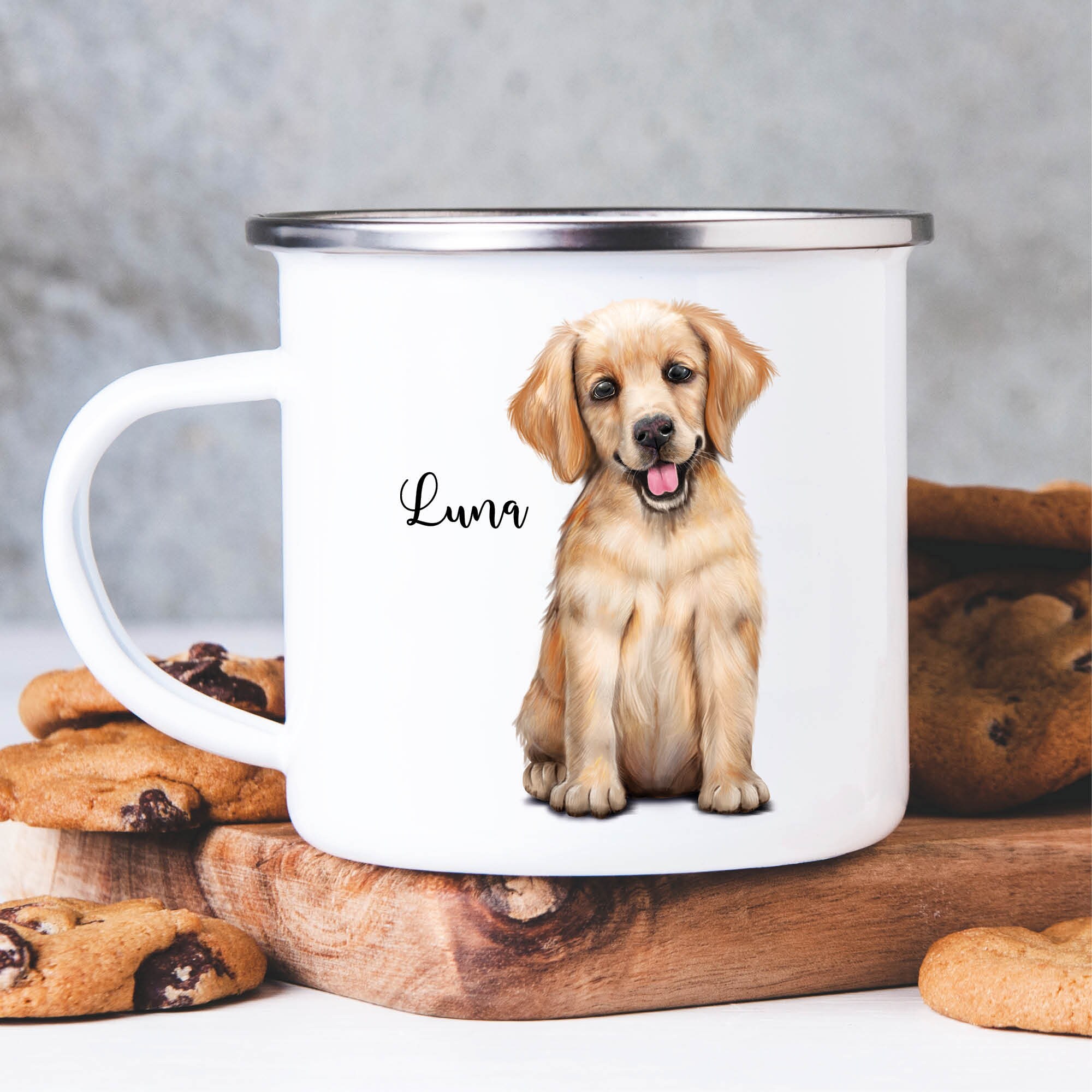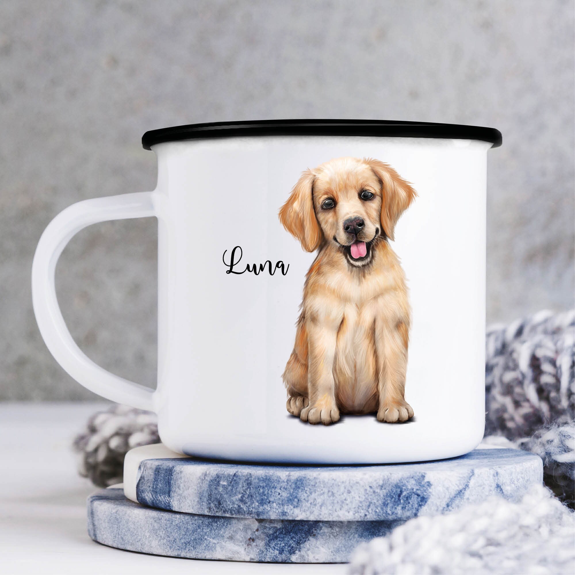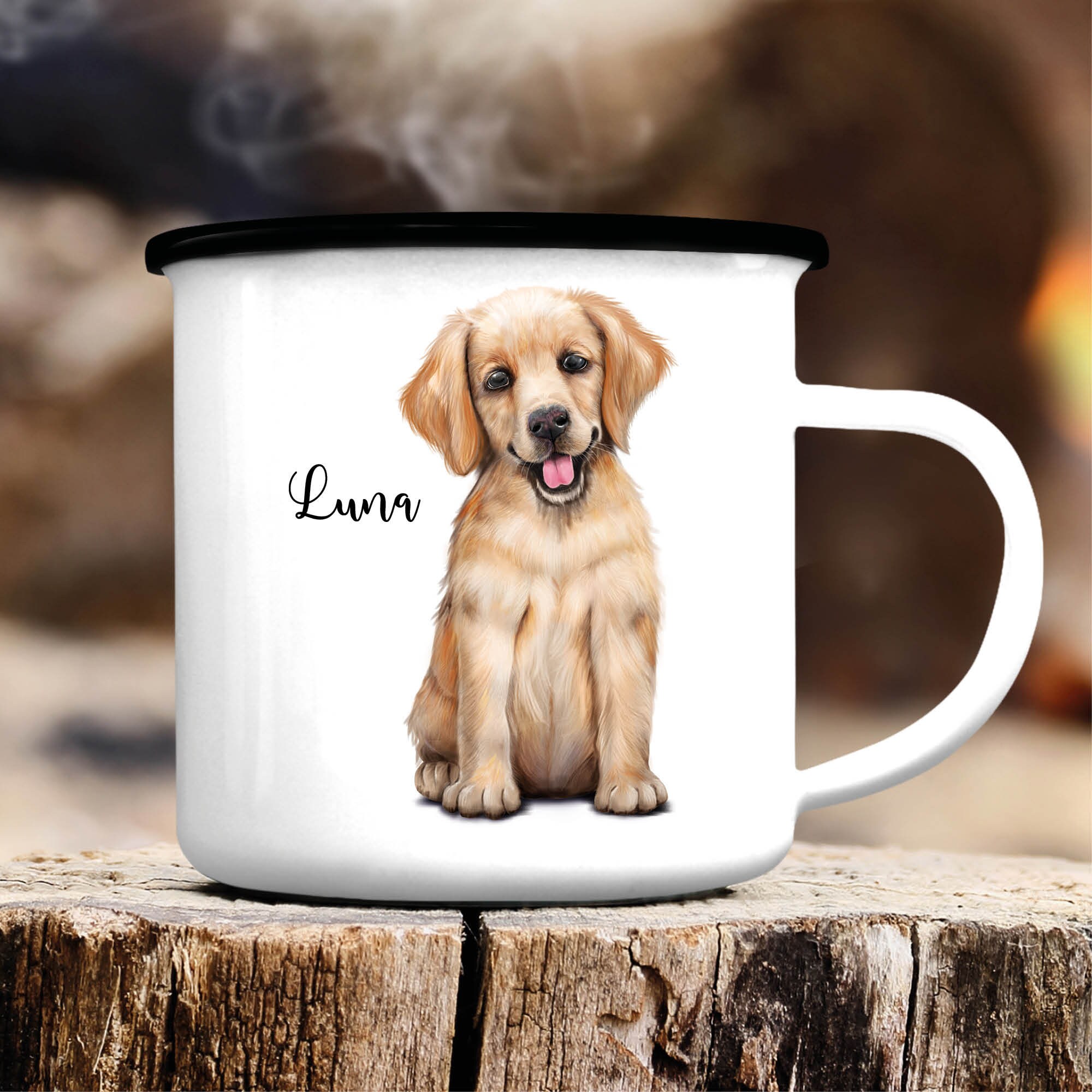 Campingbecher Emaille Hund Golden Retriever mit Wunschname Emaille Tasse