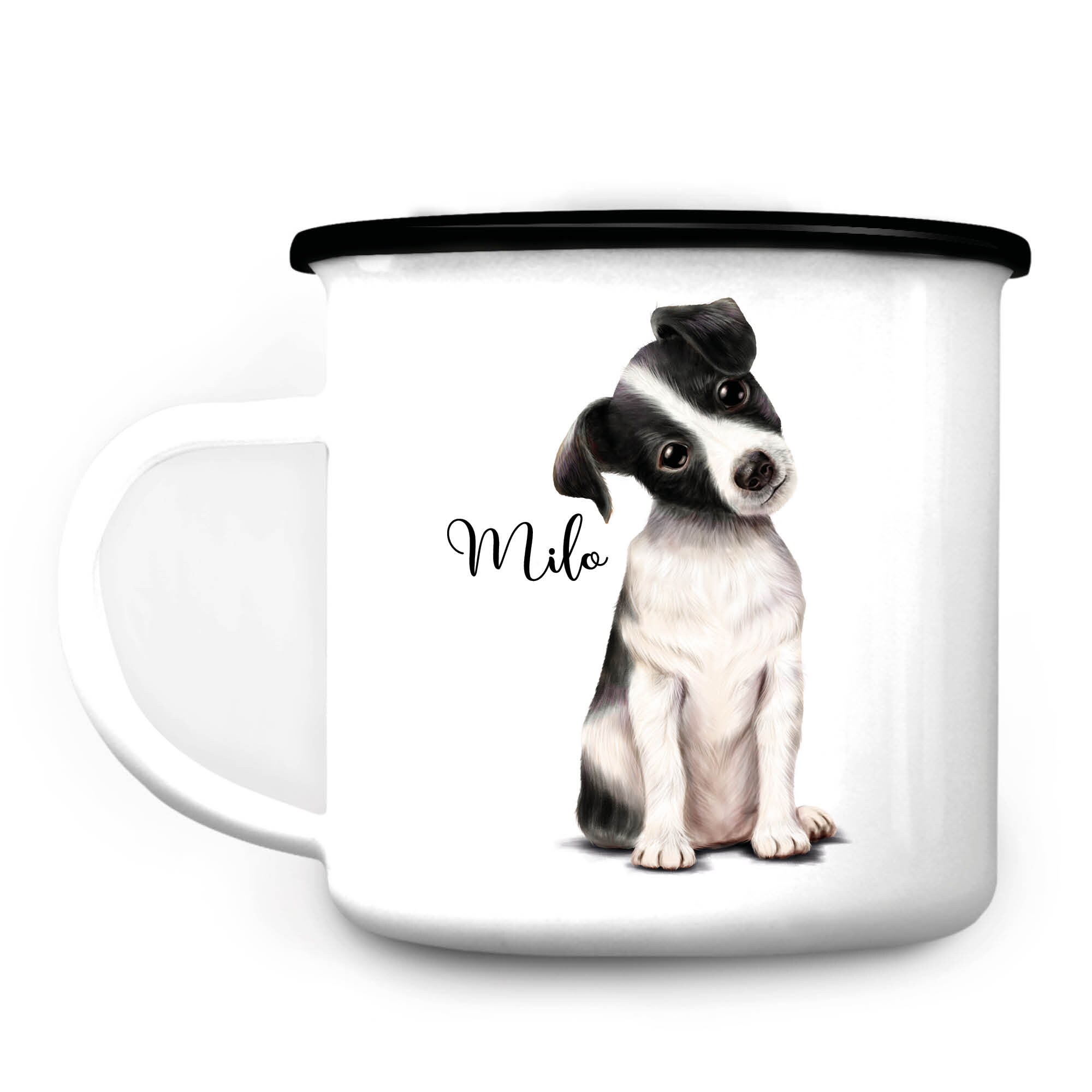 Campingbecher Emaille Hund Jack Russel Terrier mit Wunschname Emaille Tasse