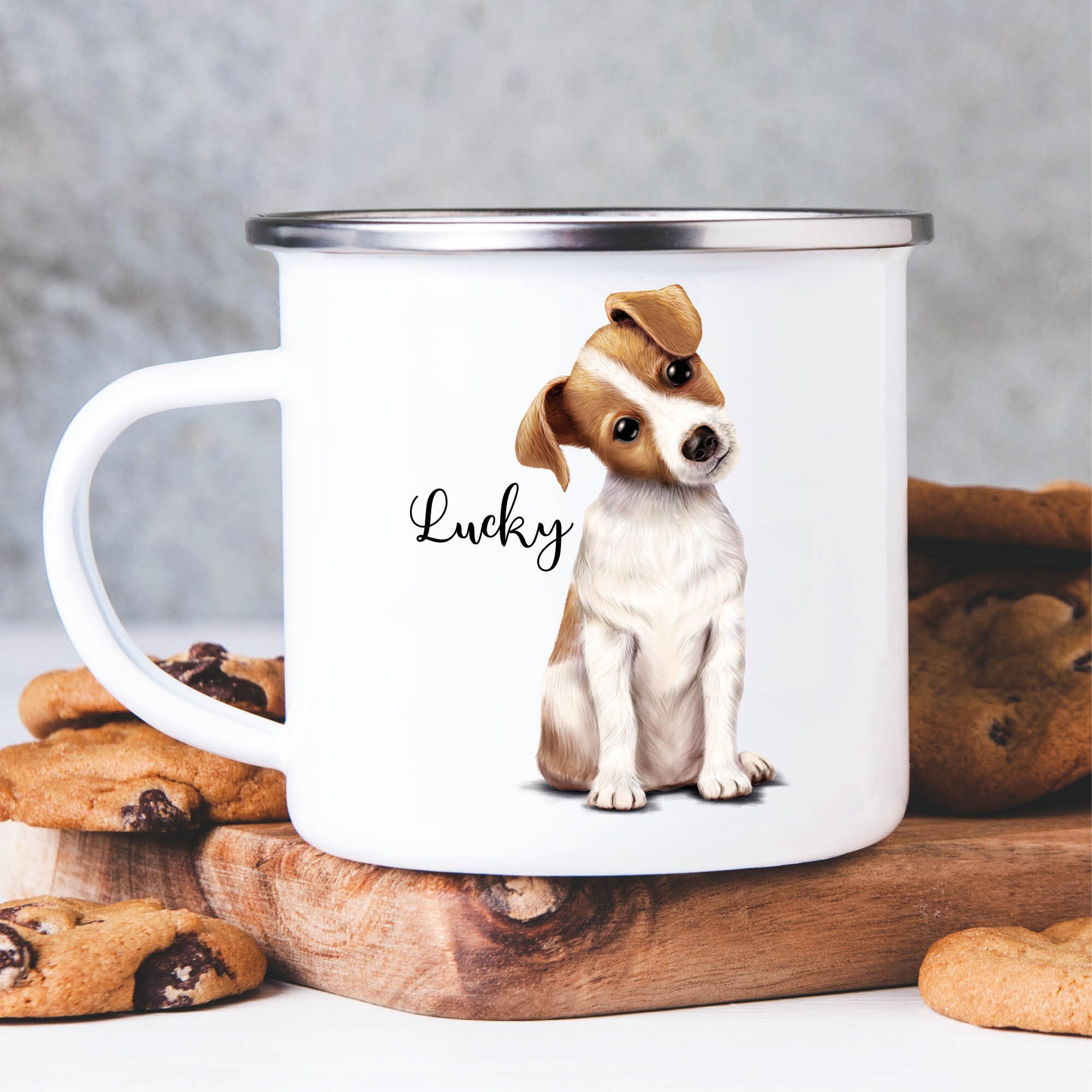 Campingbecher Emaille Hund Jack Russel Terrier mit Wunschname Emaille Tasse personalisiertes Geschenk