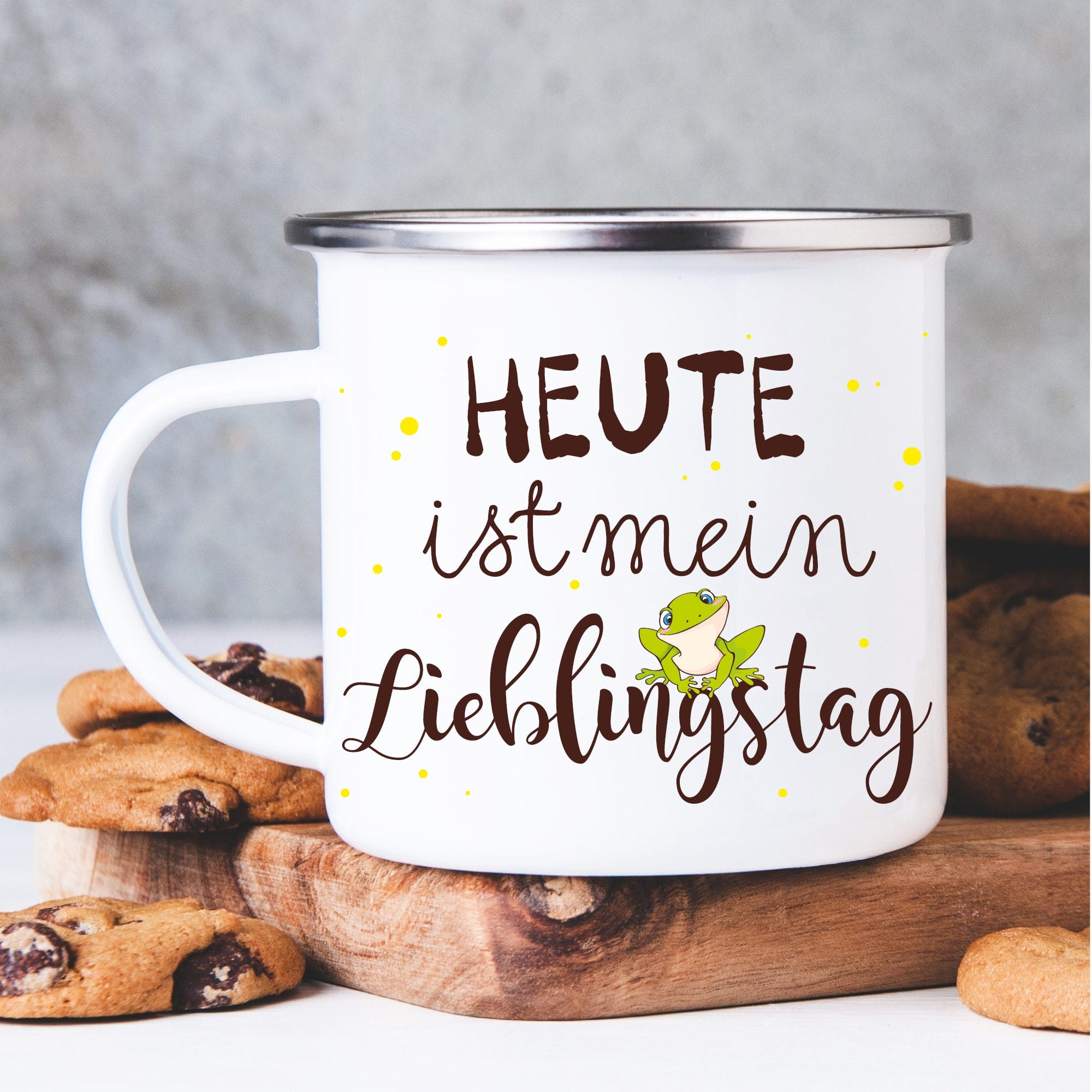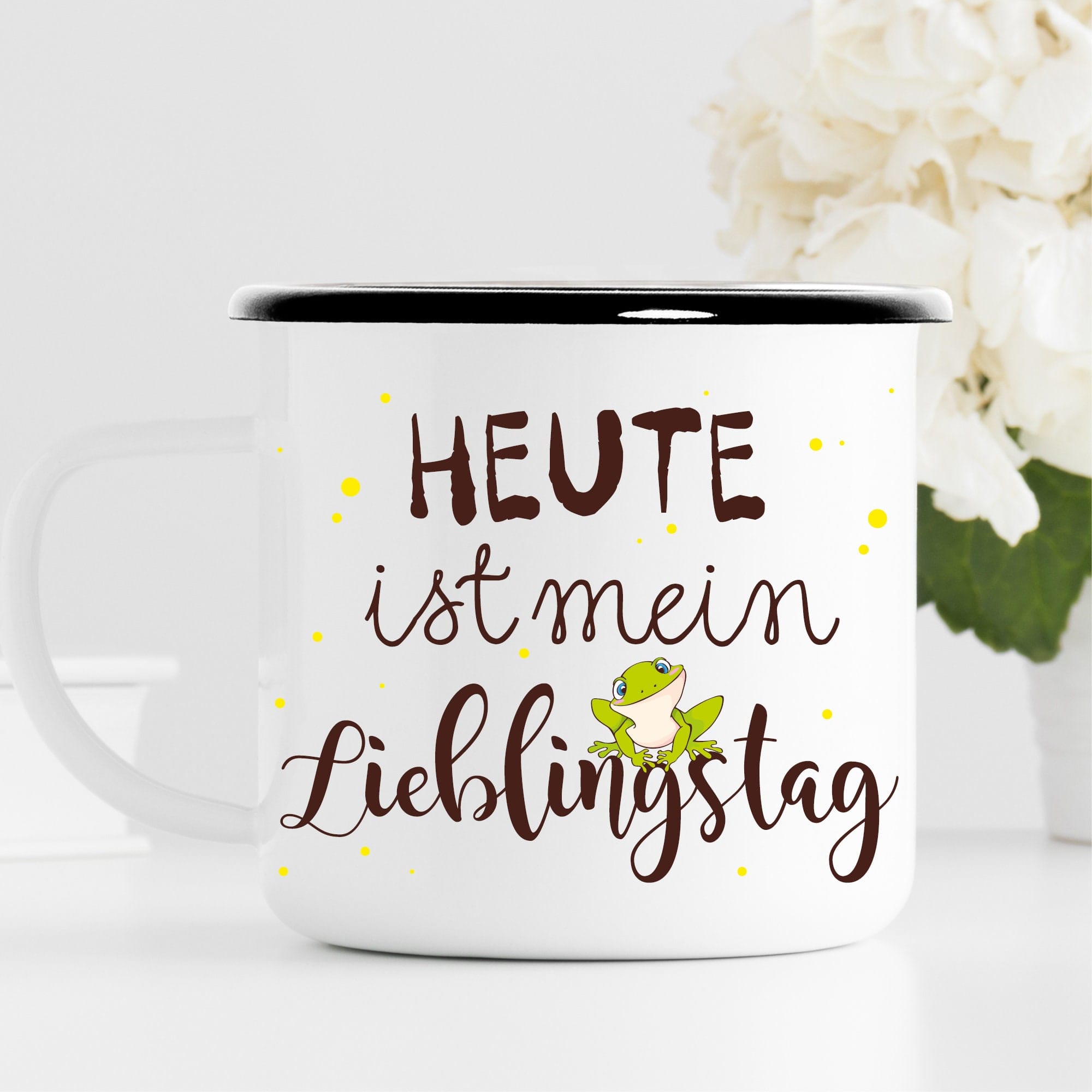 Campingbecher Emaille Kindertasse Tasse Frosch Heute ist mein Lieblingstag