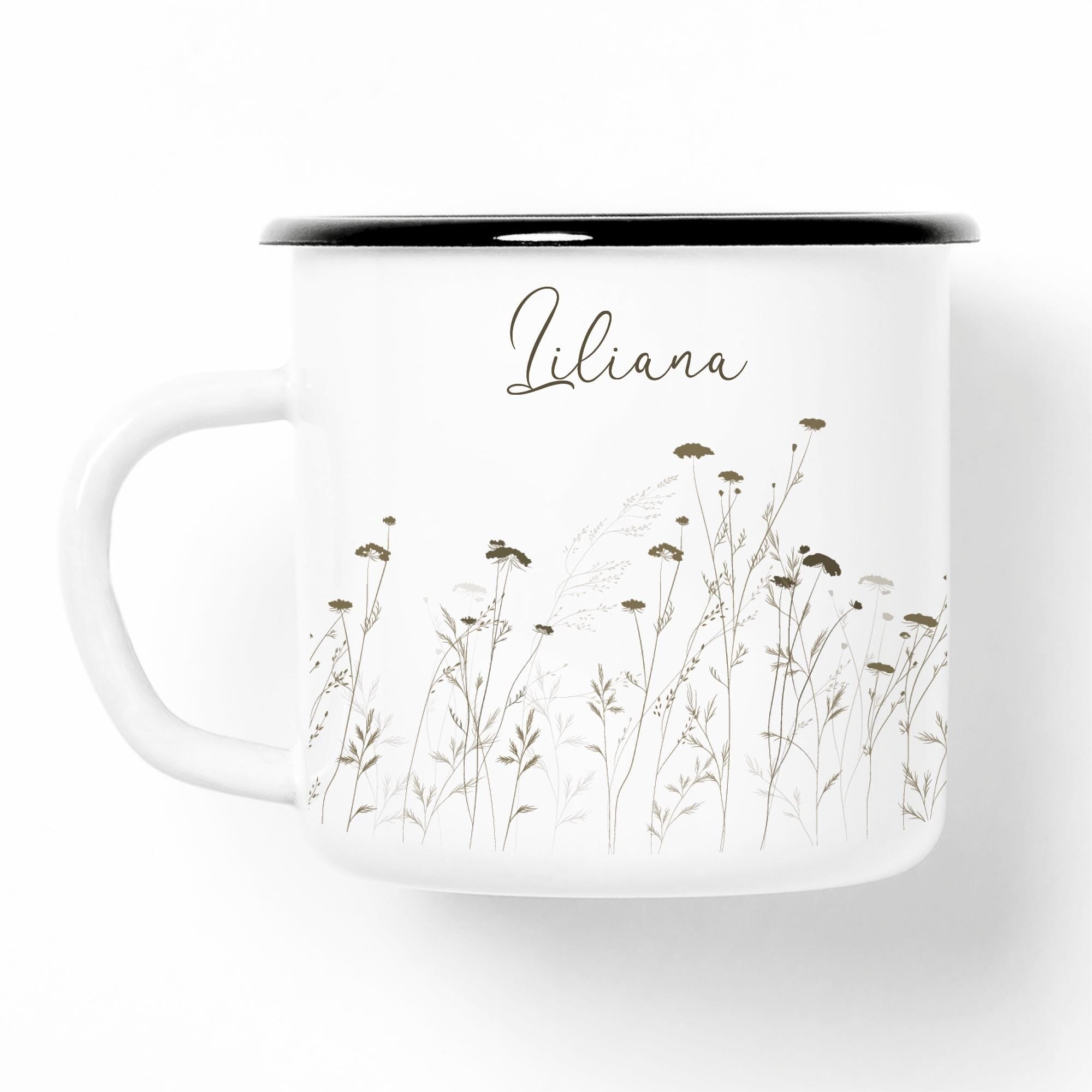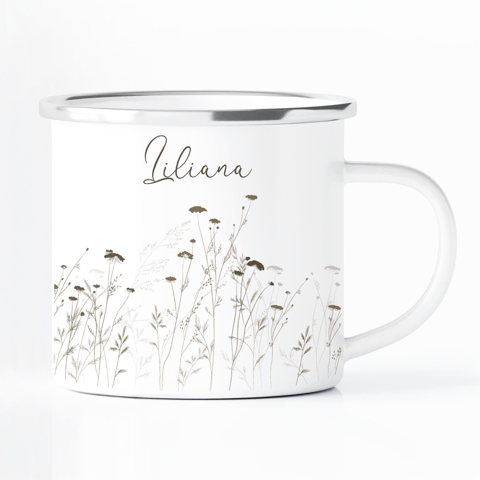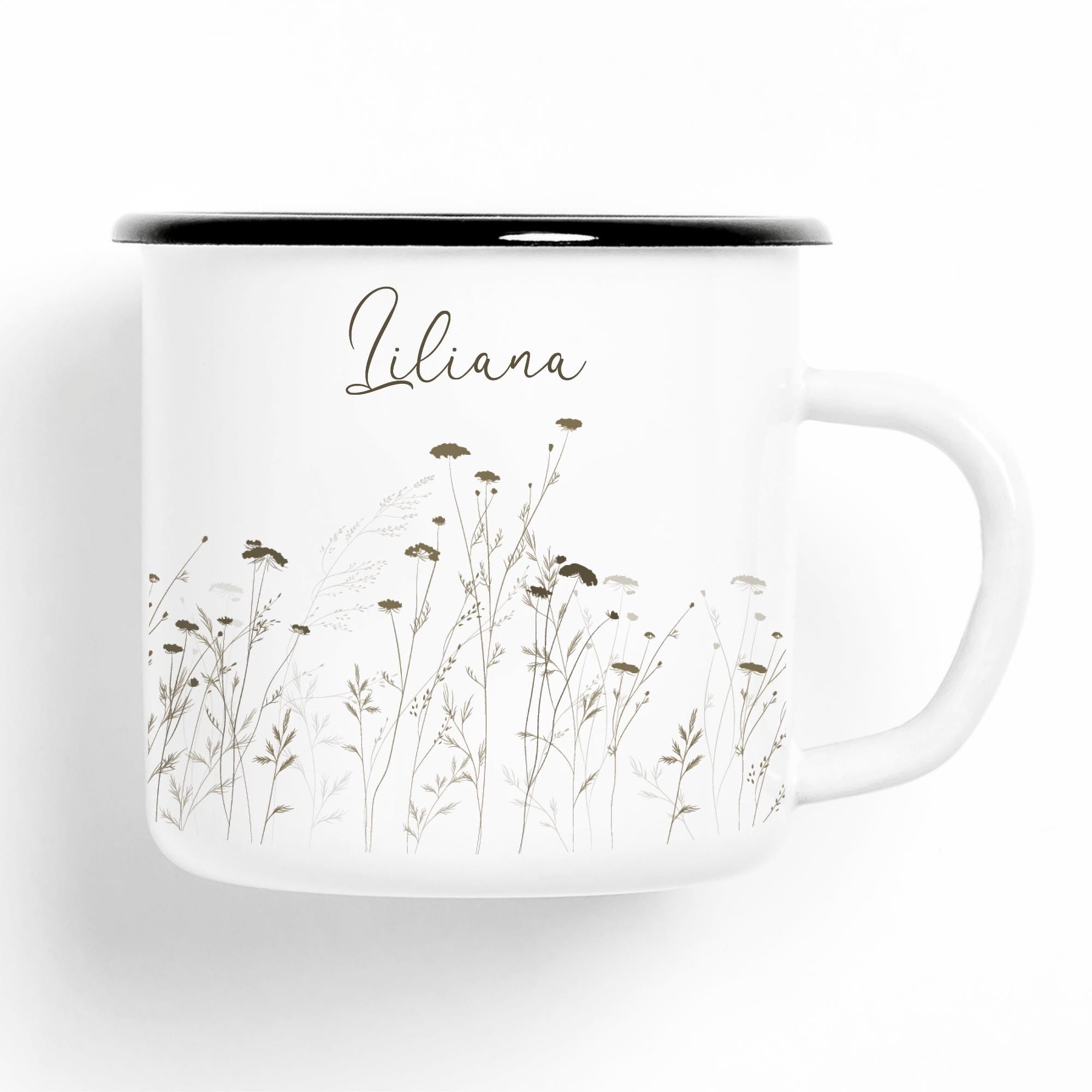 Campingbecher Emaille Wildgräsern und dem Wunschnamen Natur Naturliebhaber Camper Tasse Wildgras schlicht