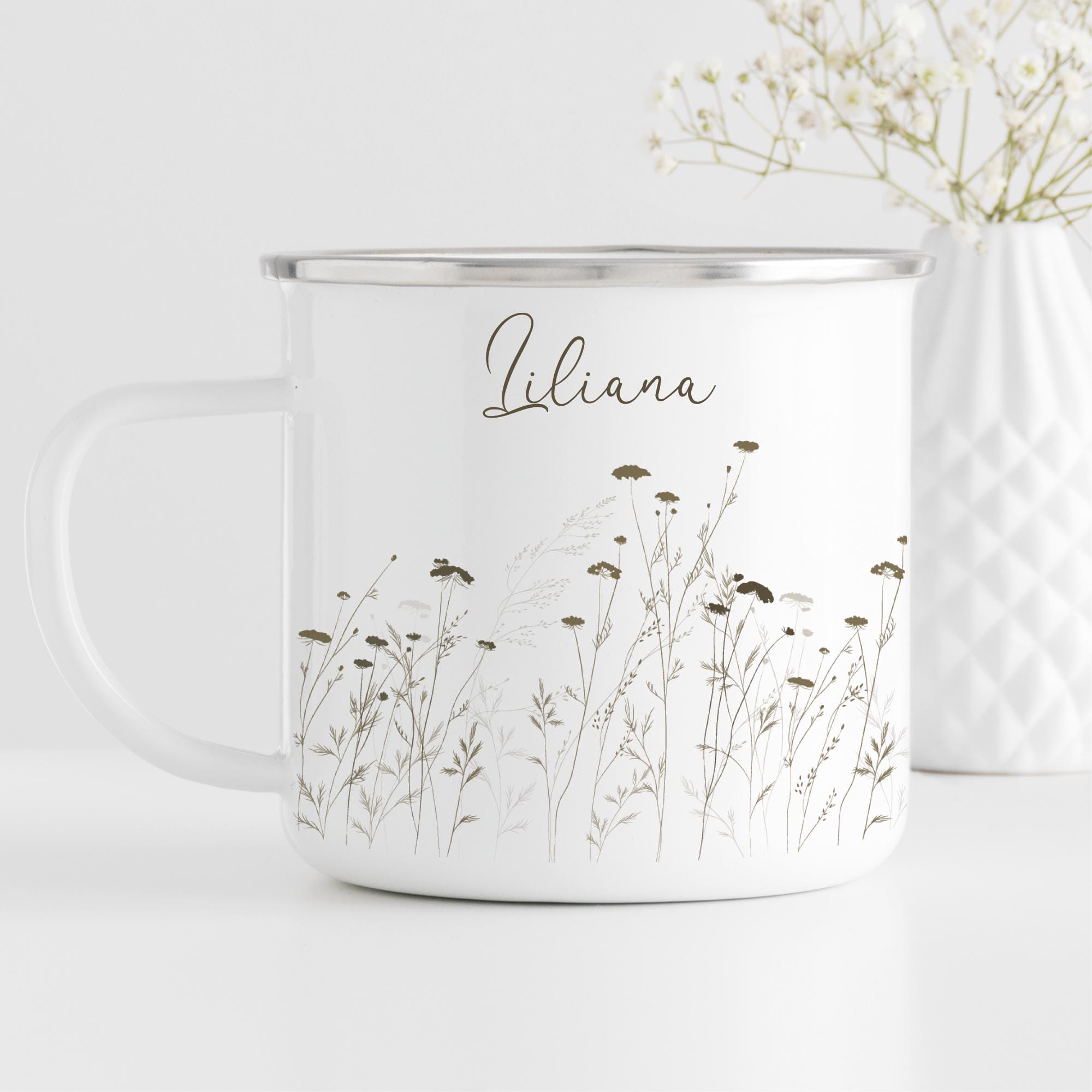 Campingbecher Emaille Wildgräser Wunschname Natur Naturliebhaber Camper Tasse Wildgras schlicht