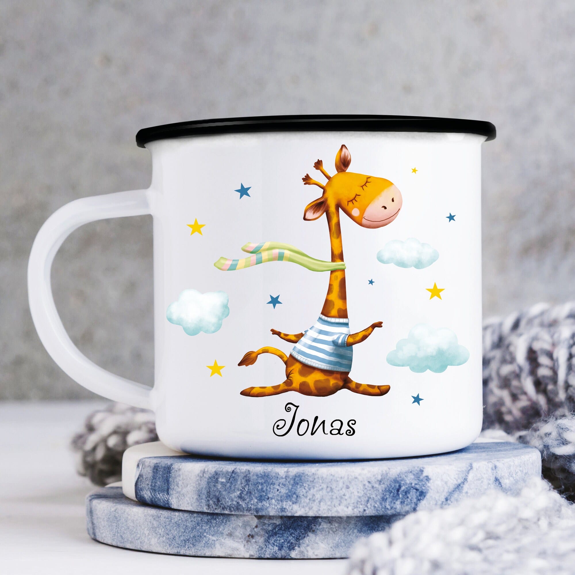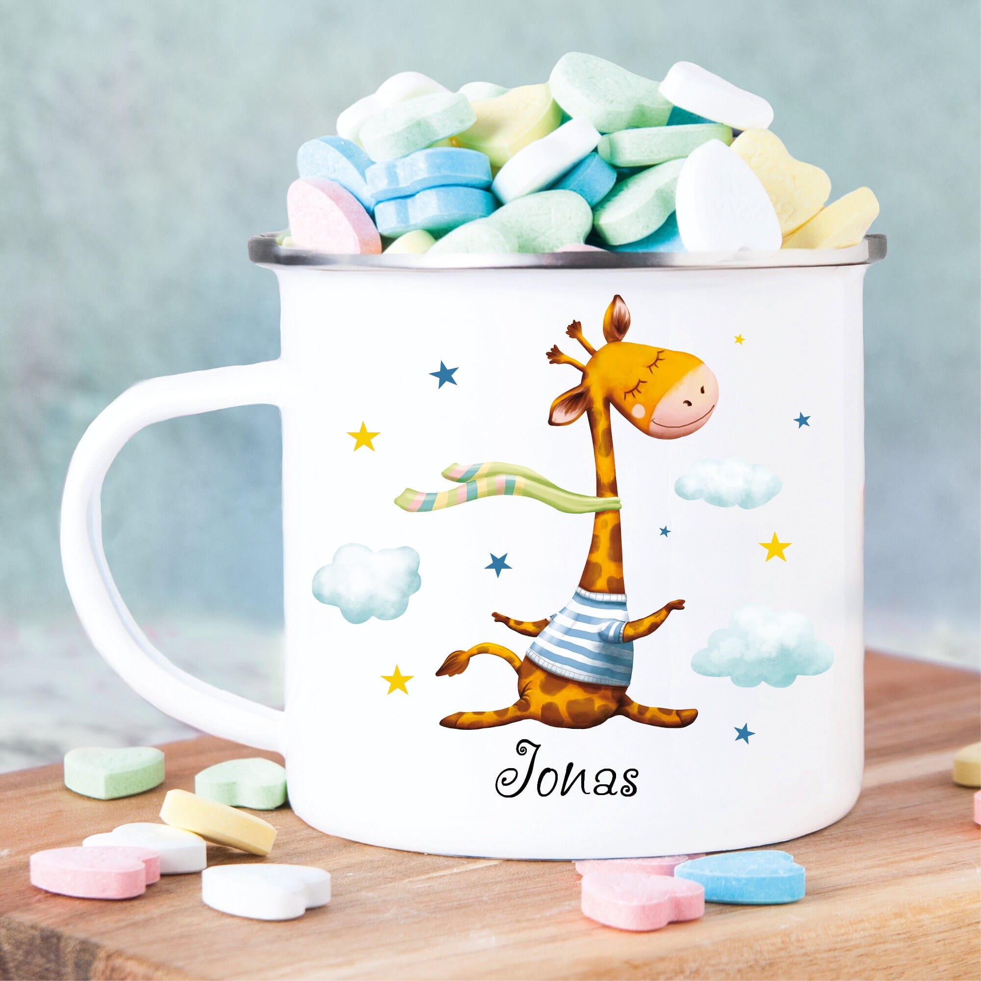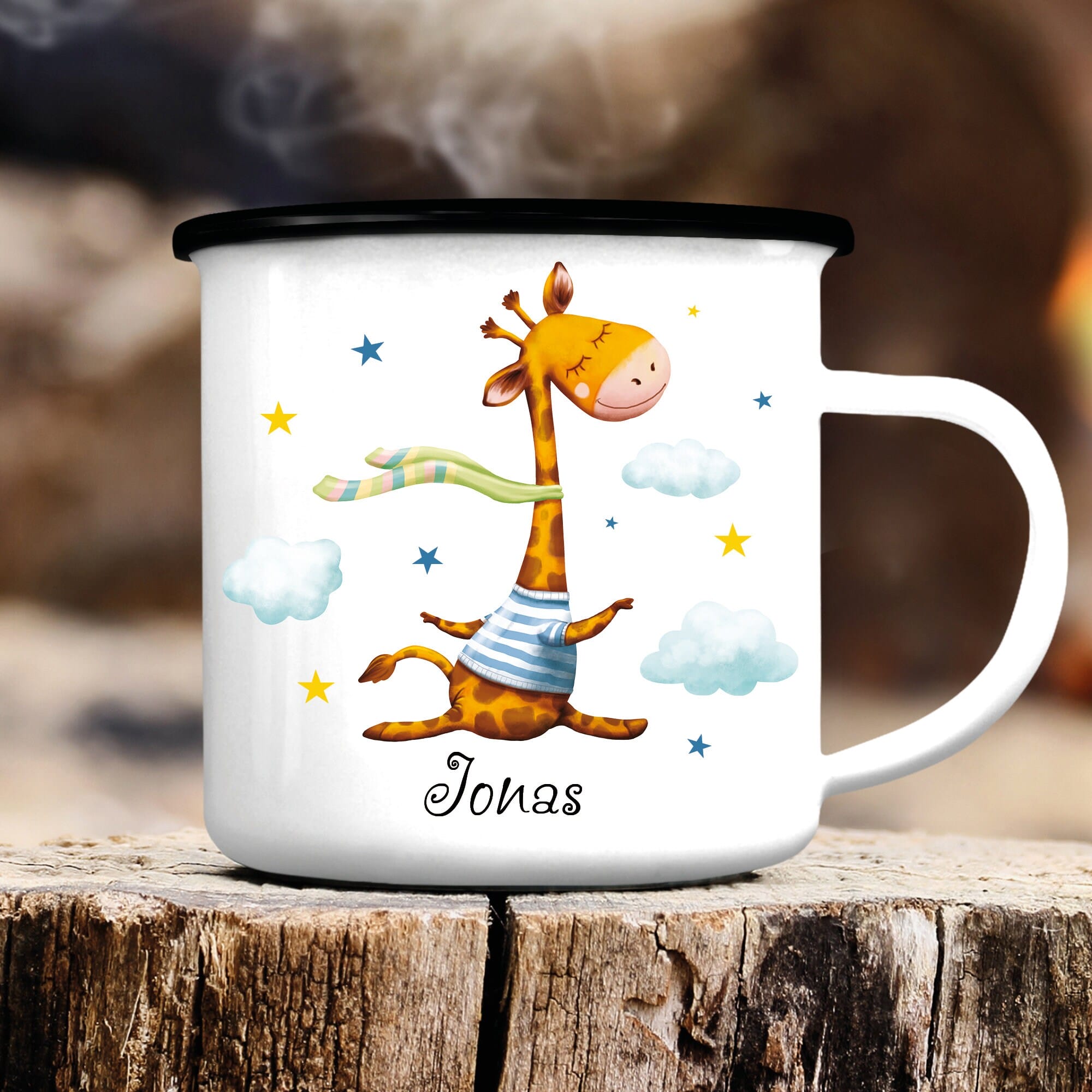 Tasse Emaille Campingbecher Giraffe personalisiert mit Wunschname Geschenk Kindertasse