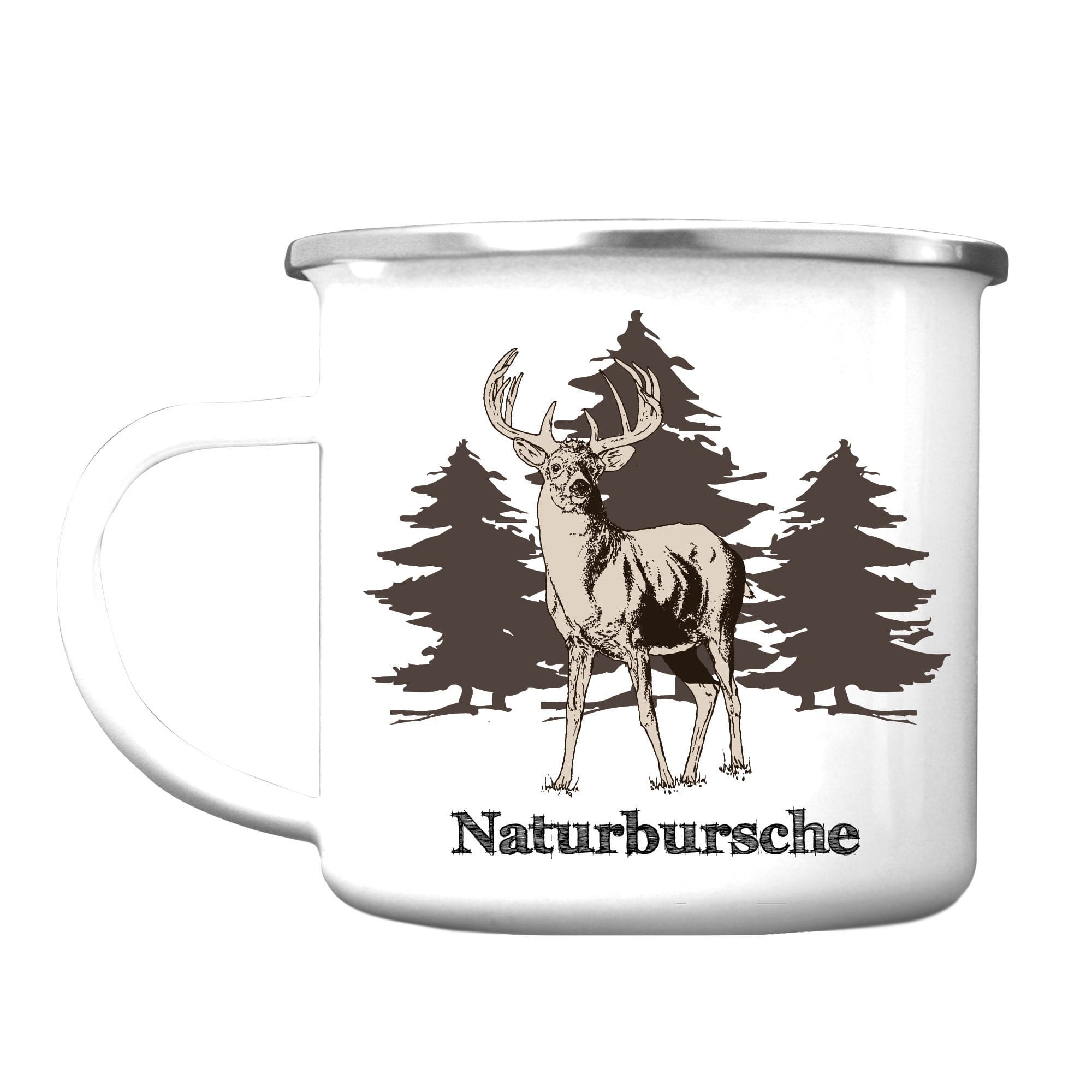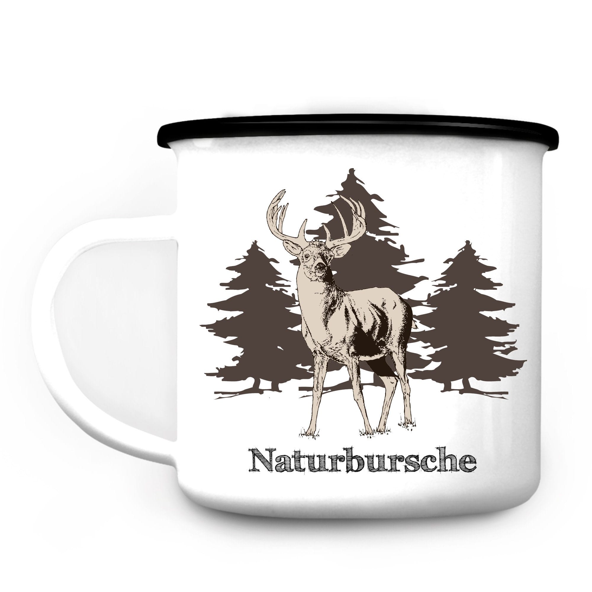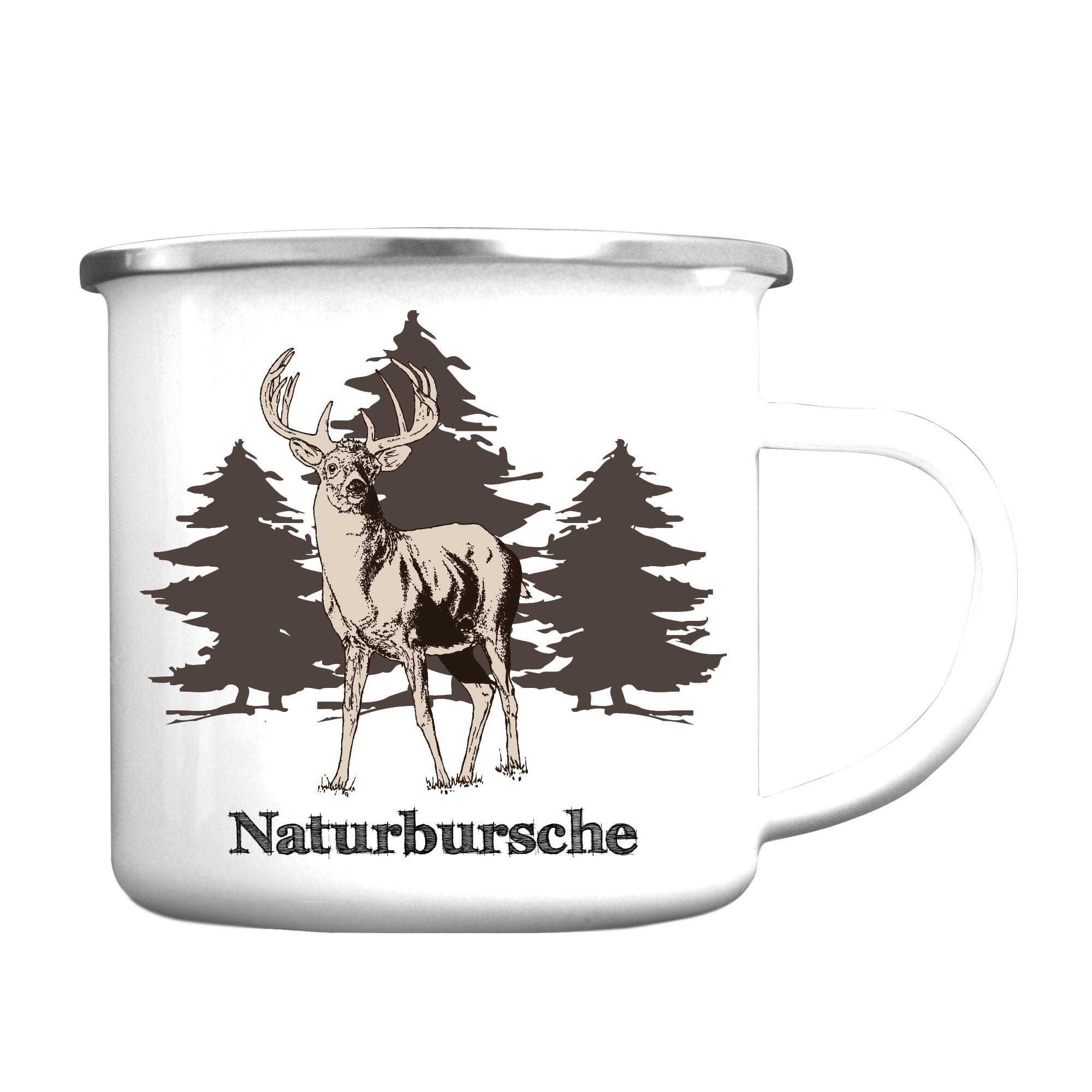 Campingbecher “Naturbursche” Hirsch Wald Emaille, Geschenk für Camper, Geschenk Geburtstag
