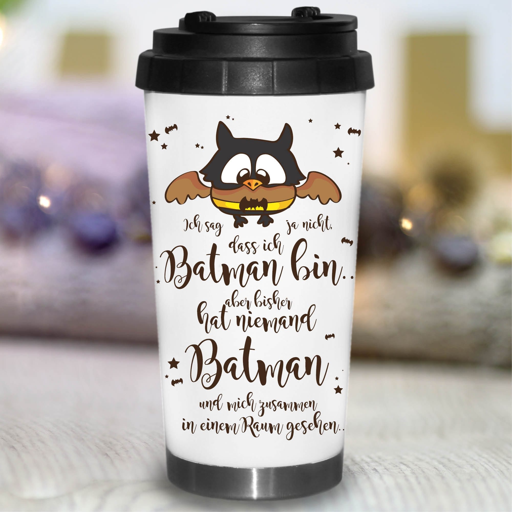 Edelstahl Thermobecher Eule Batman Spruch Kaffeebecher to go Geschenk Geburtstag Trinkbecher isoliert
