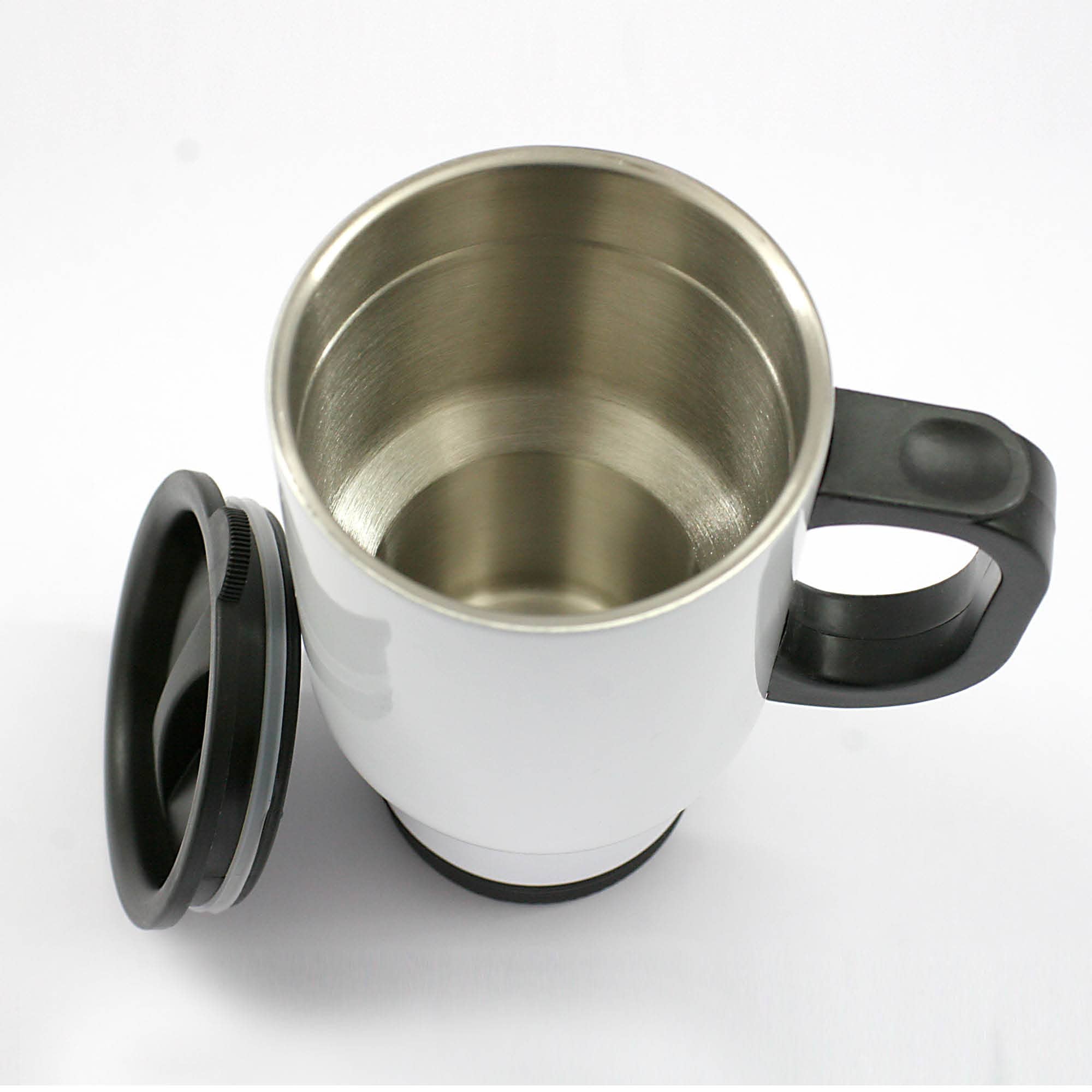 weißer Thermobecher/ Kaffeebecher aus doppelwandigem Edelstahl mit Deckel