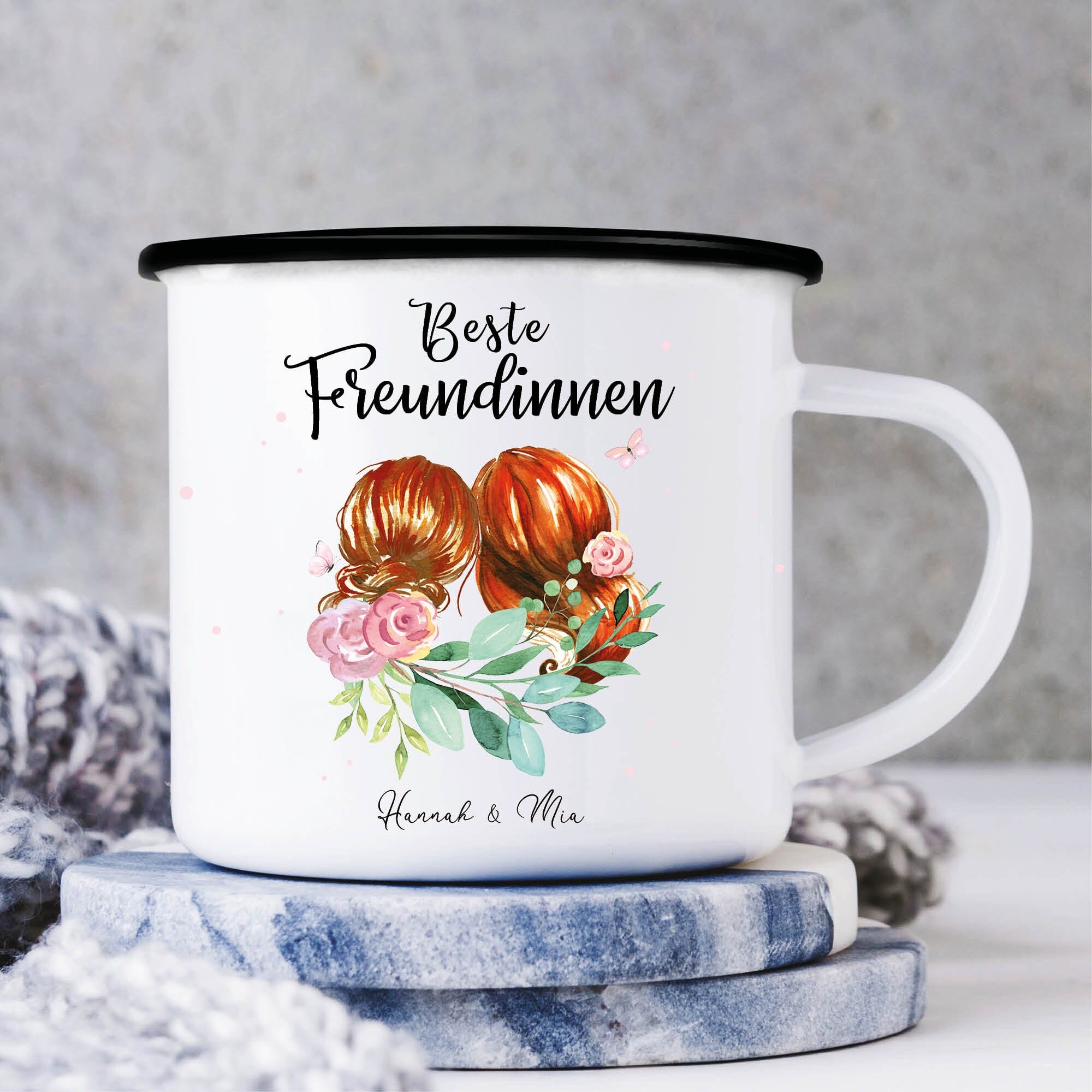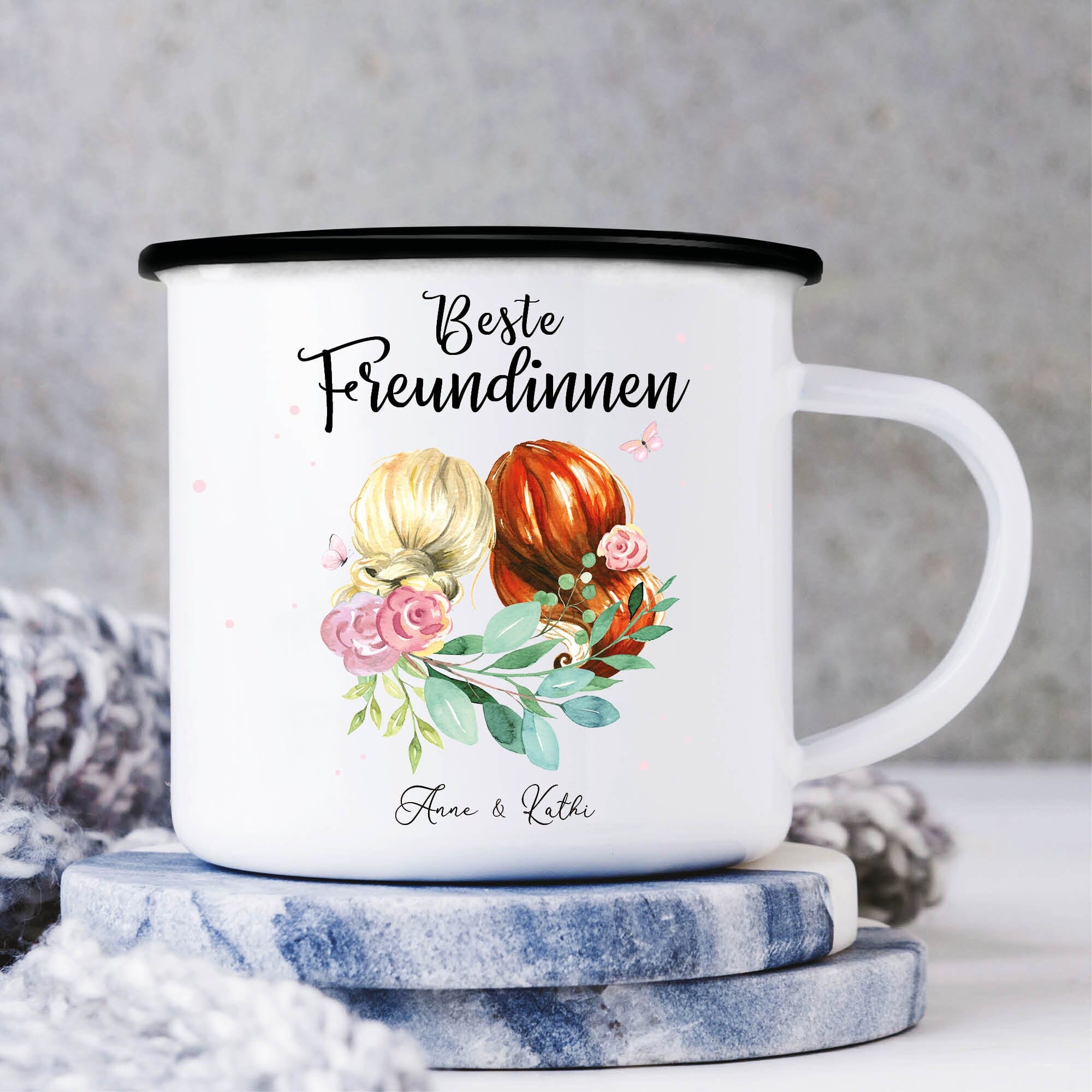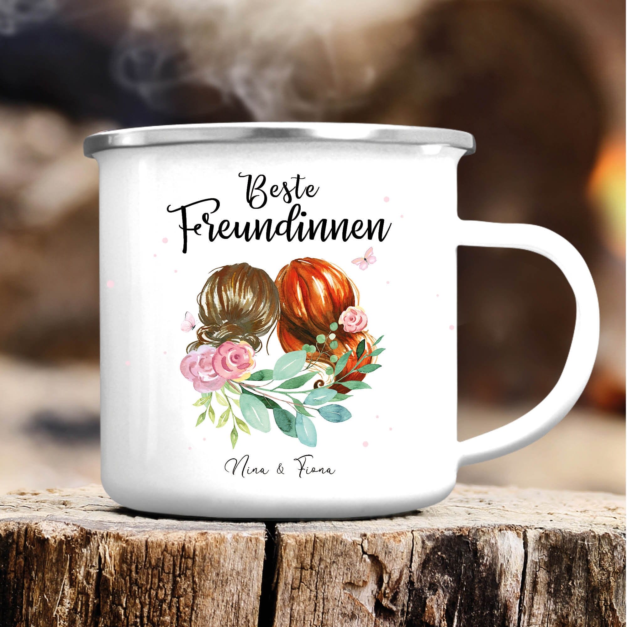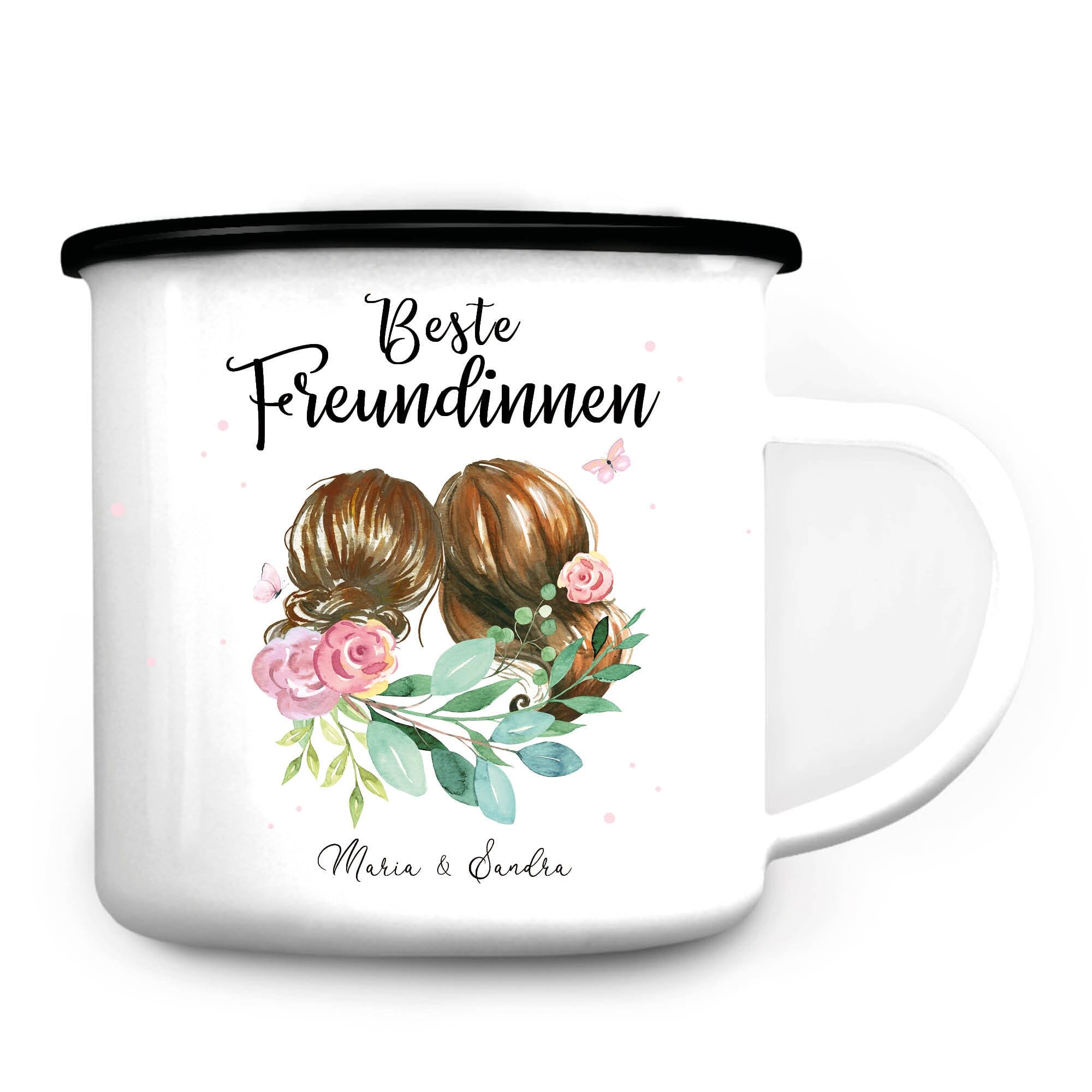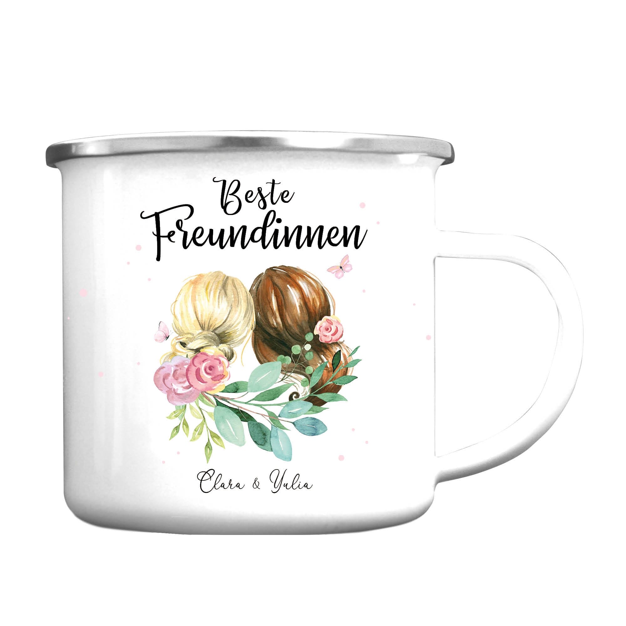 Emaille Campingbecher Beste Freundinnen mit Wunschnamen Geschenk Geburtstag Freundschaft
