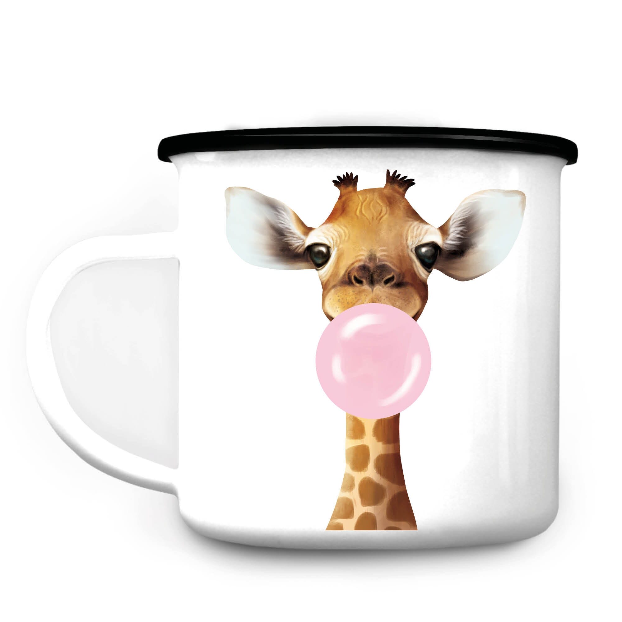 Emaille Campingbecher Giraffe Bubblegum Blase Kaugummiblase Geschenk Camper, Geschenk Geburtstag
