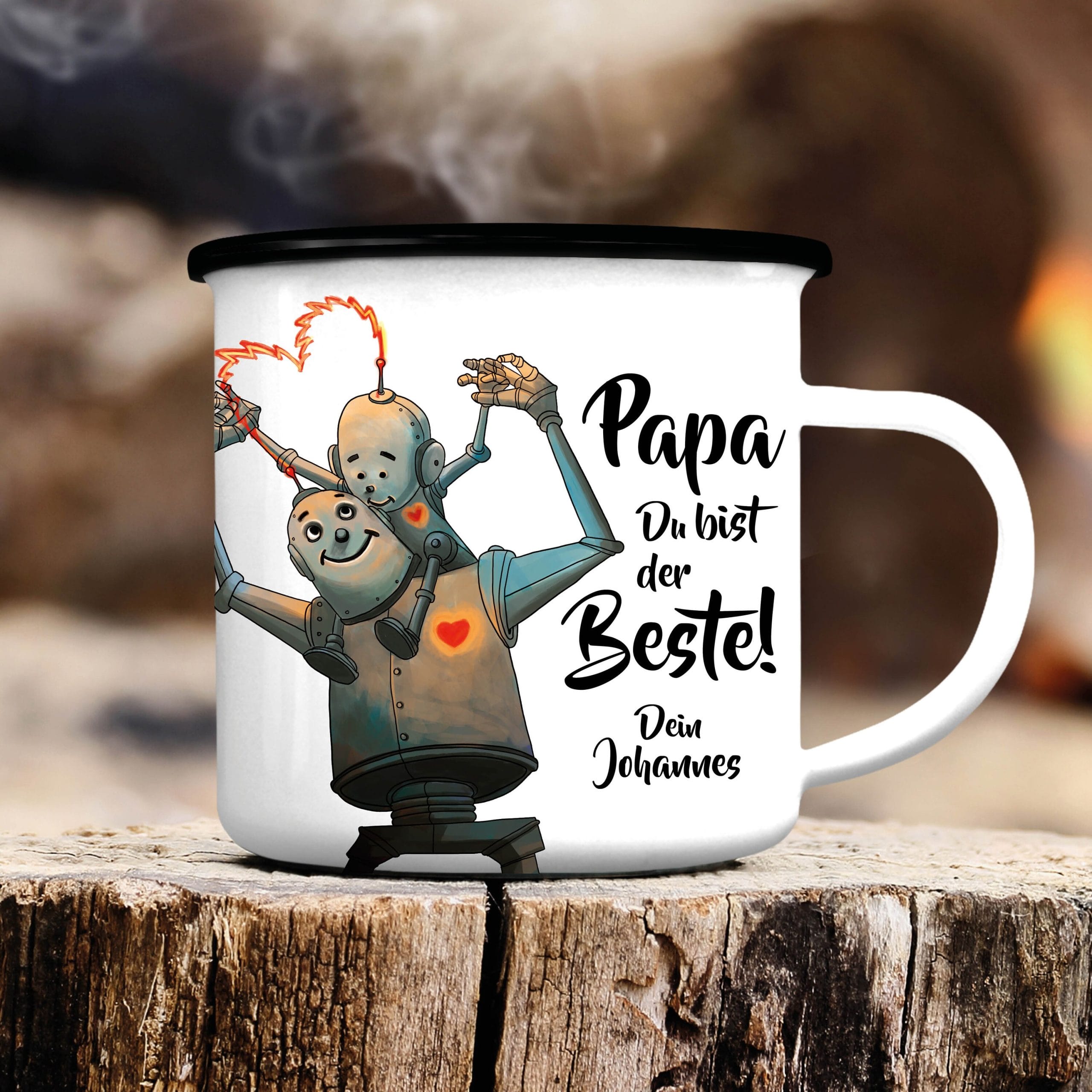 Emaille Campingbecher Papa du bist der Beste personalisiert Wunschname Geschenk Geburtstag Vatertag 300 ml