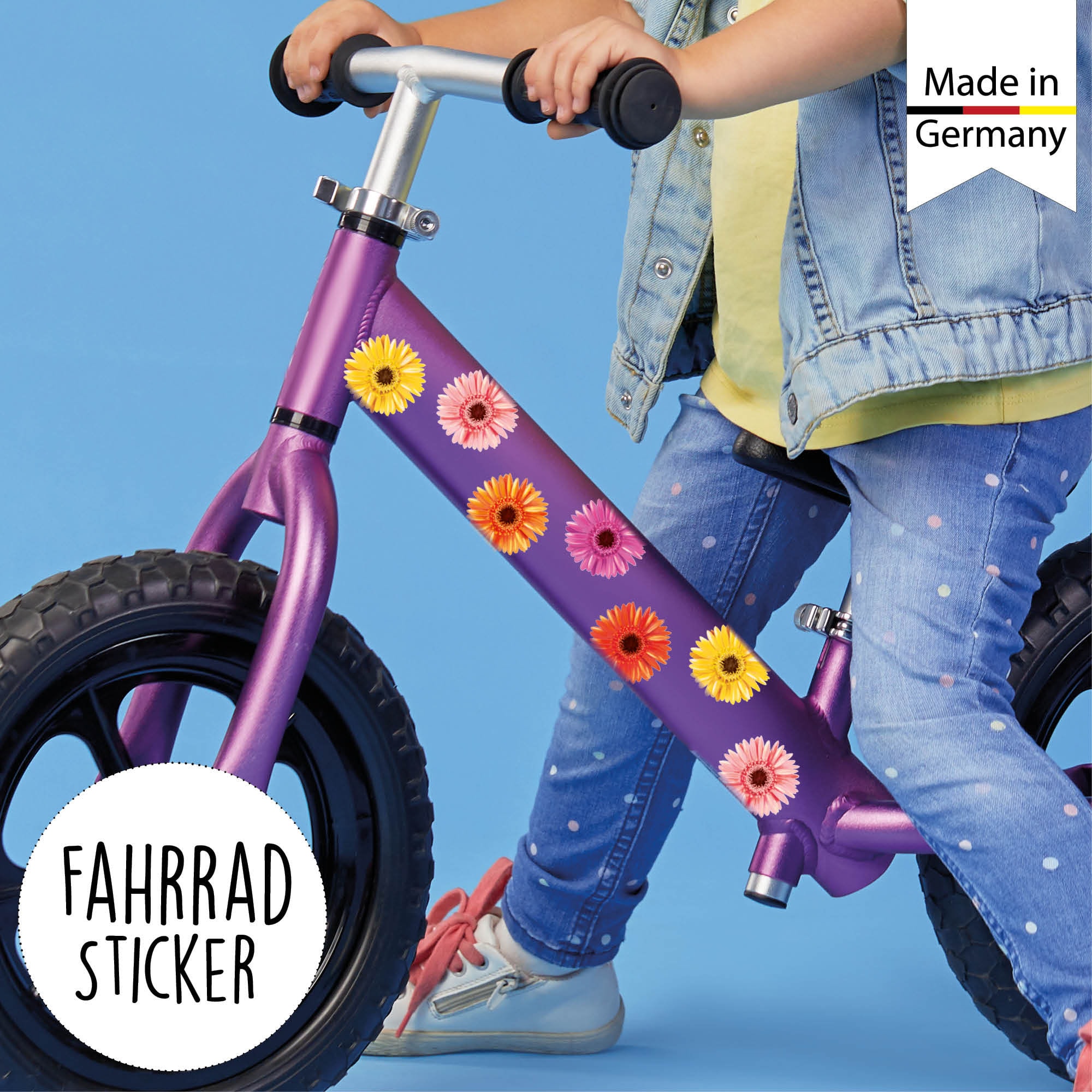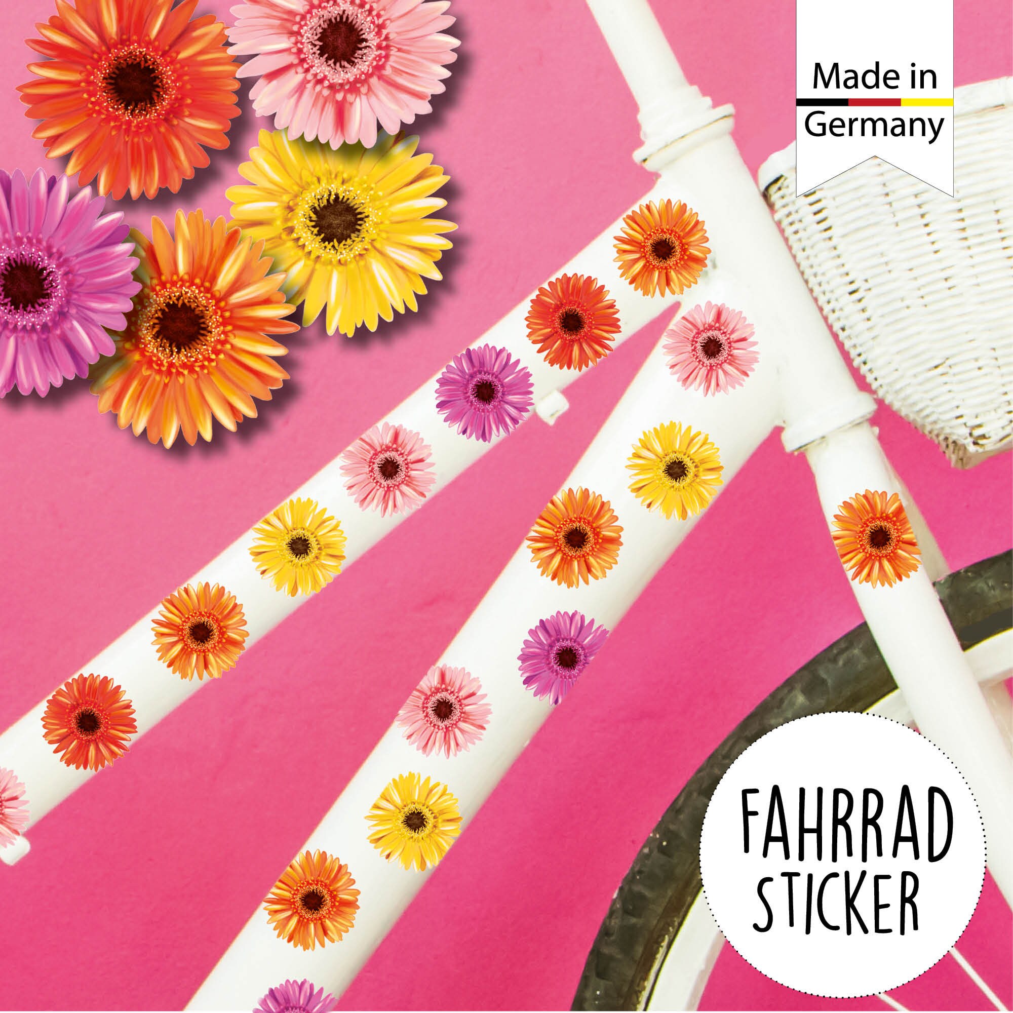 Fahrradaufkleber 35 farbenfrohe Gerbera Fahrrad Sticker Fahrraddesign Kinderfahrrad, Geschenk im Adventskalender