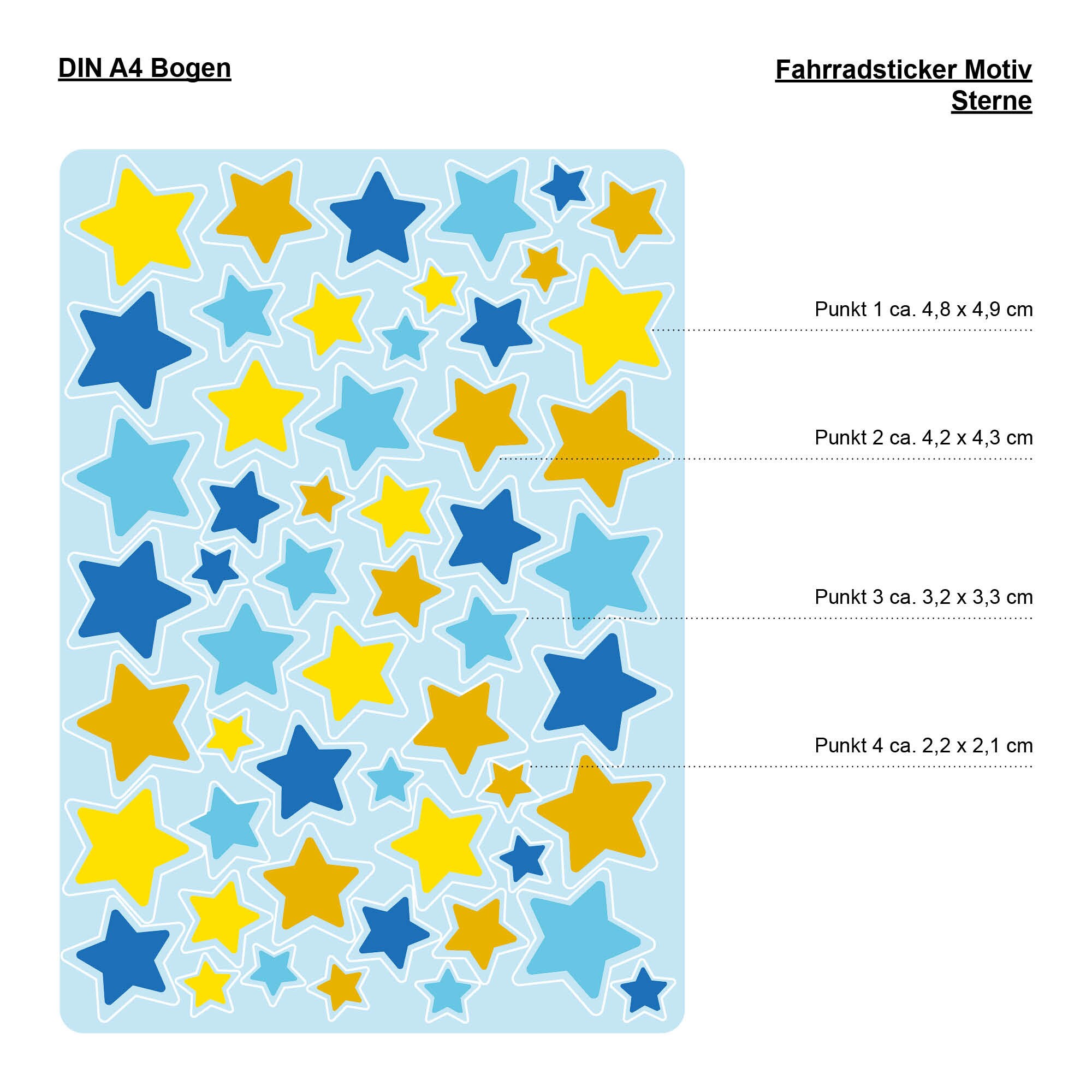 Fahrradaufkleber 54 Sterne Farbig Fahrrad Sticker Fahrraddesign Kinderfahrrad, Einschulungsgeschenk