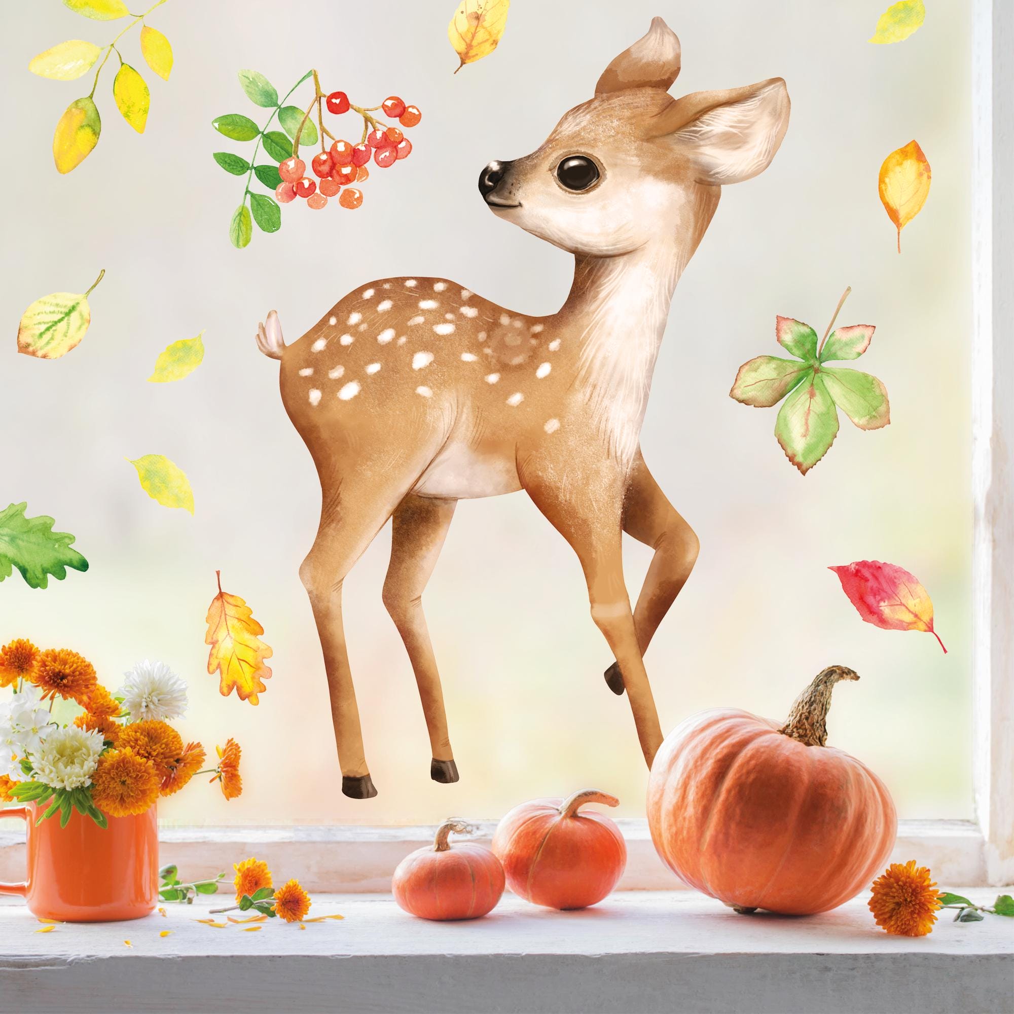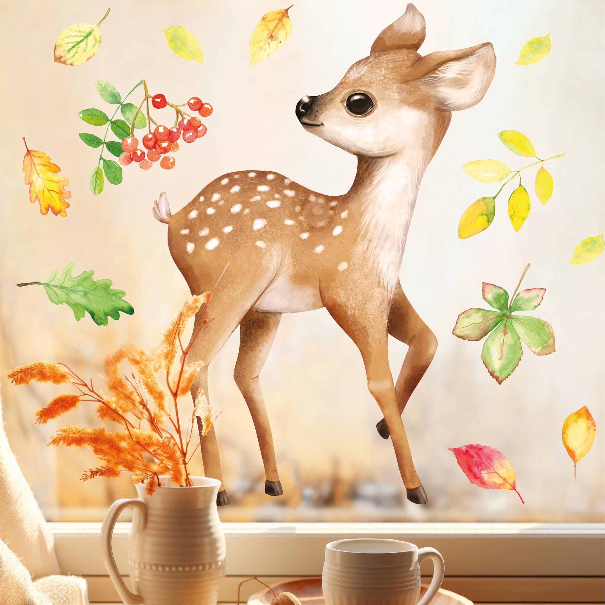 Herbstlicher Fensteraufkleber “Rehkitz” – Für Deine gemütliche Herbstdekoration