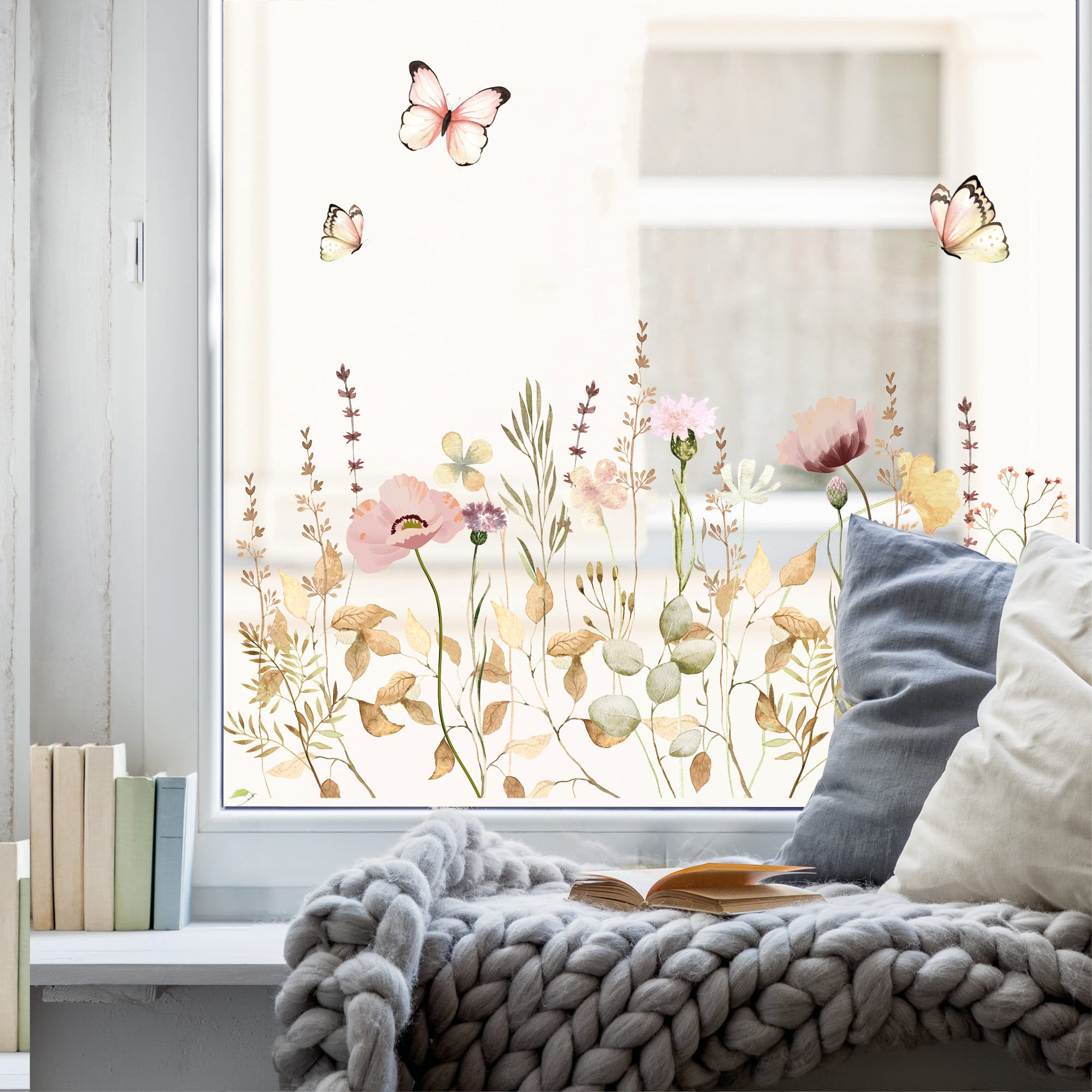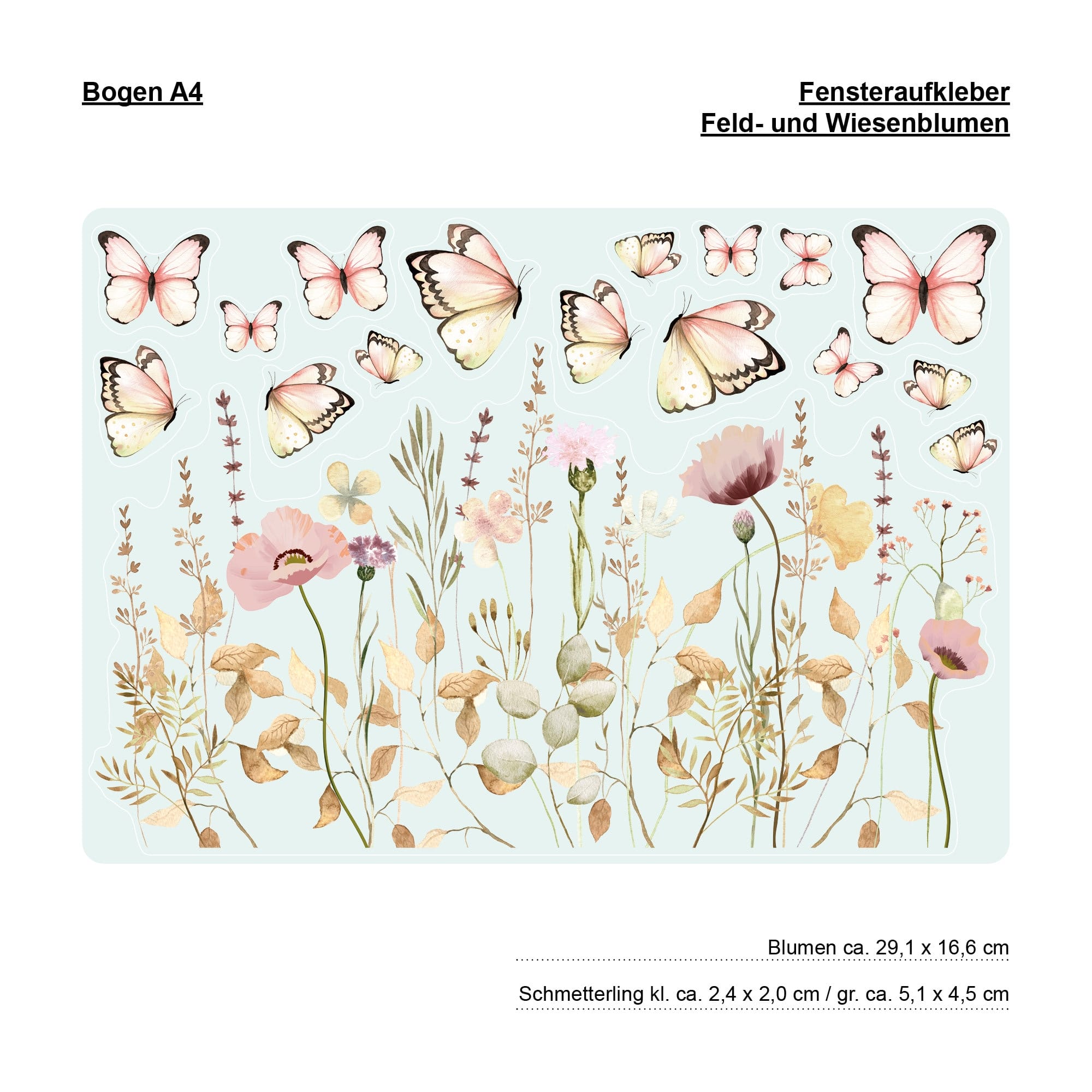 Fensterbild Feld-und Wiesenblumen wiederverwendbar pastell Blumenwiese mit Schmetterlingen Fensterdekoration