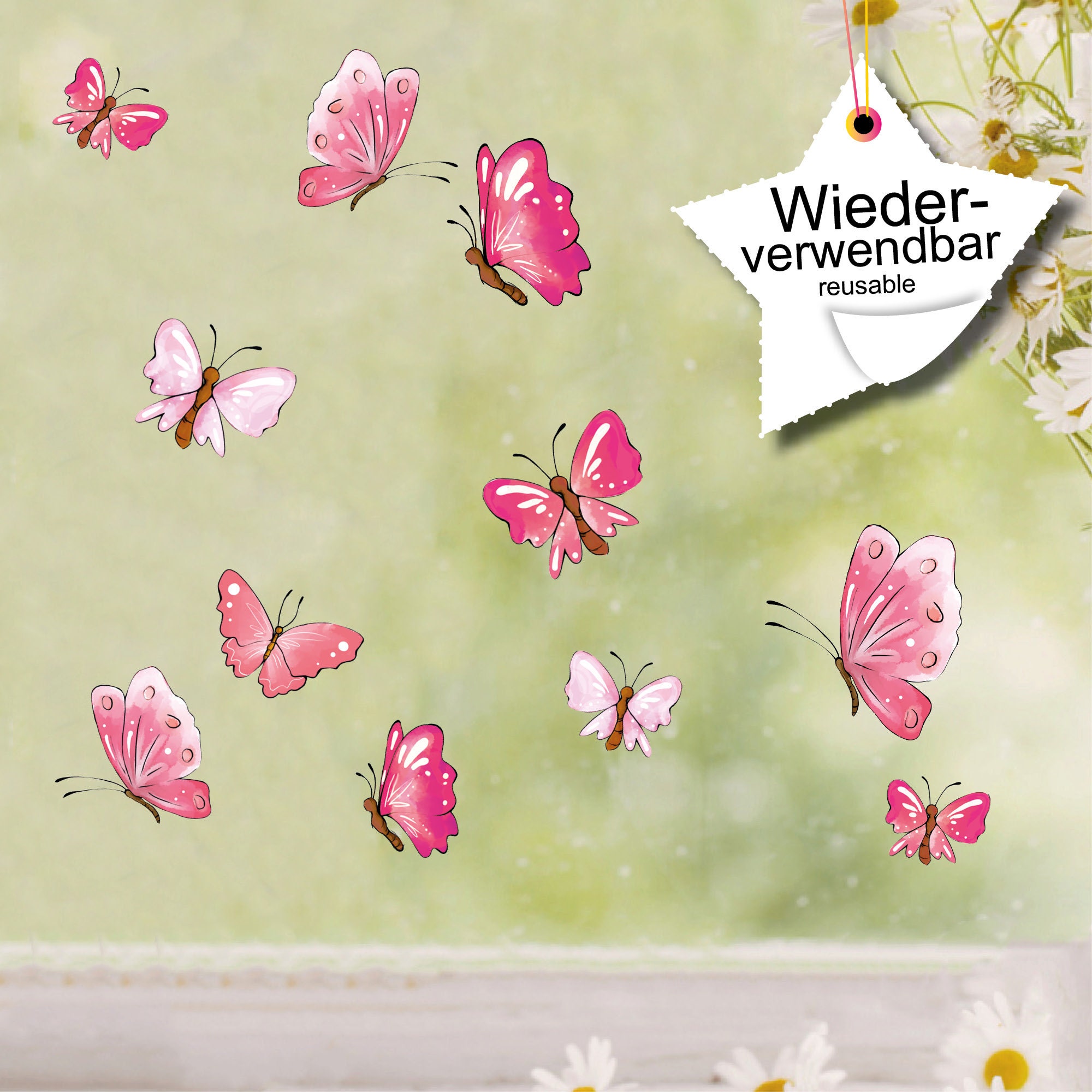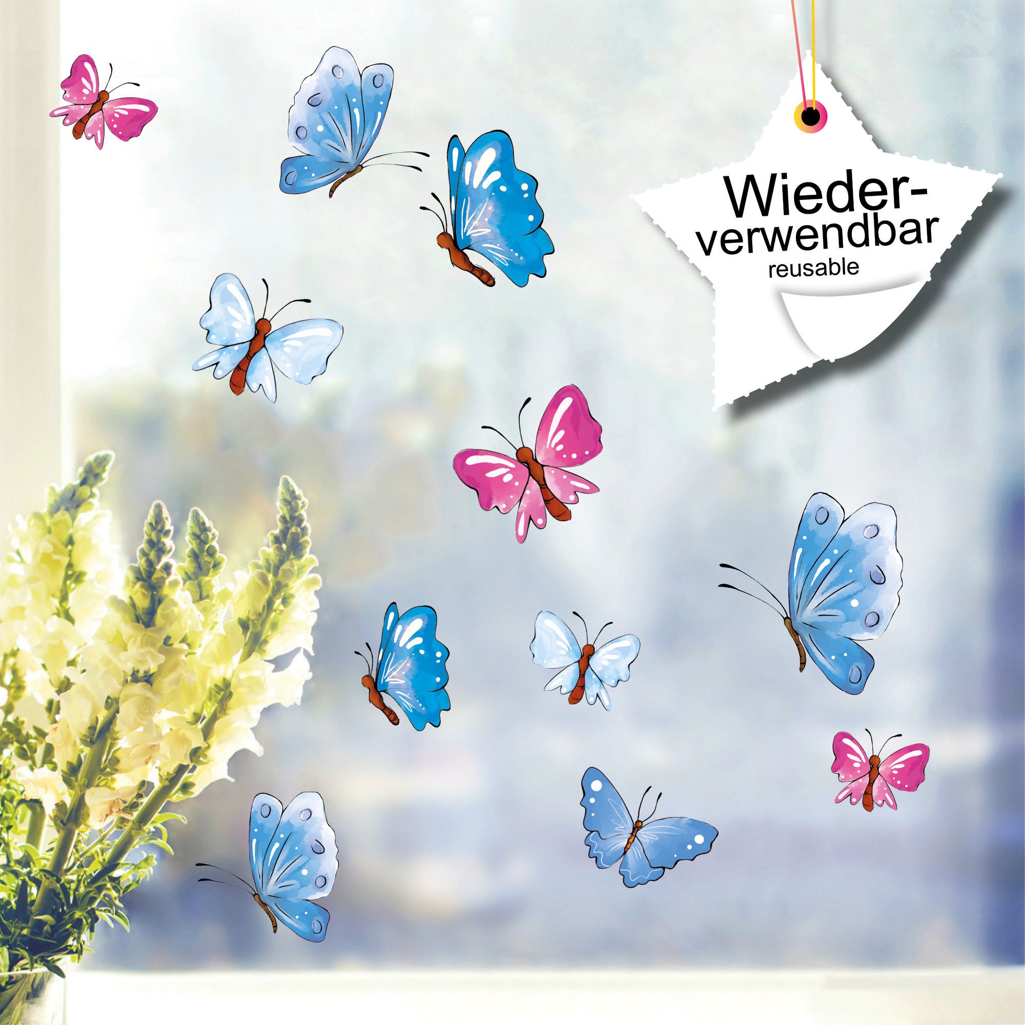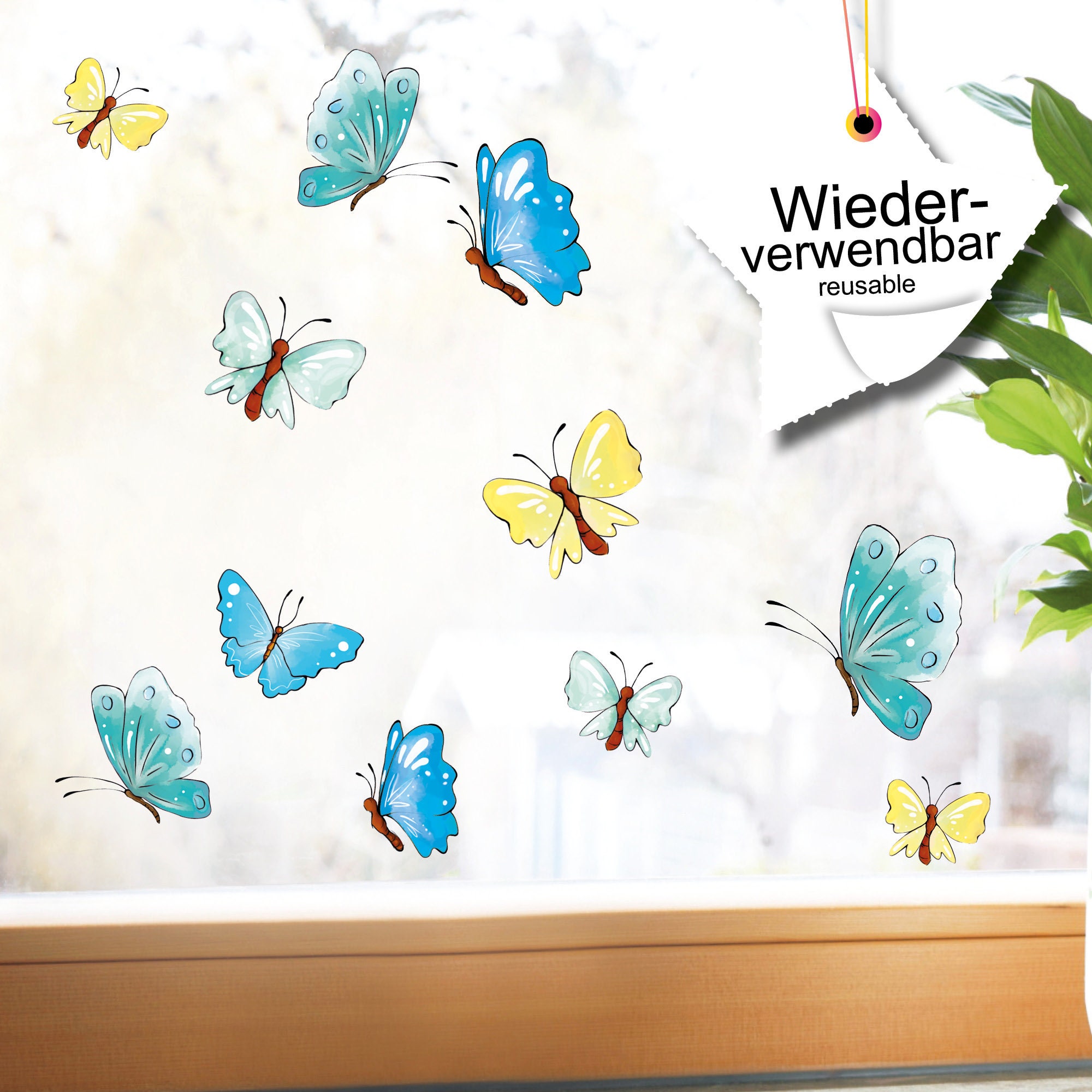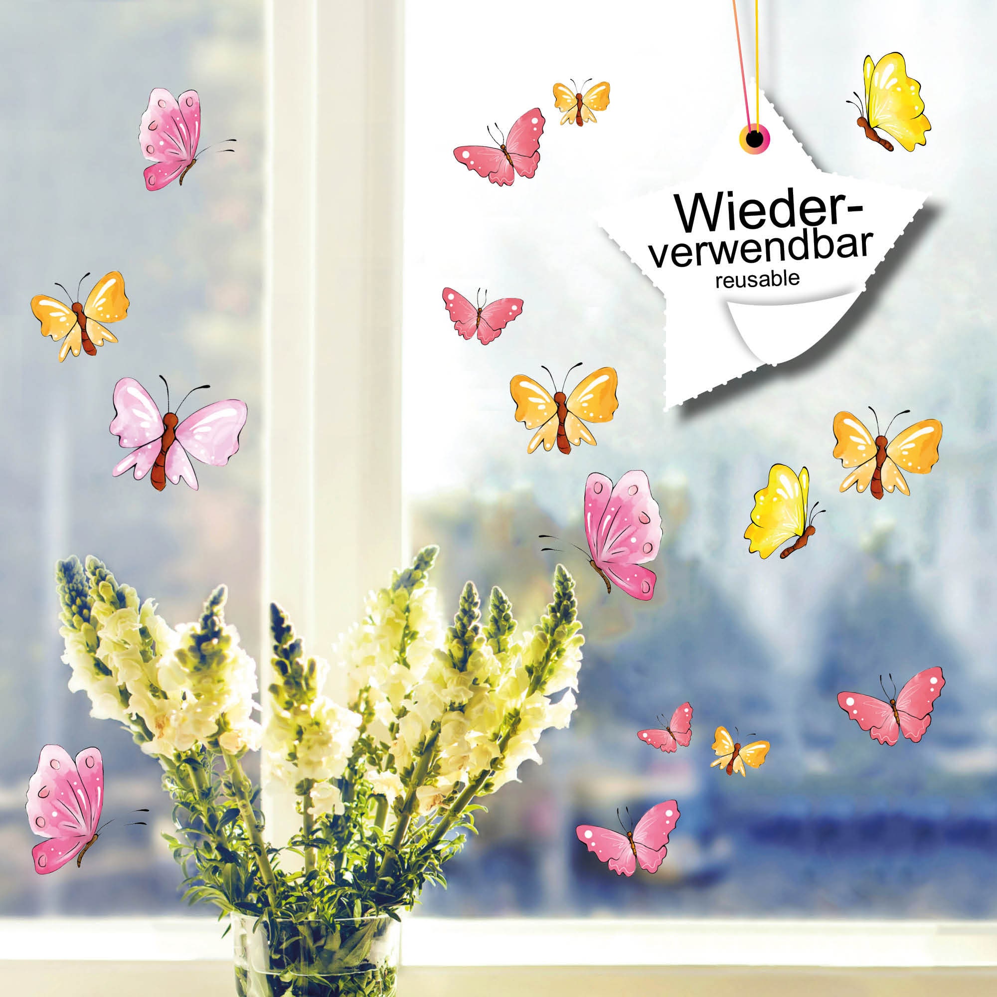 Fensteraufkleber 25 Stück bunte Schmetterlinge – wiederverwendbar- in trendigen Pastellfarben Frühling Osterdeko
