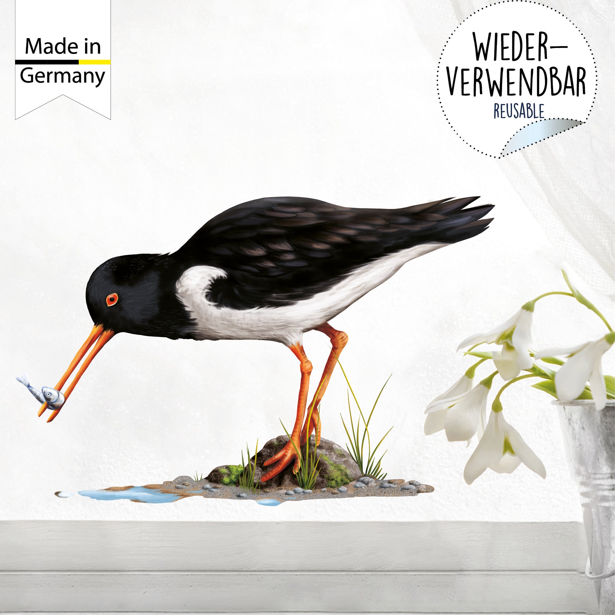 Fensterbild Frühling Austernfischer mit Fisch maritim Ostsee Nordsee Urlaub Fensterdeko Kinderzimmer Kind Osterdeko Frühlingsdeko Vögel