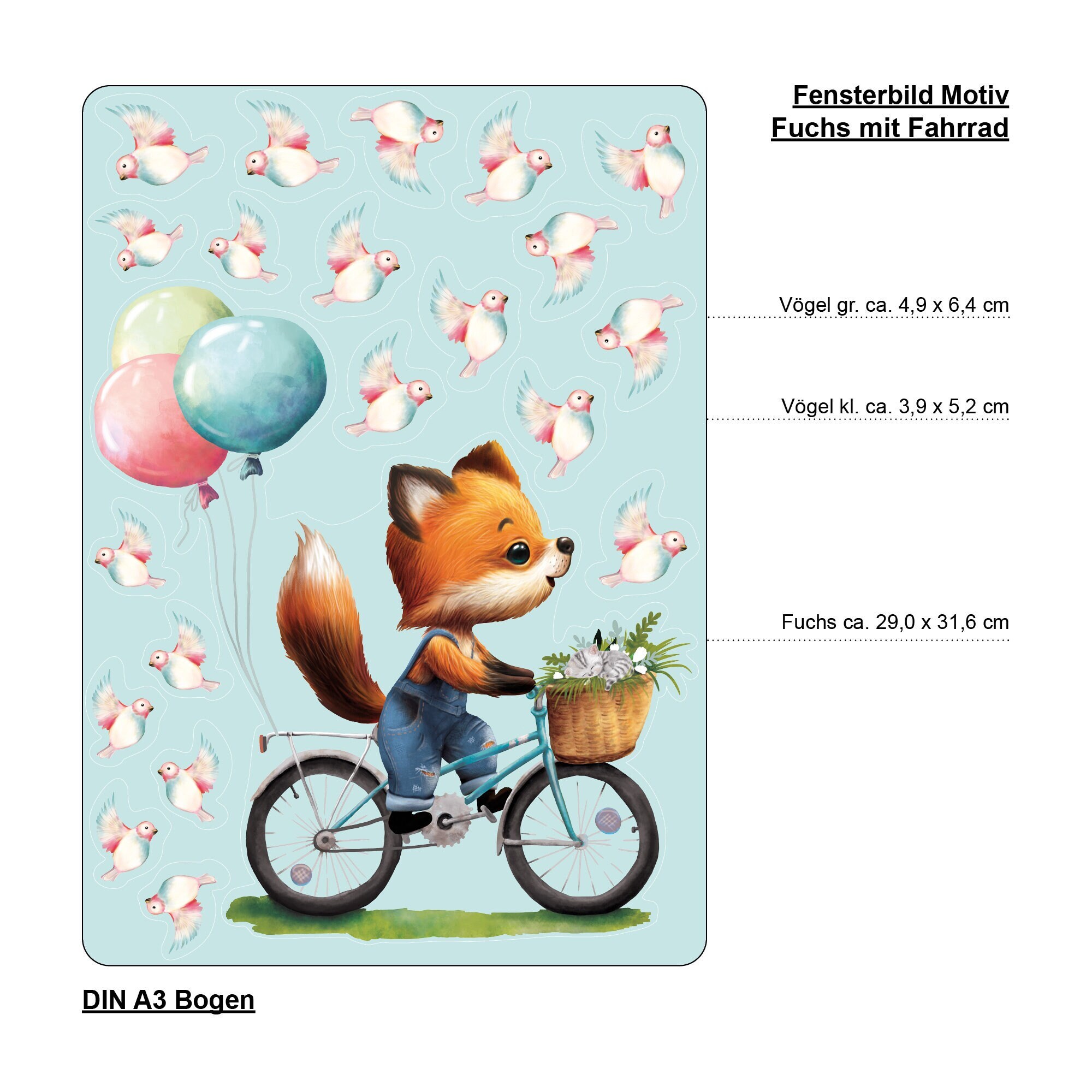 Fensterbild Frühling Fuchs mit Ballons und Vögeln Fensterdeko Kinderzimmer Kind
