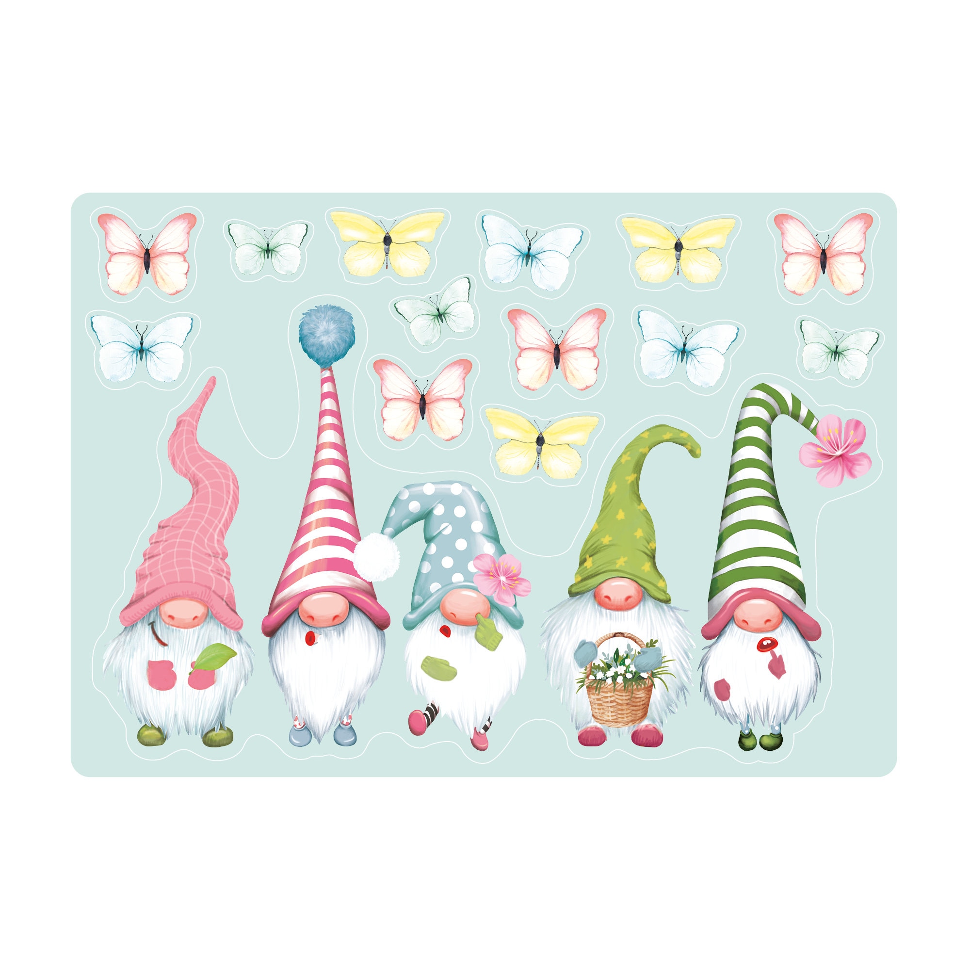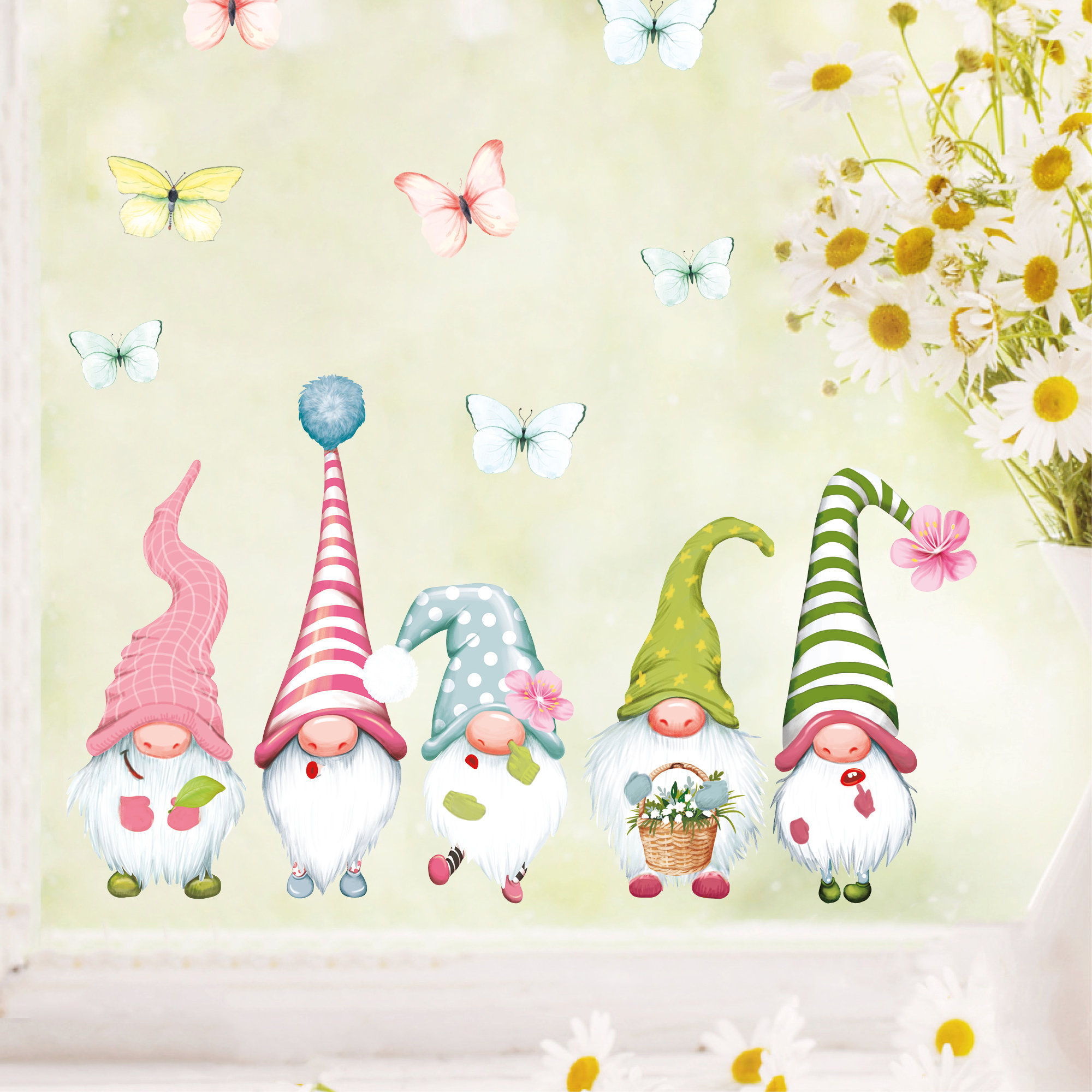 Wiederverwendbarer Fensteraufklebe Frühling Ostern 5 Zwerge mit Schmetterlingen Fensterdeko Kinderzimmer Kind Frühlingsdeko Osterdeko für das Mädchenzimmer