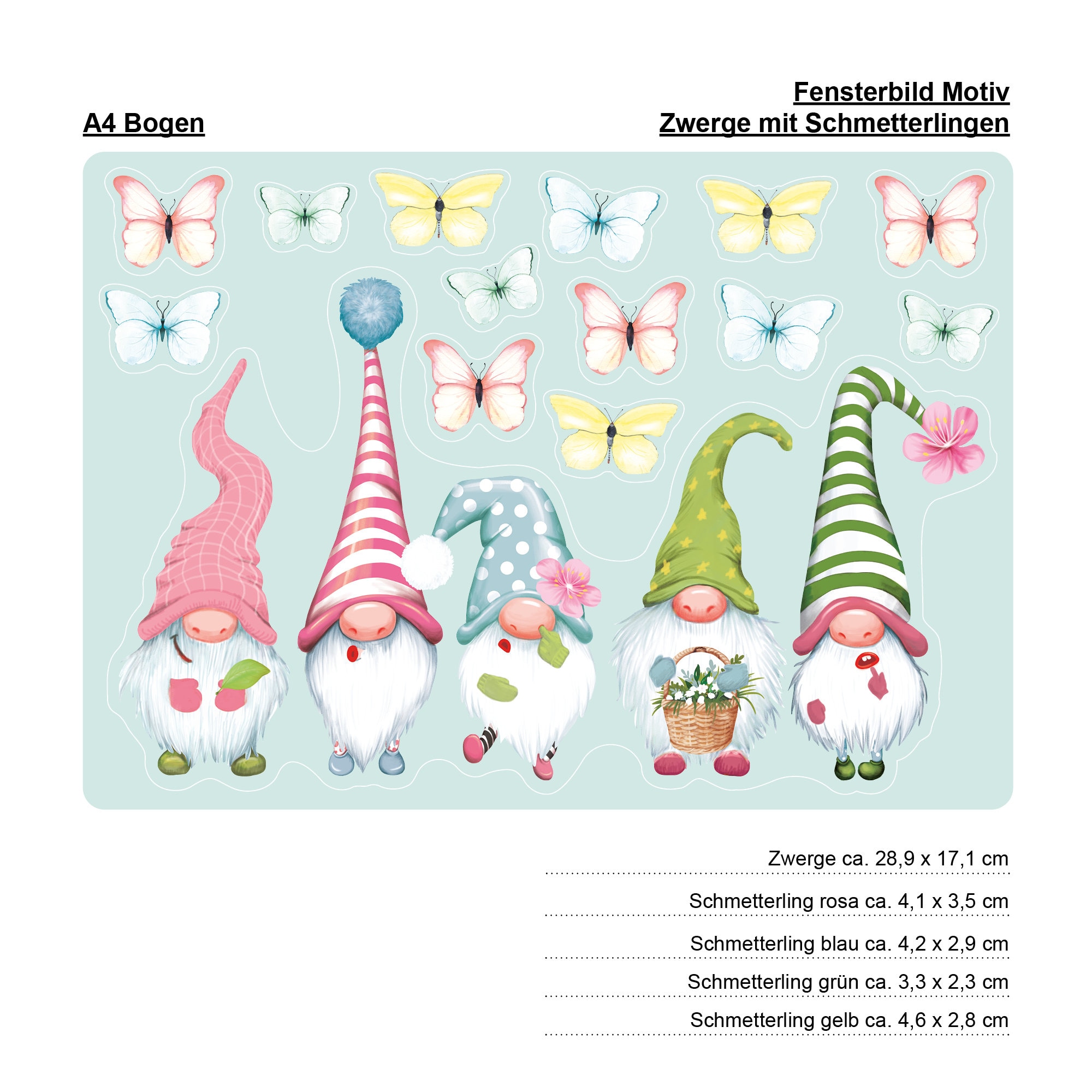 Fensterbild Frühling Ostern 5 Zwerge Schmetterlinge Fensterdeko Kinderzimmer Kind Frühlingsdeko Osterdeko für Mädchen