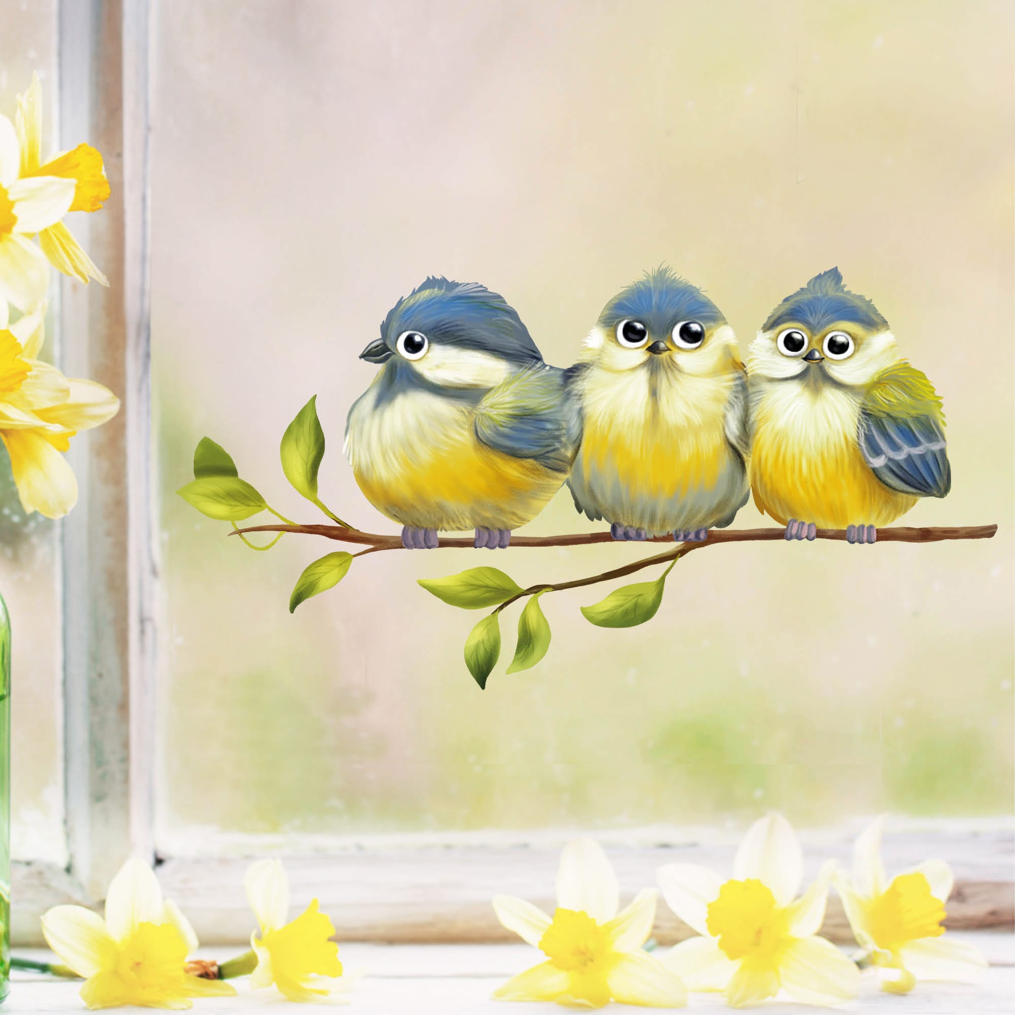 Fensterbild Frühling Ostern Vogelkinder bunte Fensterdekoration wiederverwendbare Fenstersticker, Osterdeko, Frühlingsdeko