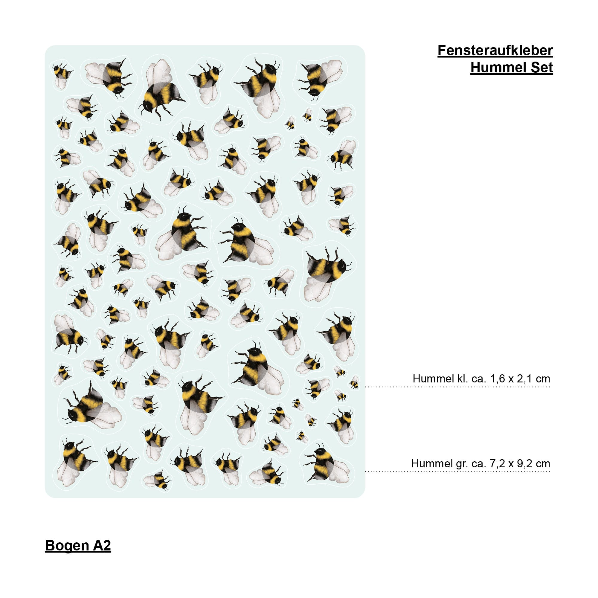 Fensterbild Frühling Sommer bunte wiederverwendbare Hummeln im Set.