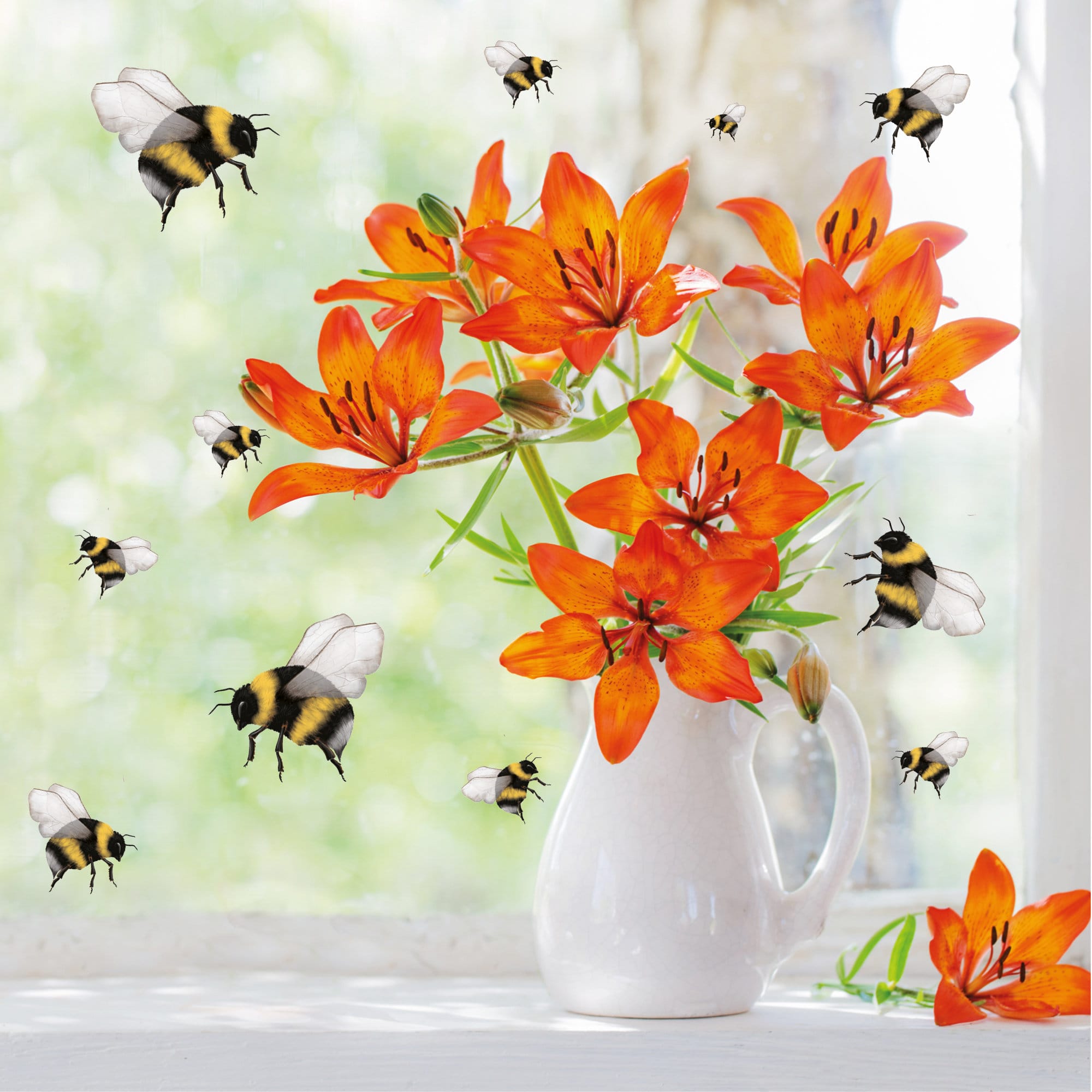 Fensterbild Frühling Sommer Bienen bunt wiederverwendbare Hummeln im Set Fensterdeko Kinderzimmer Sommerdeko Frühlingsdeko