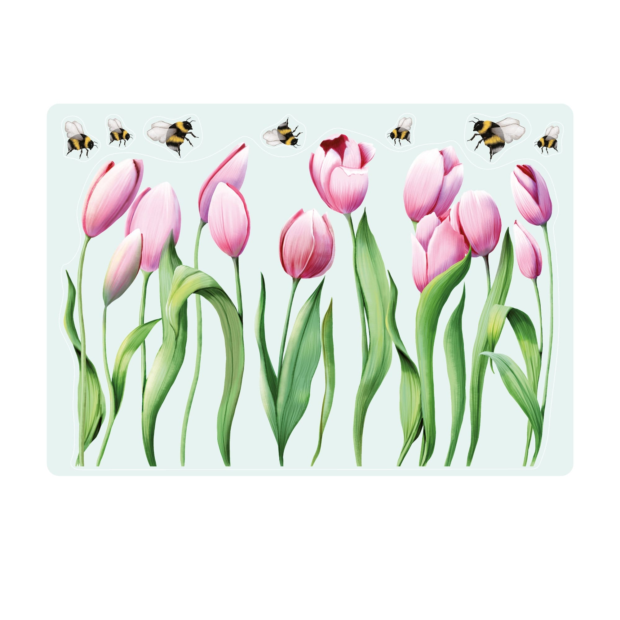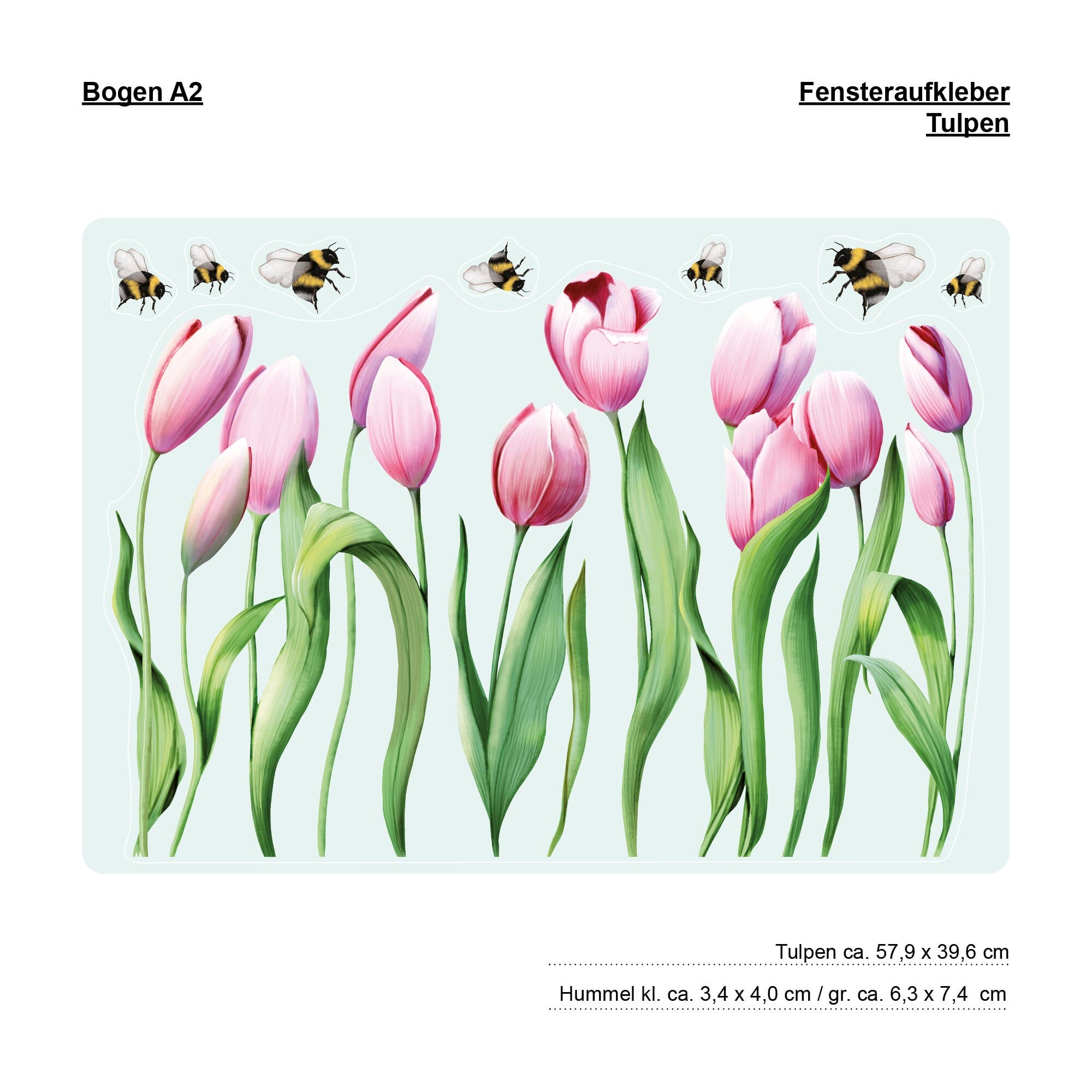 Fensterbild Frühling Tulpen und Bienen Osterdeko Blumenwiese Fensterdeko Kinderzimmer Kind