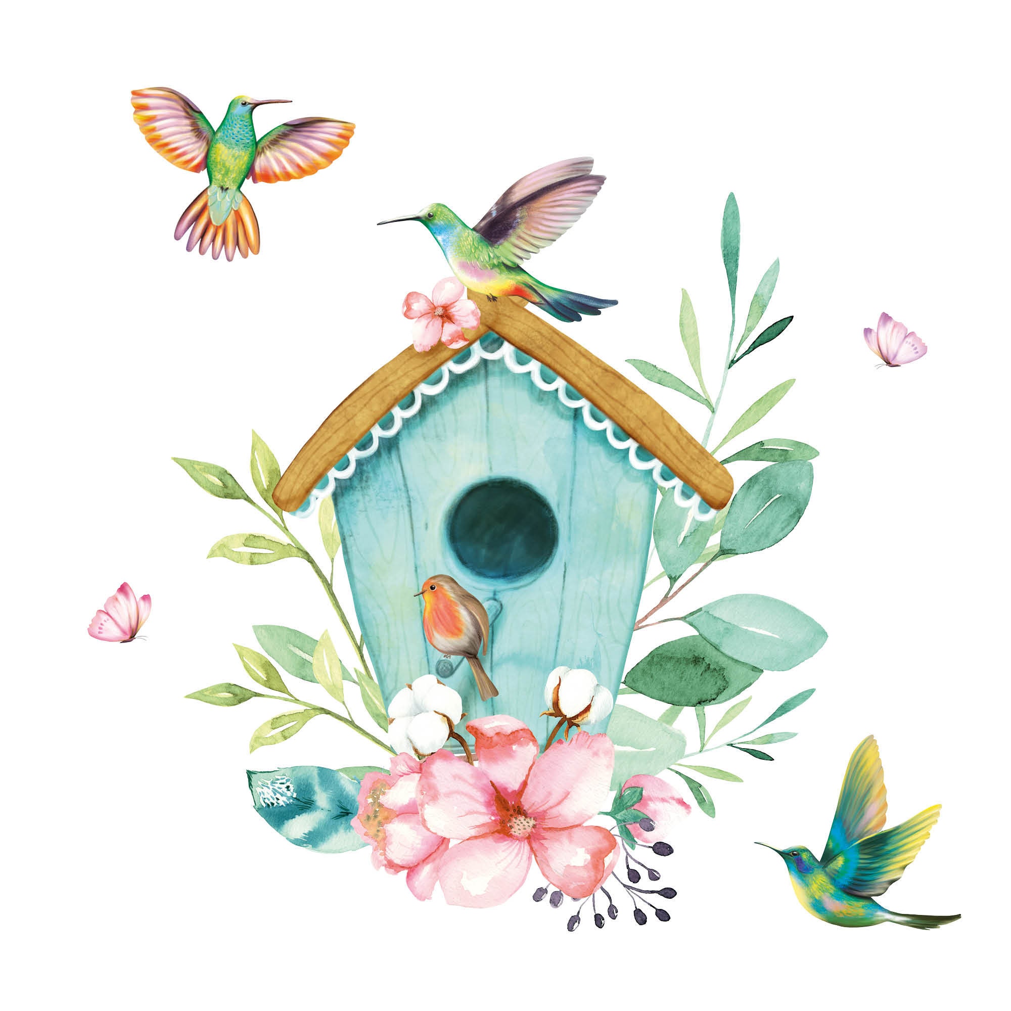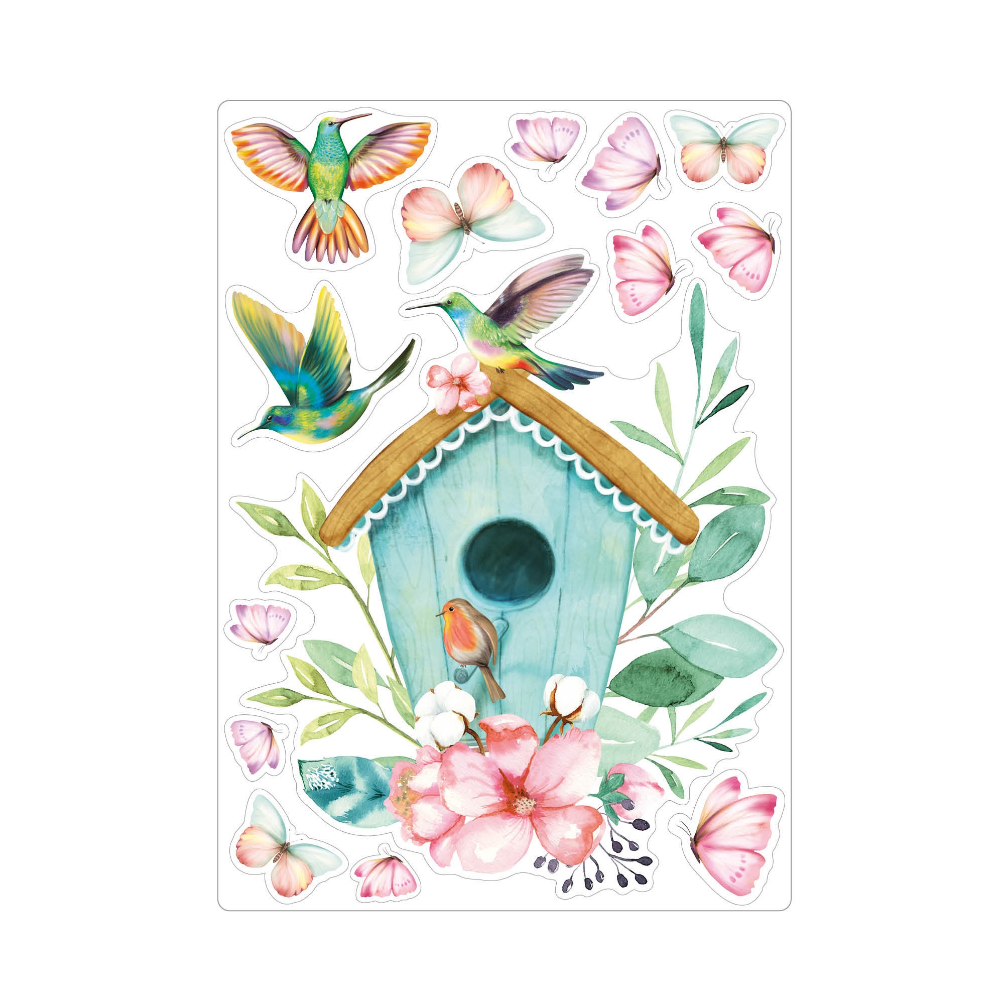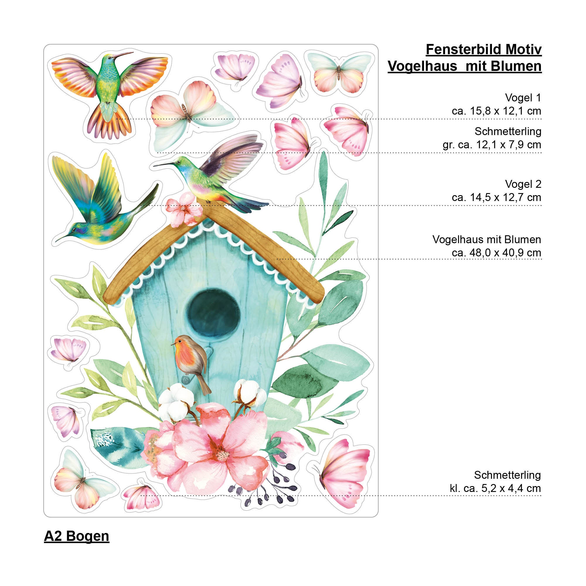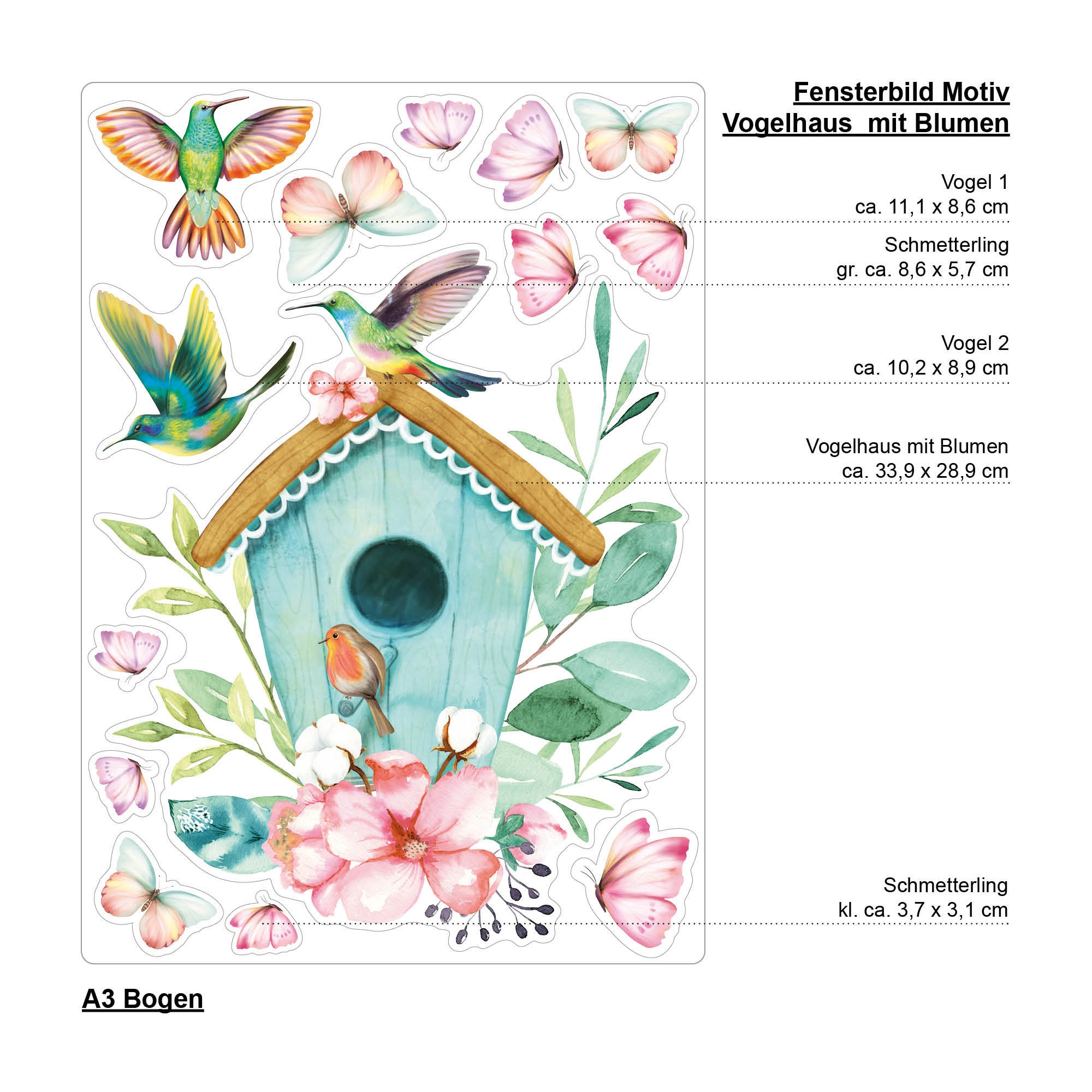Fensterbild Frühling Vogelhäuschen mit Vögeln und Schmetterlingen Fensterdeko Kinderzimmer Kind, Frühlingsdeko, Osterdeko