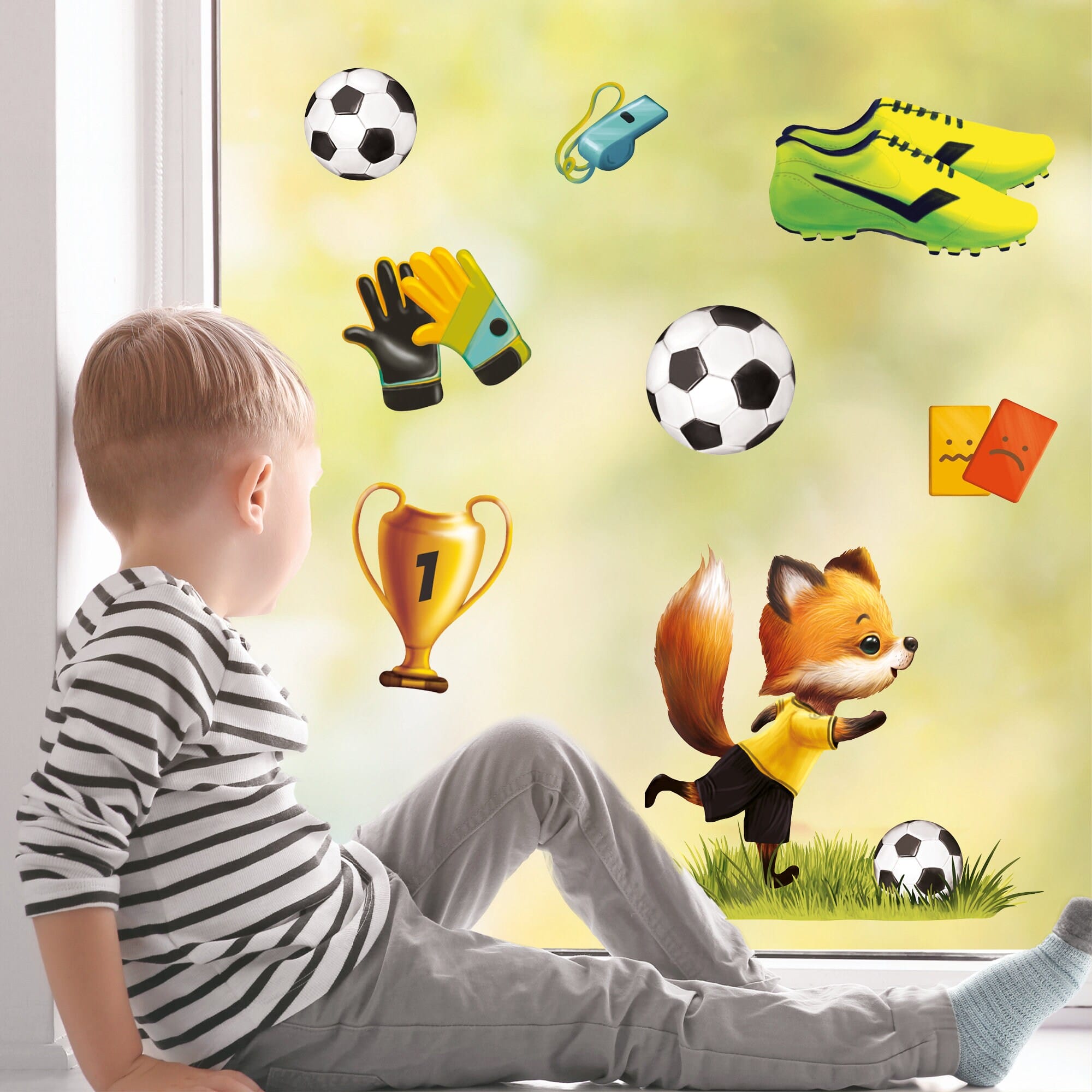 Fensterbild Fuchs Fußballer in verschiedenen Farben wiederverwendbar Kinderzimmer Fußball Fußballfan EM WM Sport Team Soccer Fensterdeko