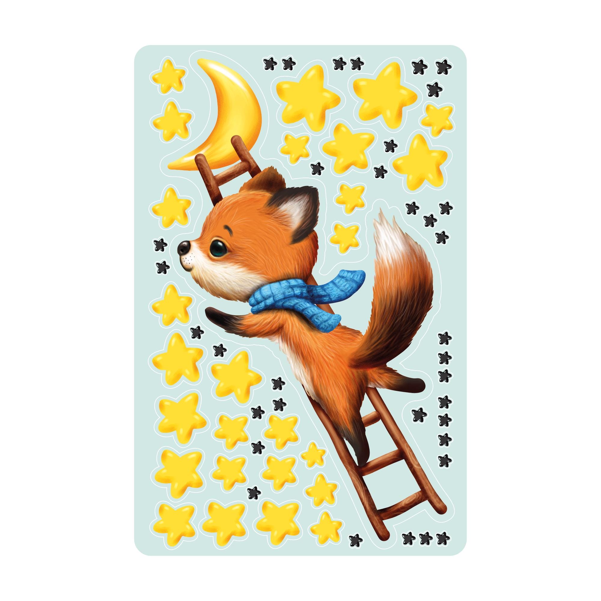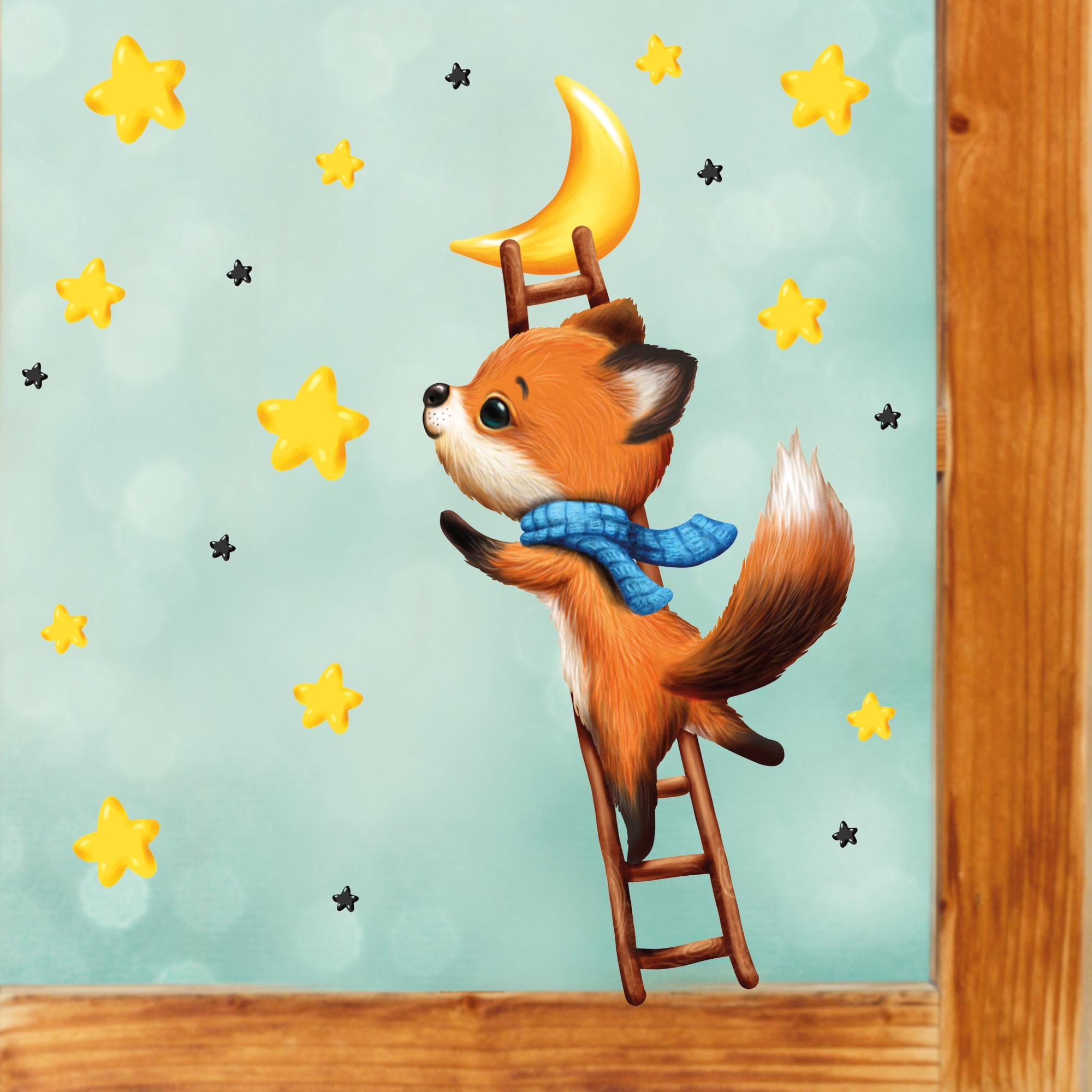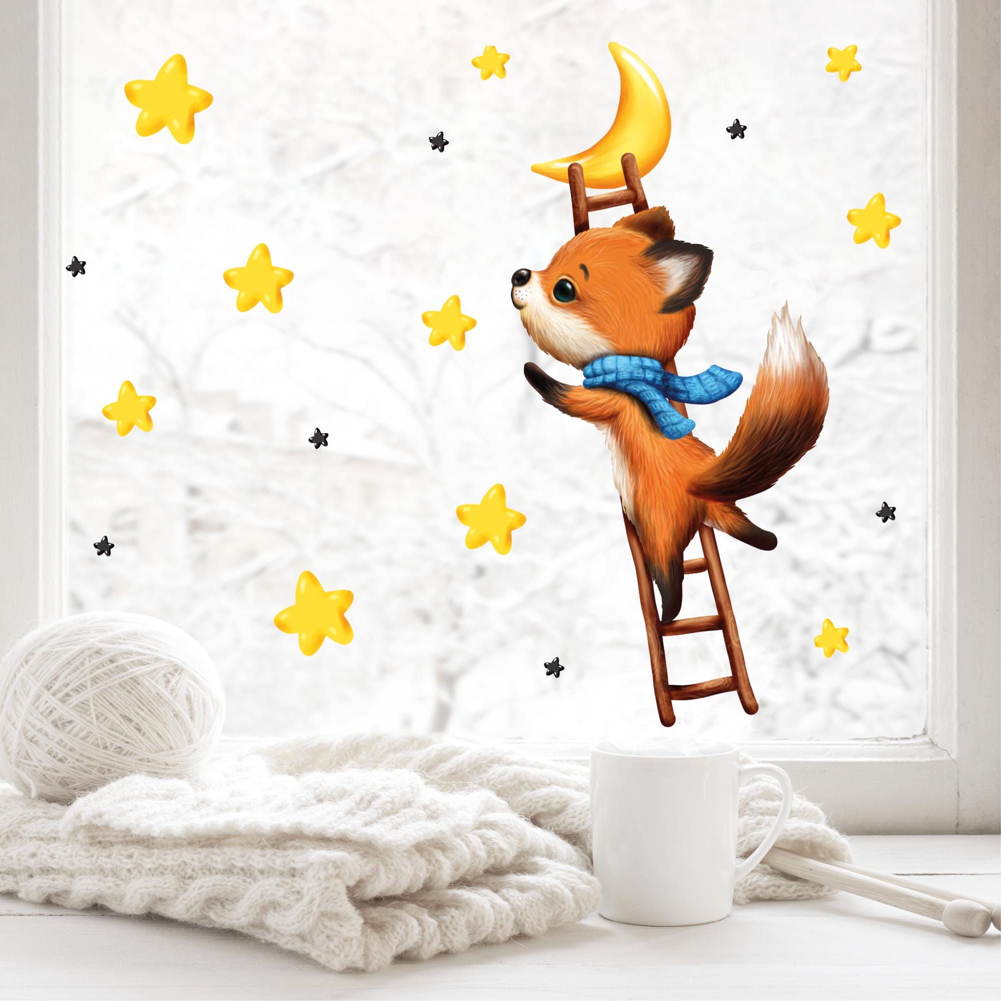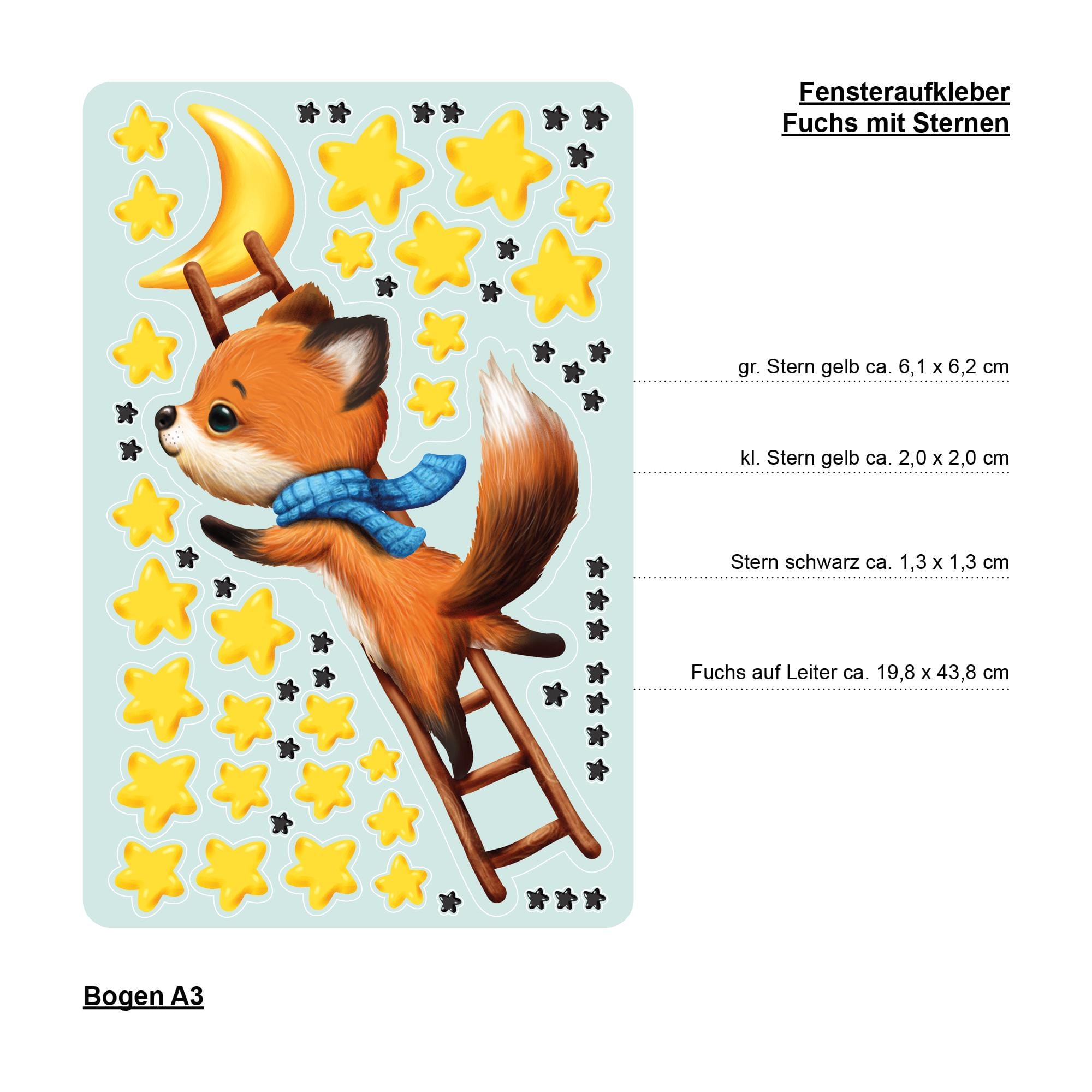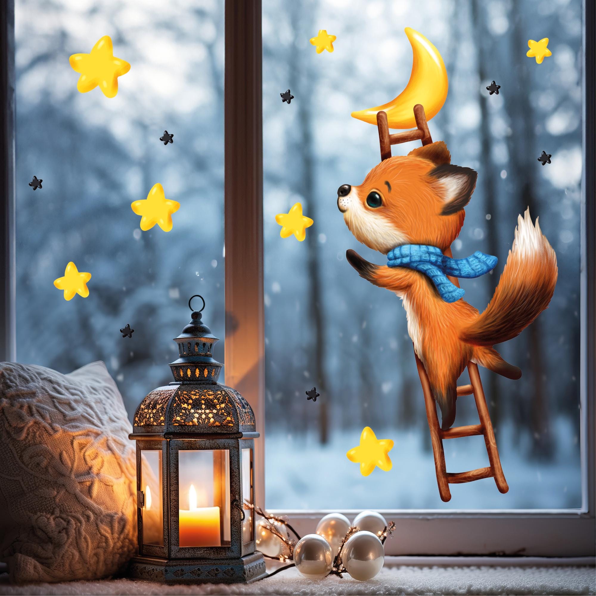 Fensterbild Fuchs Sterne Leiter Winter Weihnachtsdeko Mond Kinderzimmer Fenster Winterdeko wiederverwendbar