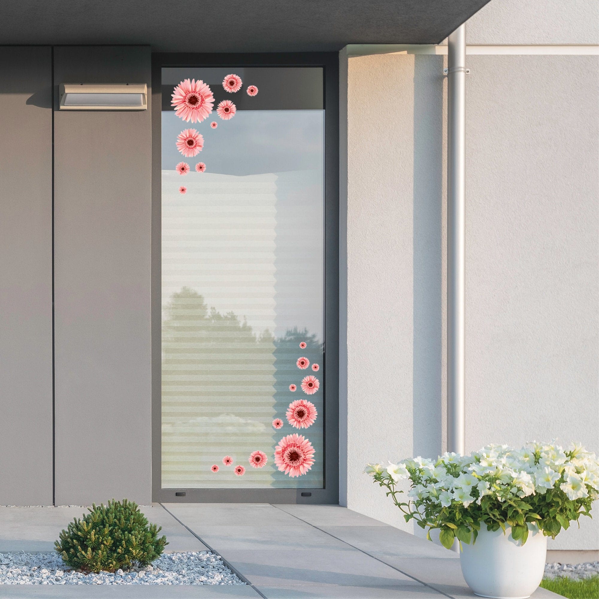 Fensterbild Gerbera wiederverwendbar pastell Blumen bunt einfarbig geld rosa magenta orange Fensterdekoration