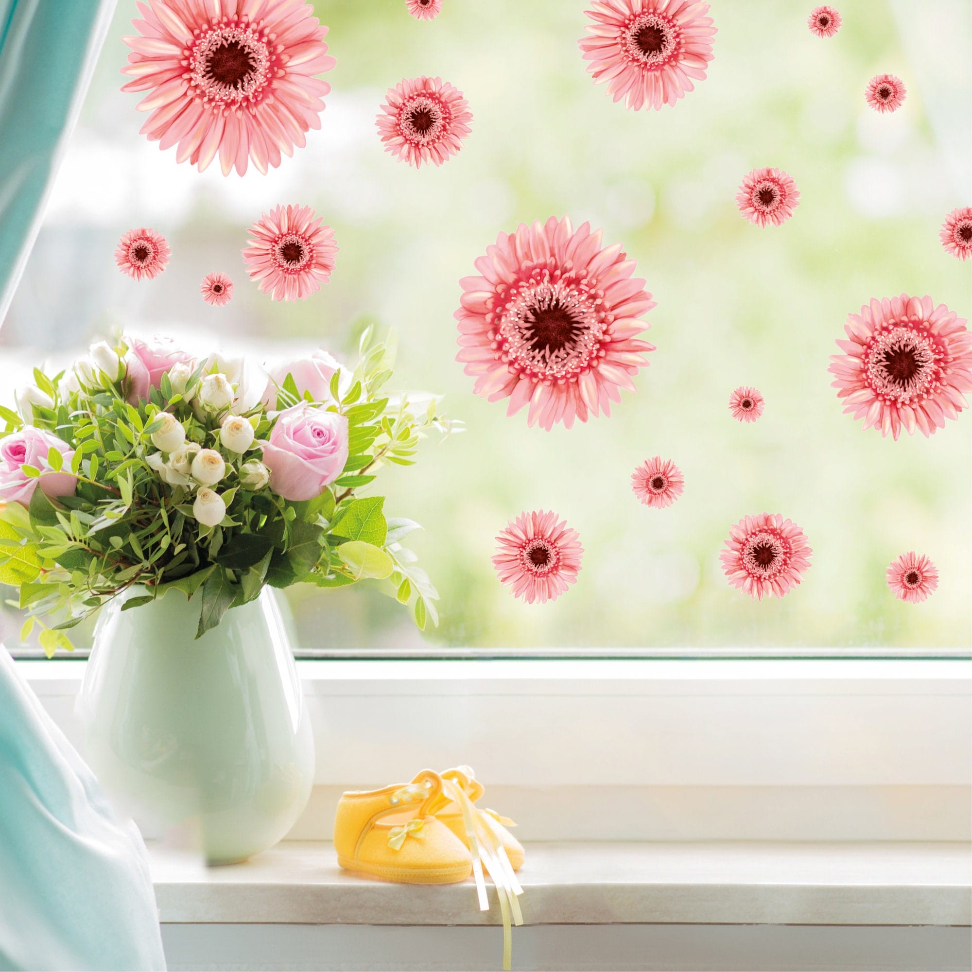 Fensterbild Gerbera wiederverwendbar pastell Blumen bunt florale Fensterdekoration