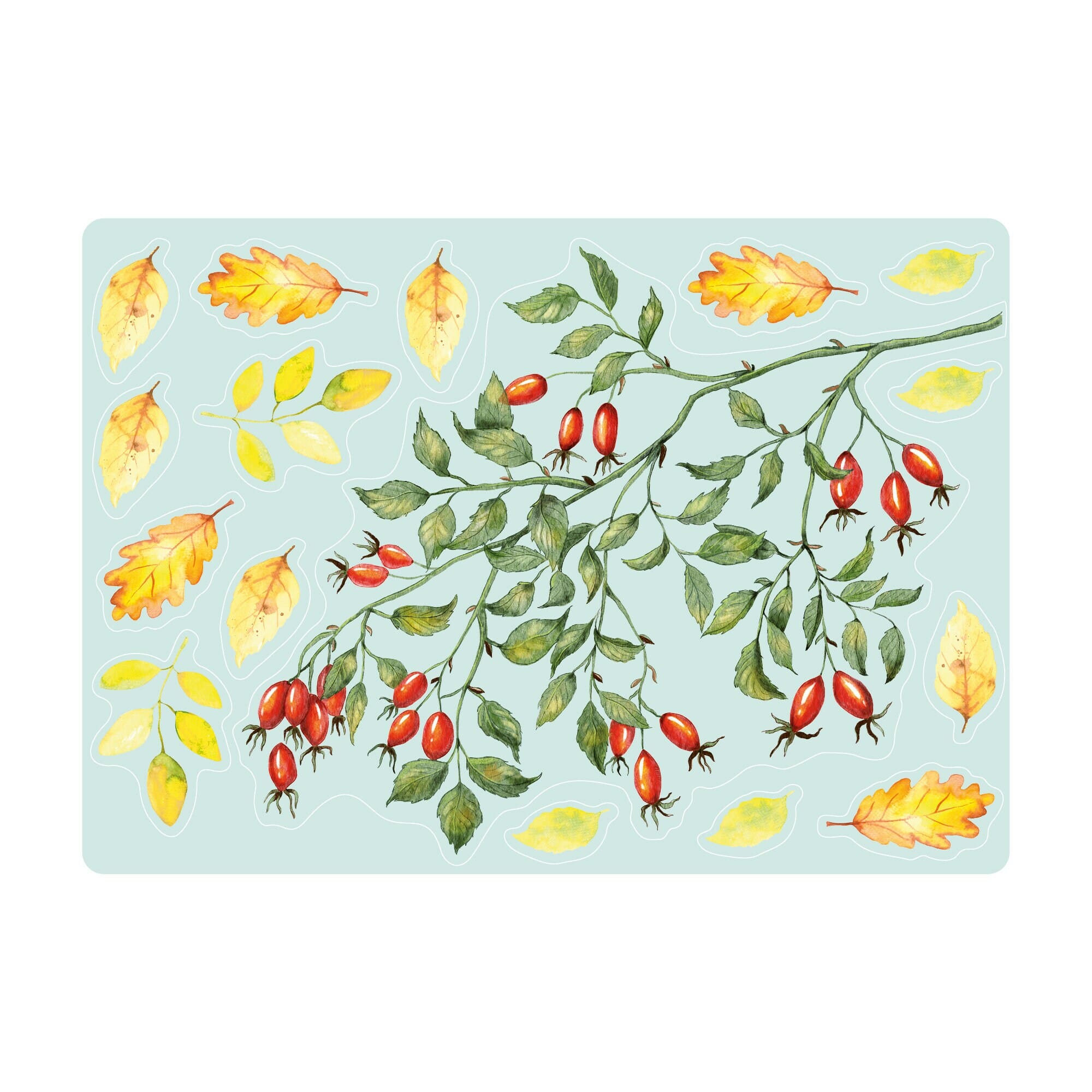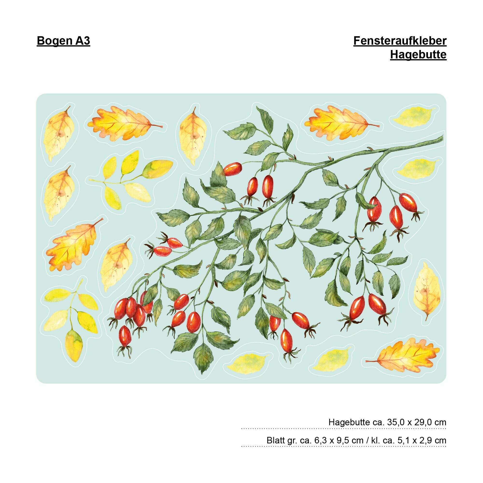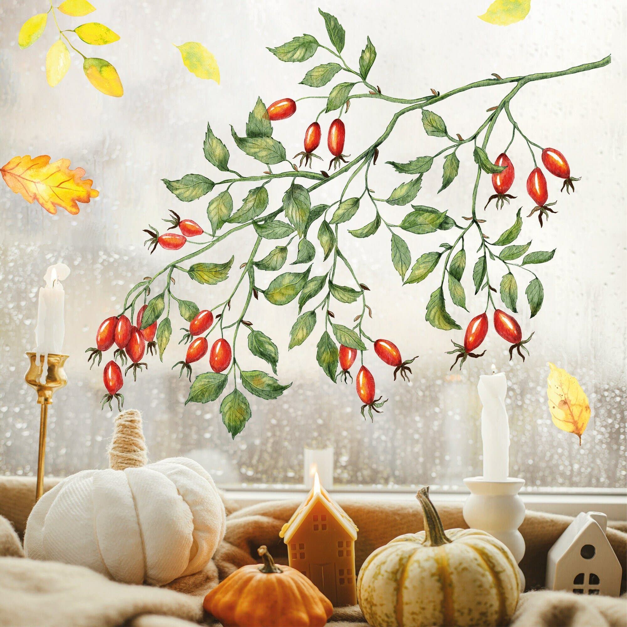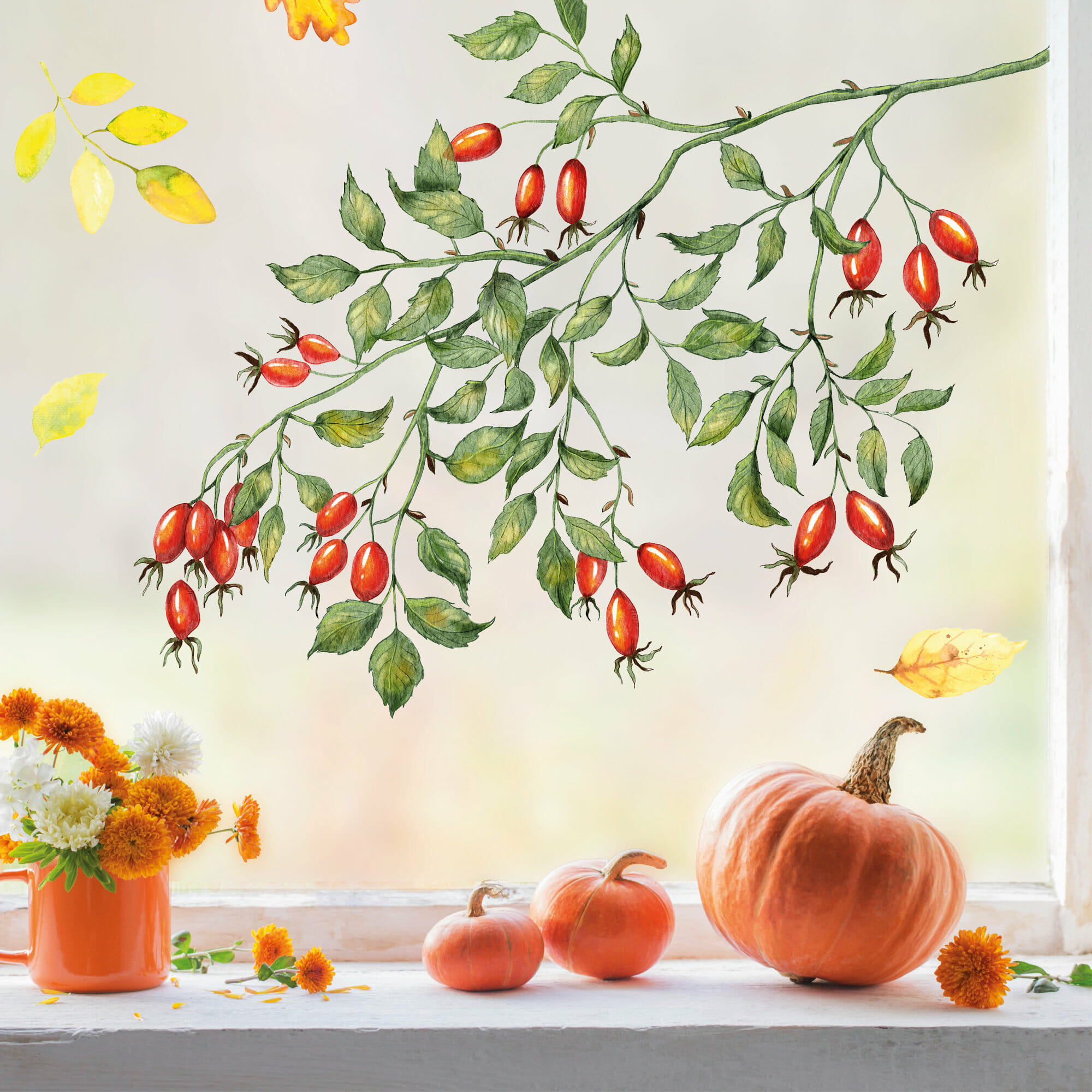 Fensterbild Hagebutten Zweig Herbst Herbstfrüchte Herbstblätter Halloween bunt wiederverwendbare Fensteraufkleber Kinderzimmer Baby Kind