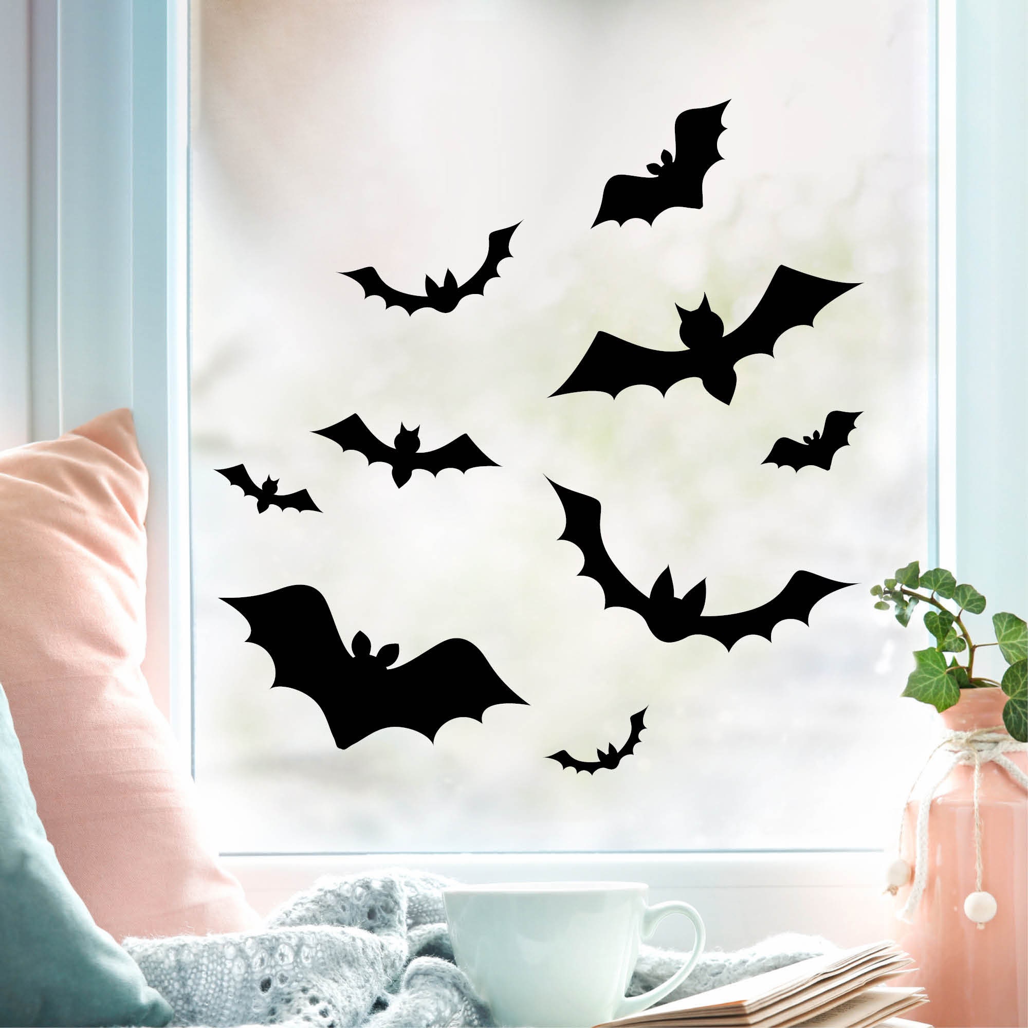 Fensterbild Halloween Fledermäuse Silhouette Fensterdeko Kinderzimmer Kind Fensterfolie Fensterdekoration