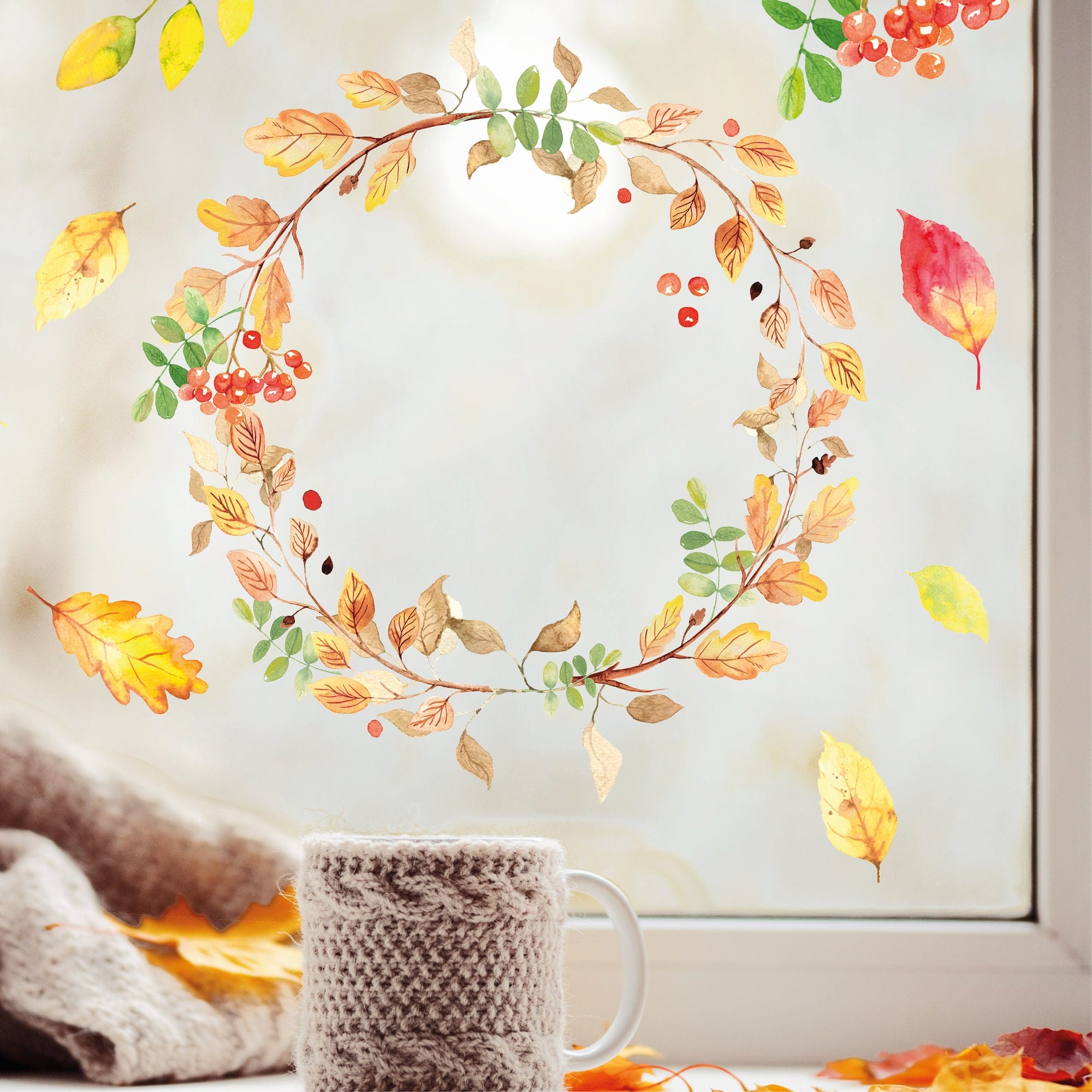 Fensterbild Herbst Blätterkranz, Blätter, Herbstlicher Fensteraufkleber Fensterdeko wiederverwendbare Fensteraufkleber Kinderzimmer Kind