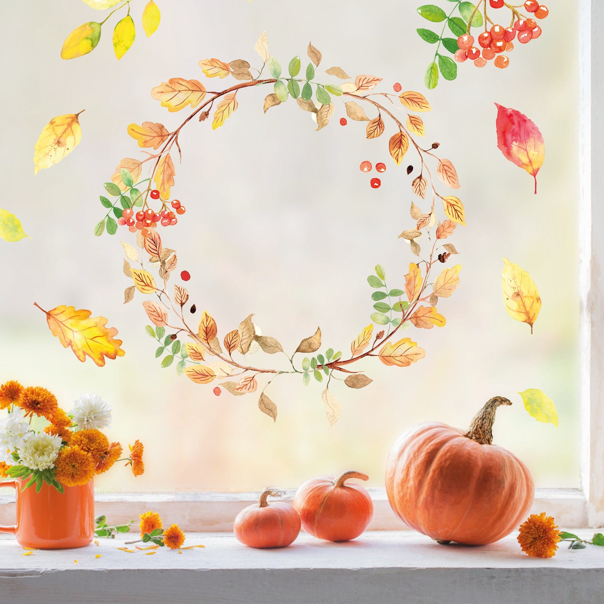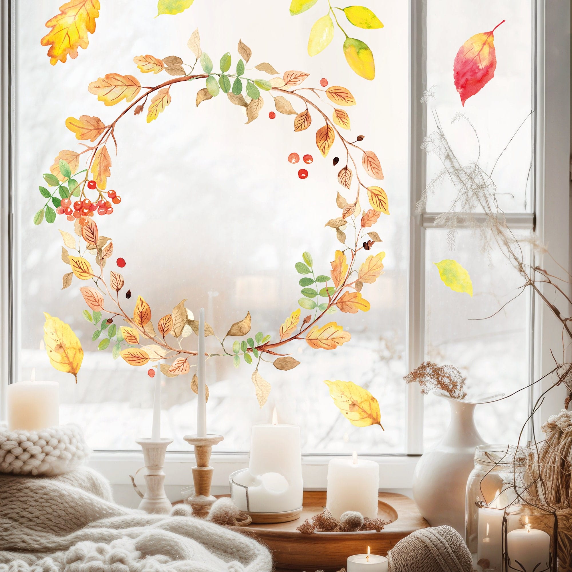 Fensterbild Herbst Blätterkranz Blätter Herbstlicher Fensteraufkleber Fensterdeko wiederverwendbare Fensteraufkleber Kinderzimmer Kind