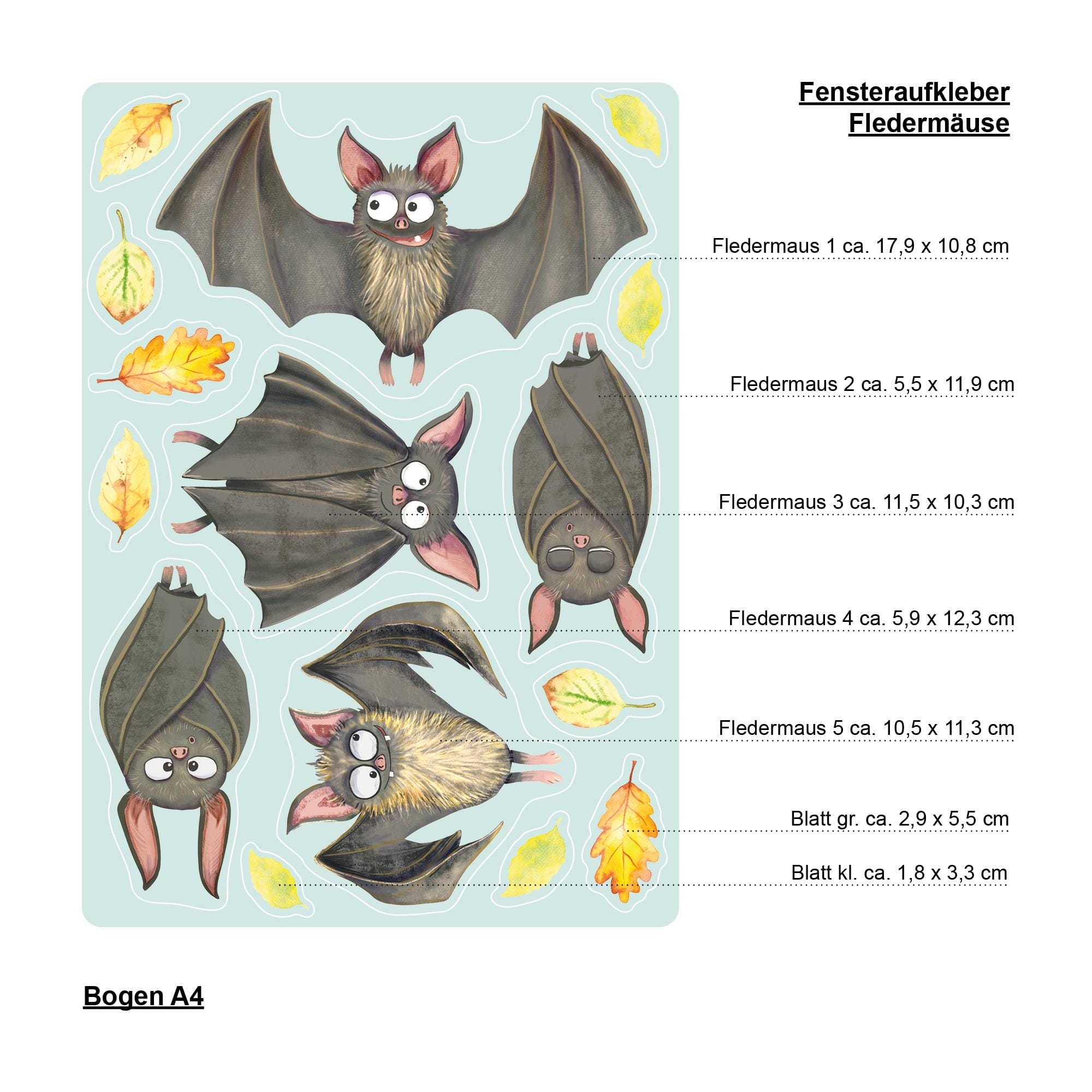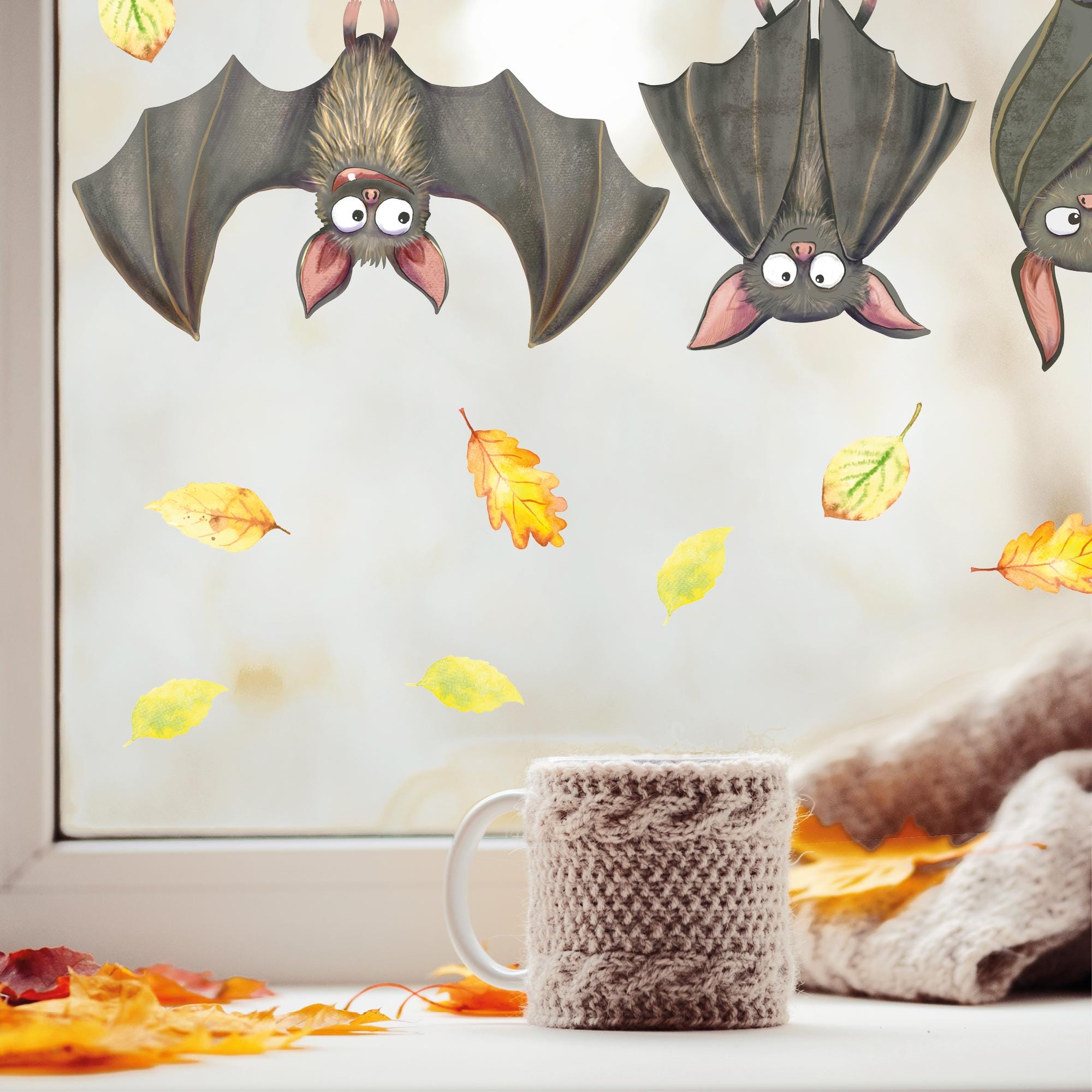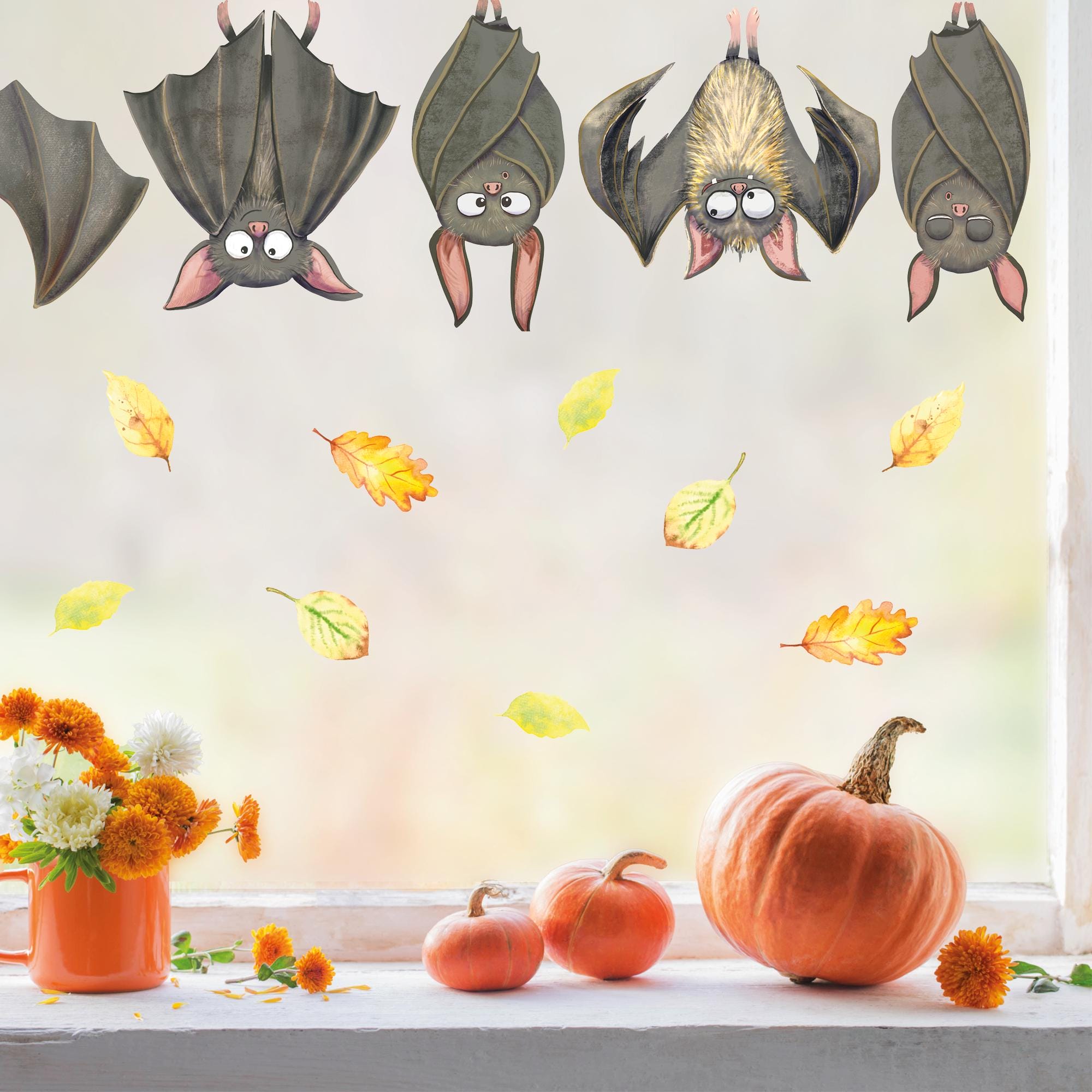 Fensterbild Herbst Fledermäuse herunterhängend Halloween Blätter Fensterdeko Kinderzimmer Fensterfolie Fensterdekoration