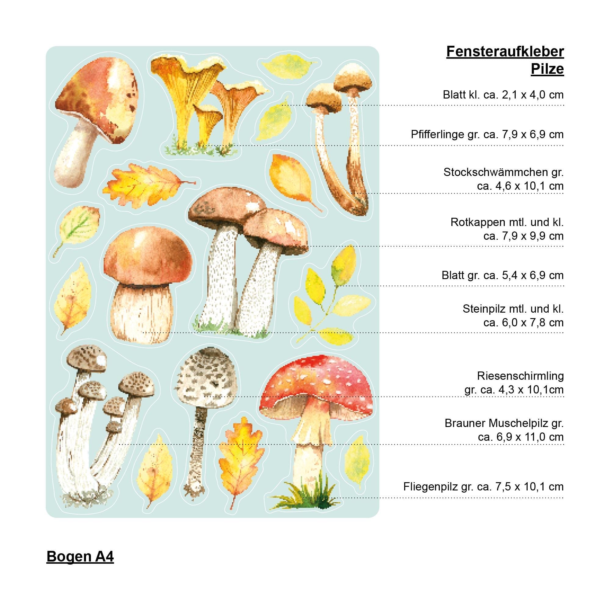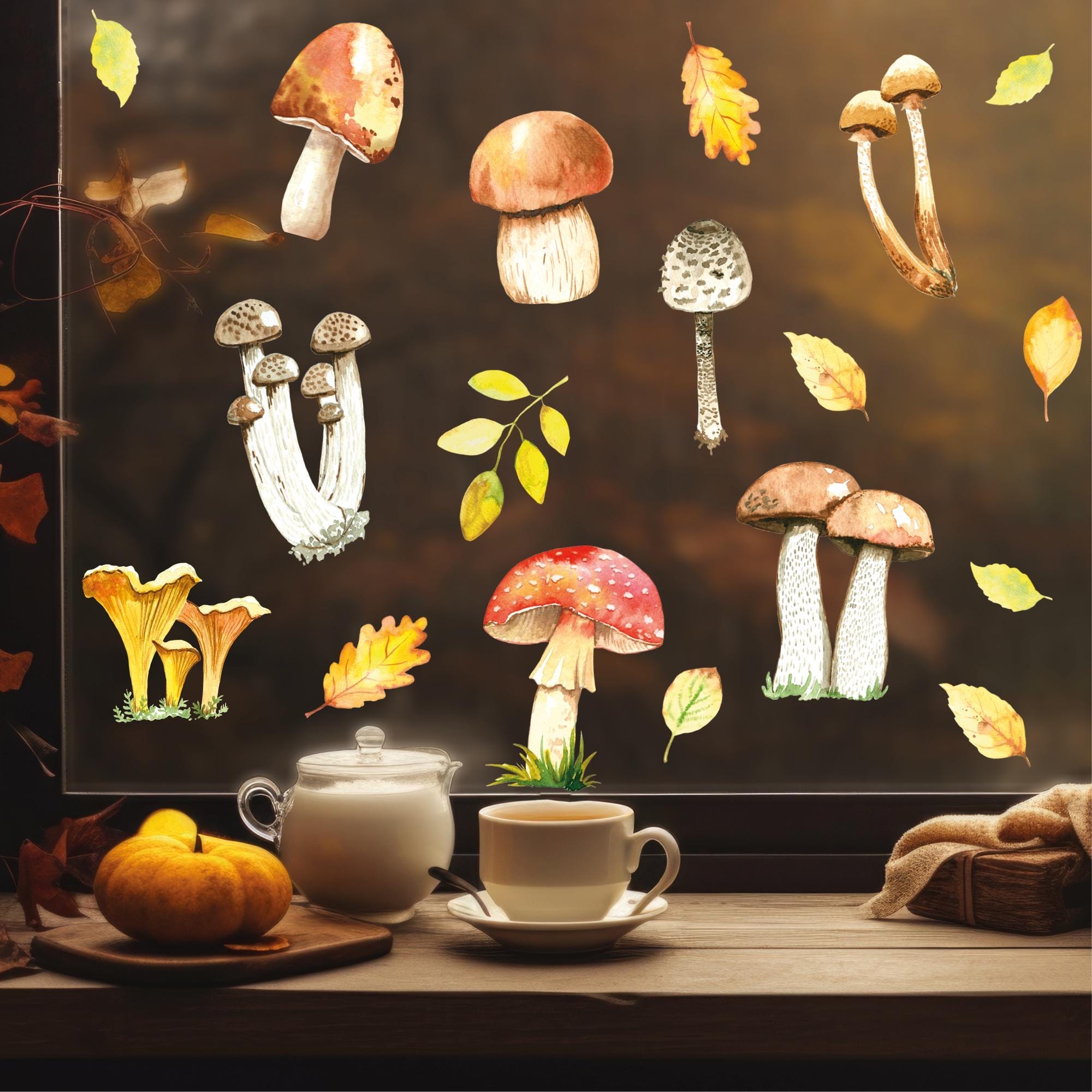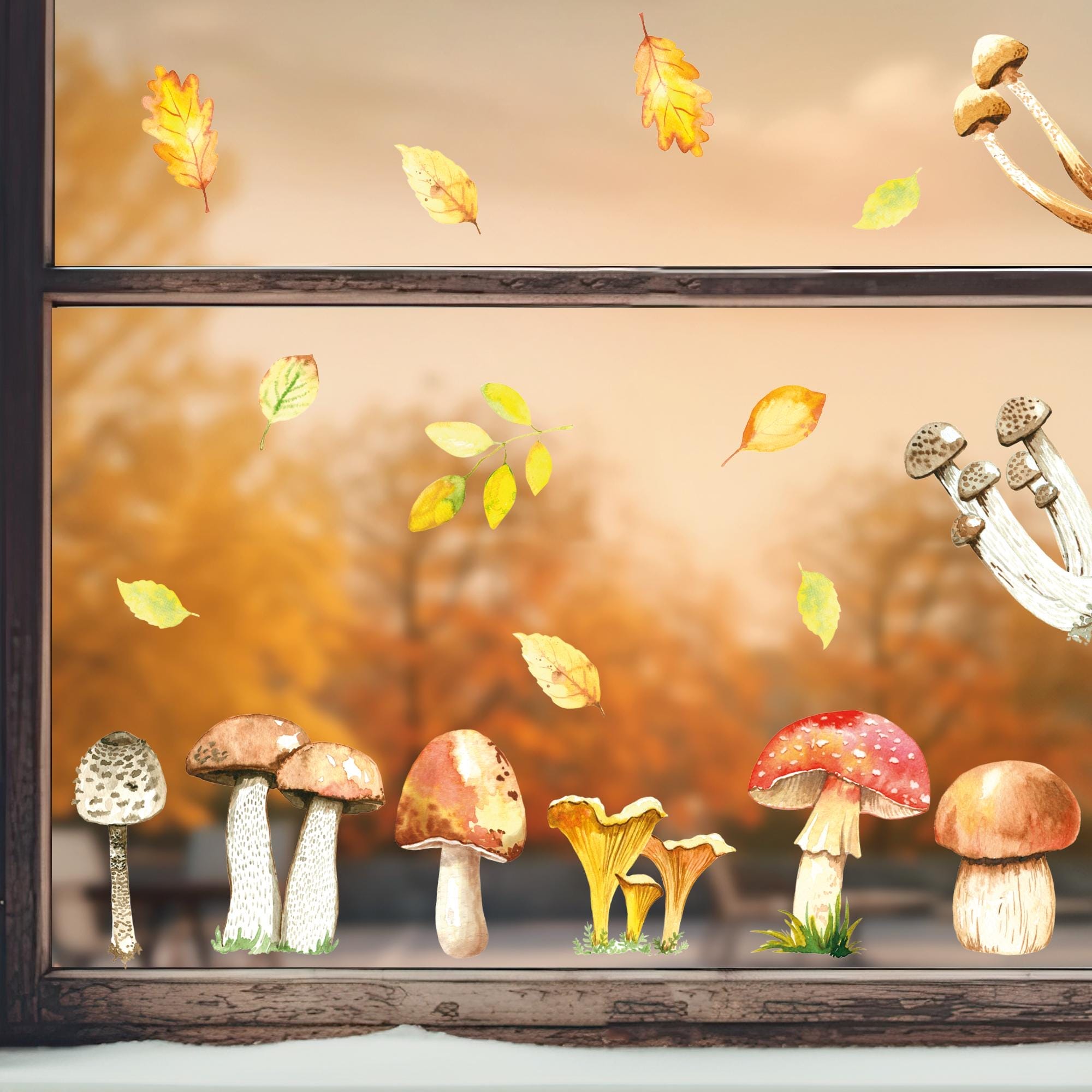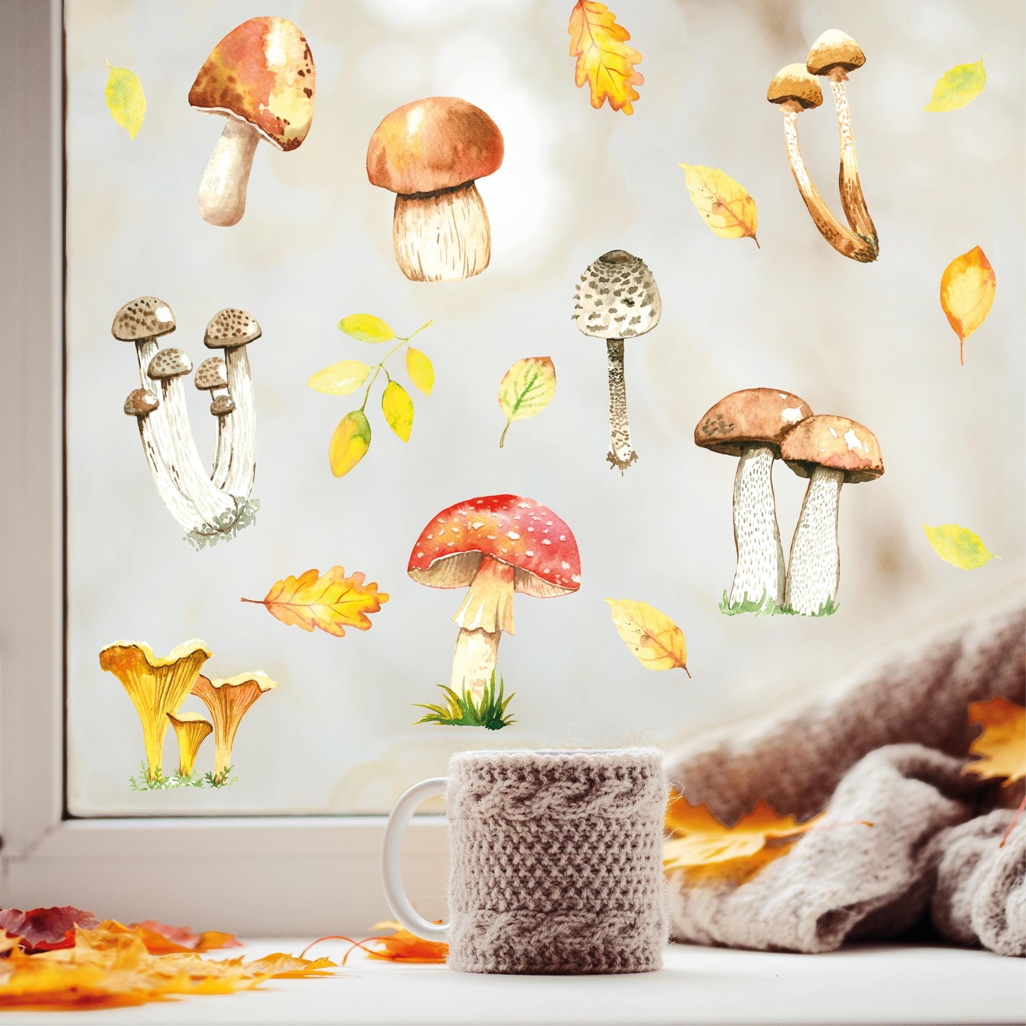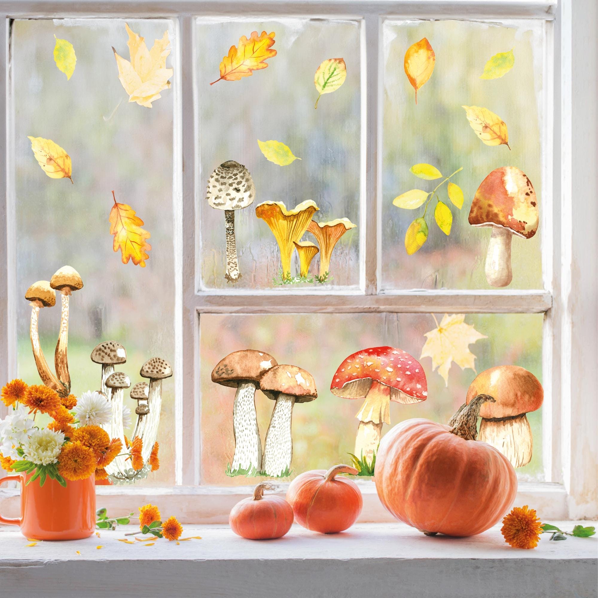 Fensterbild Herbst Pilze Herbstfrüchte Steinpilz Fliegenpilz Pfifferlinge Pilz bunt wiederverwendbare Fensteraufkleber Küche Eingang