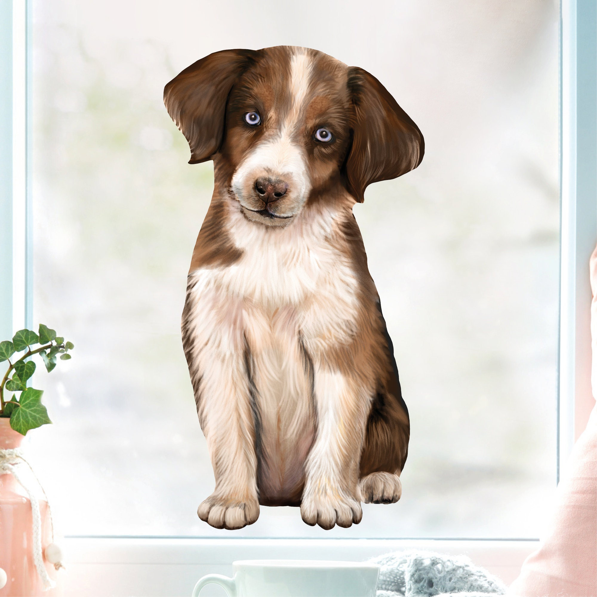 Fensterbild Hund Australian Shepherd, Fensterdeko Kinderzimmer Kind Osterdeko Frühlingsdeko