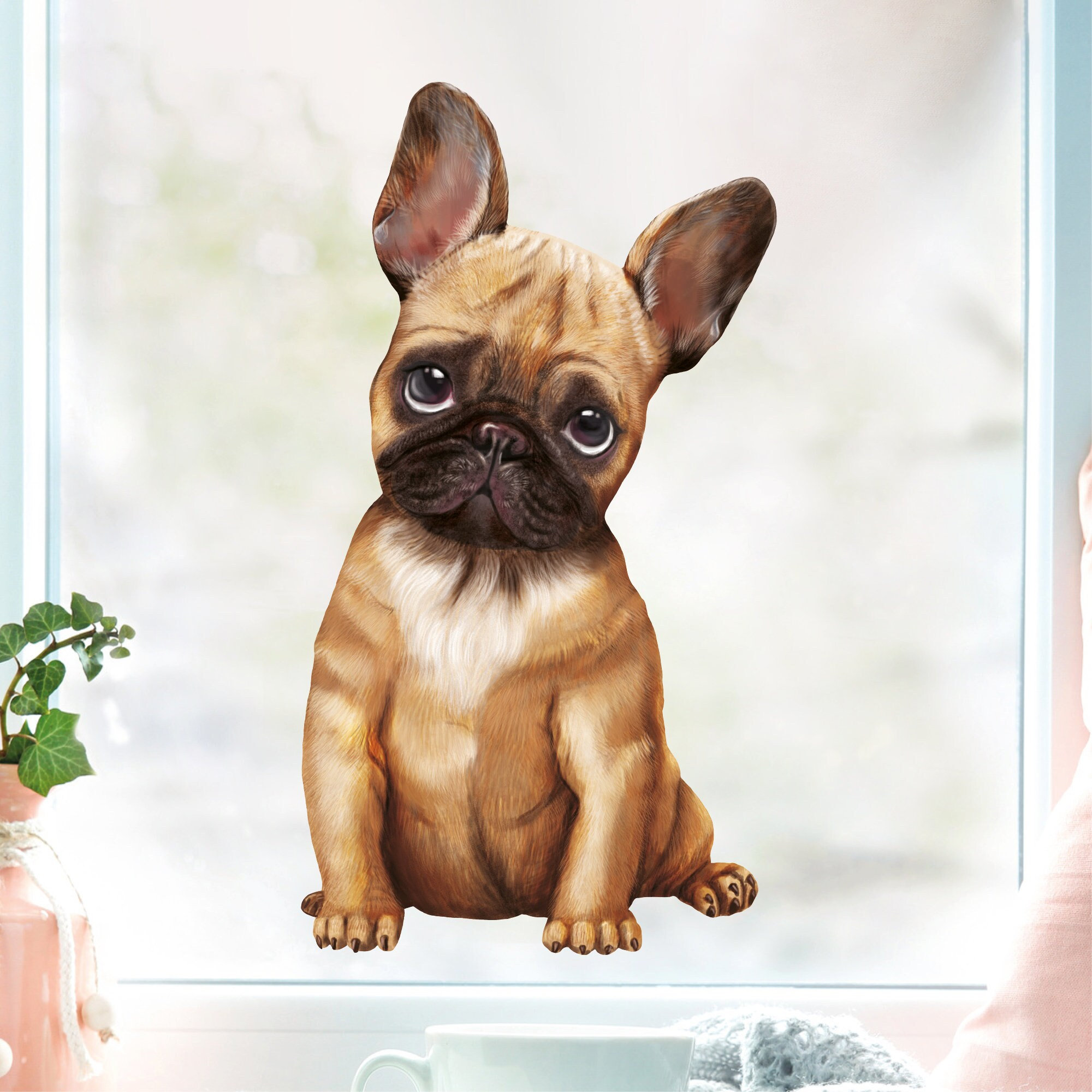 Fensterbild Hund Haustier Französische Bulldogge, Fensterdeko Kinderzimmer Kind Osterdeko Frühlingsdeko