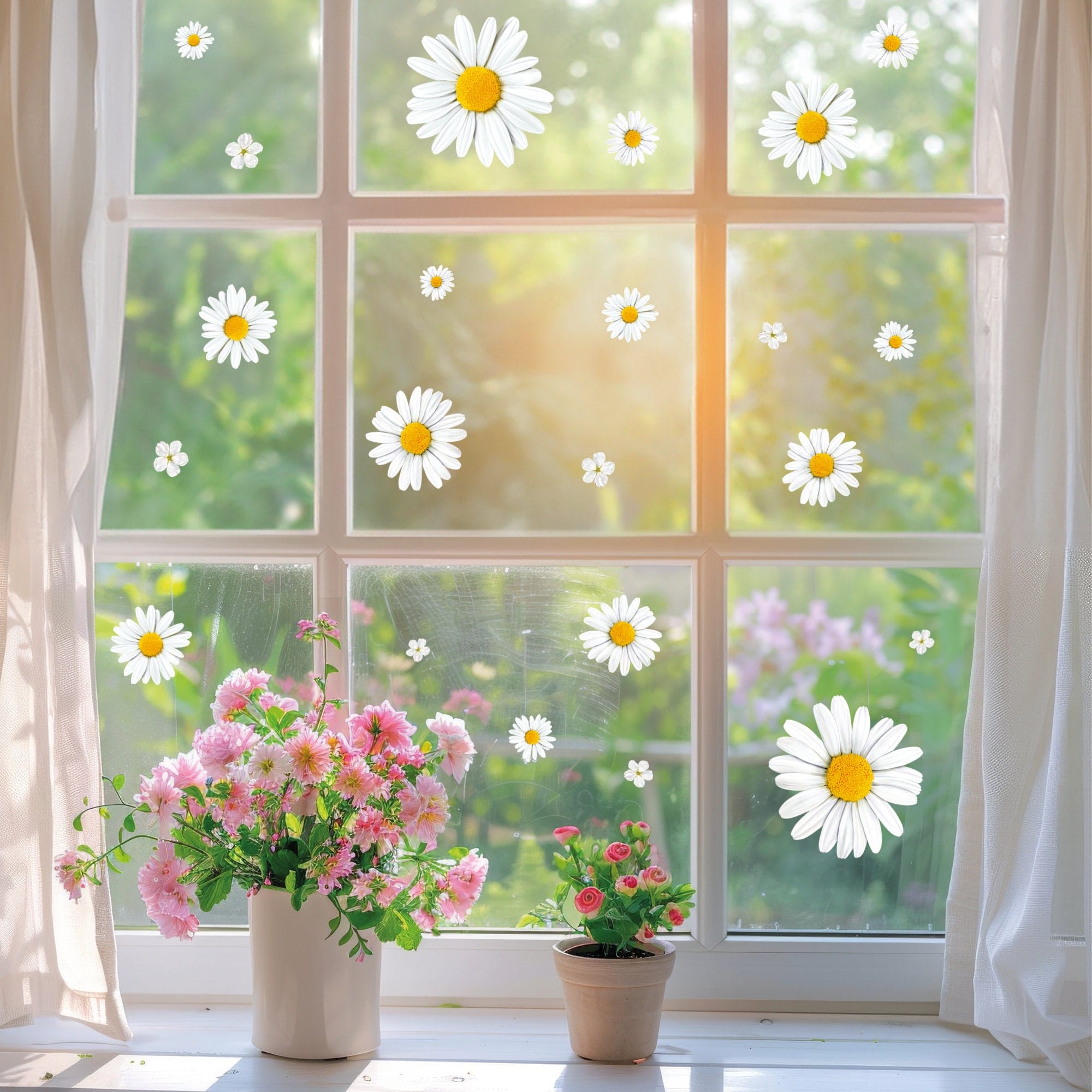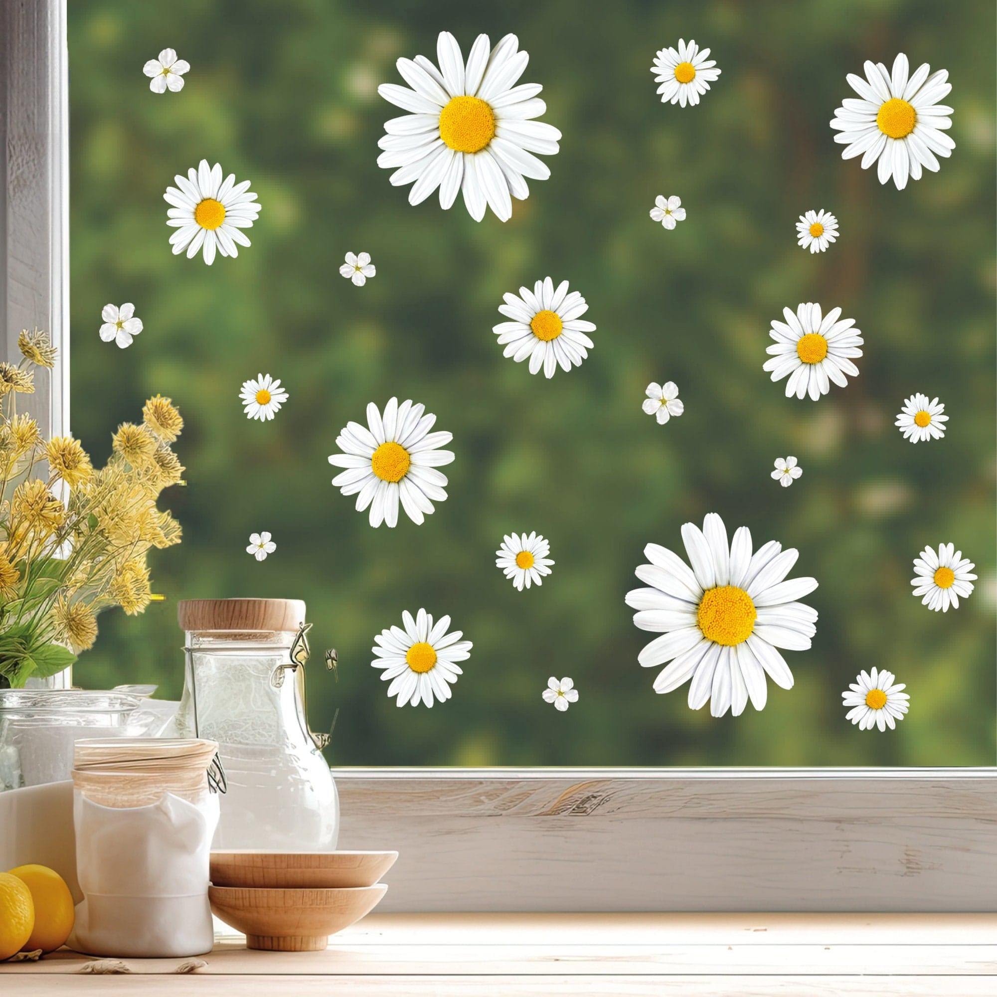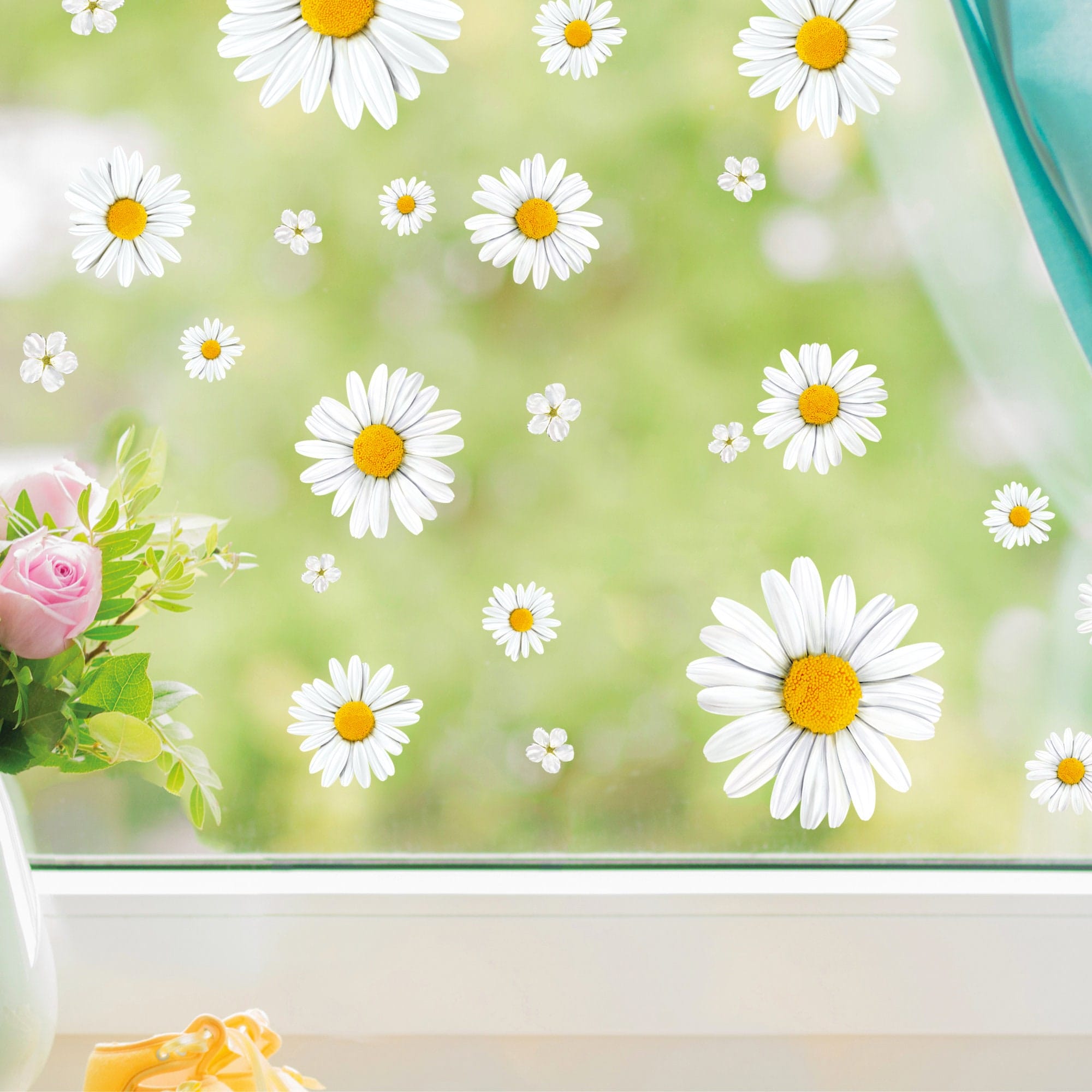 Auf dem Bild ist das Produkt: Fensterbild Kamille wiederverwendbar weiß Blumen Gänseblümchen Fensterdekoration zum Preis von €13.9 abgebildet.