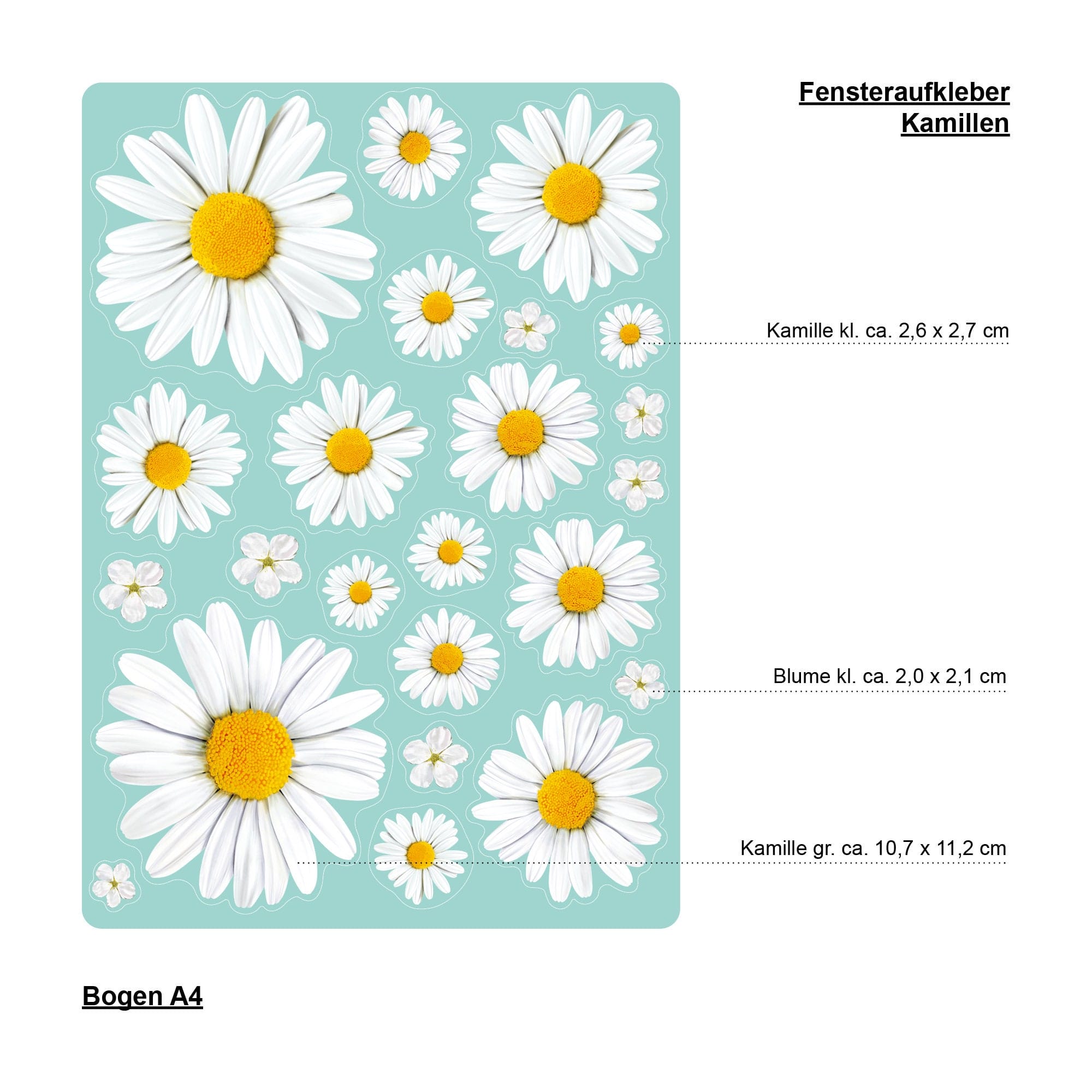 Fensterbild Kamille wiederverwendbar weiß Blumen Gänseblümchen Fensterdekoration