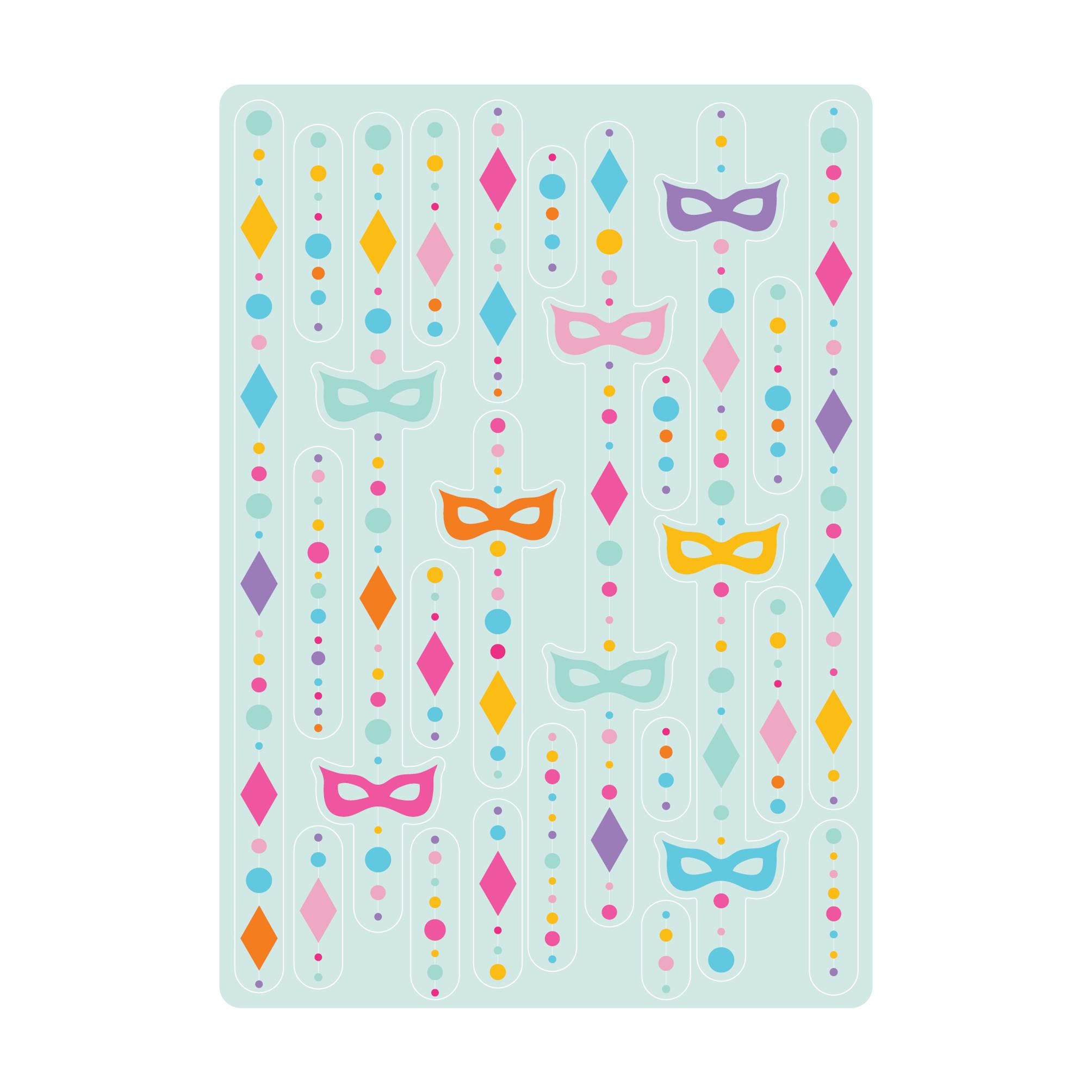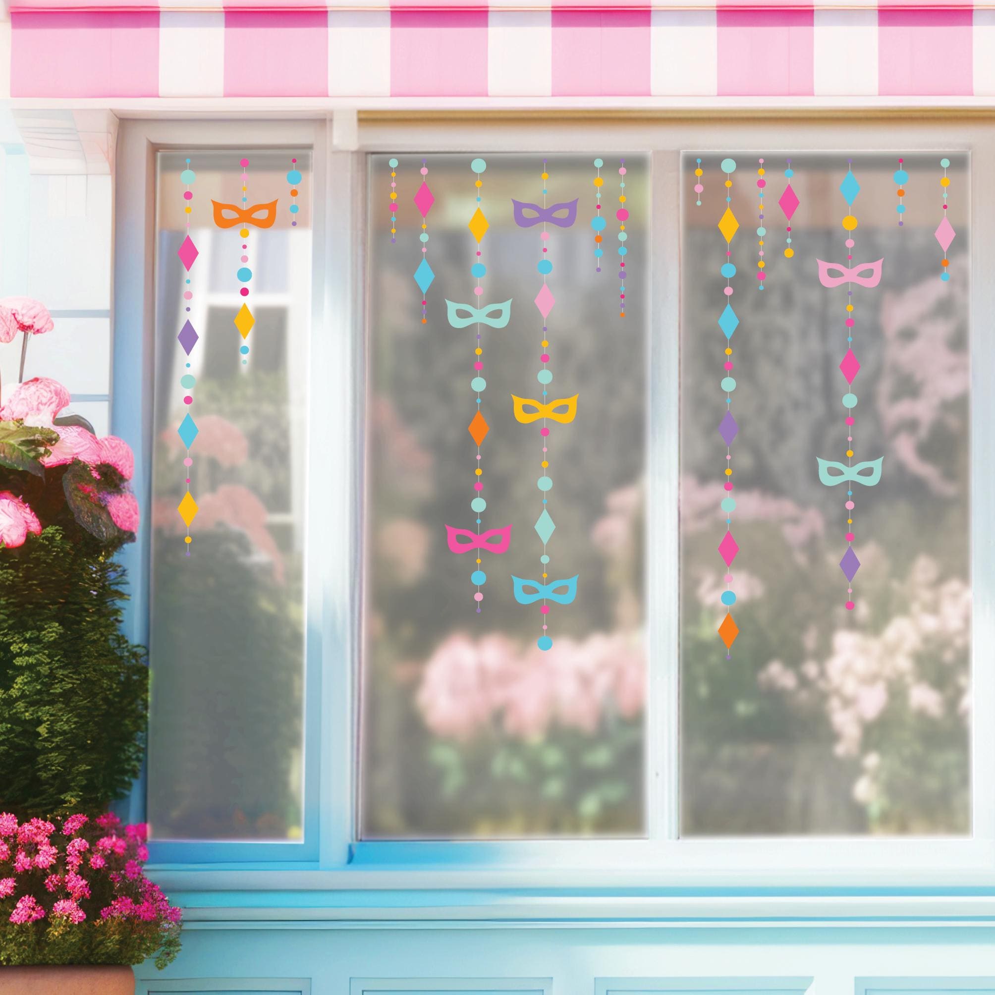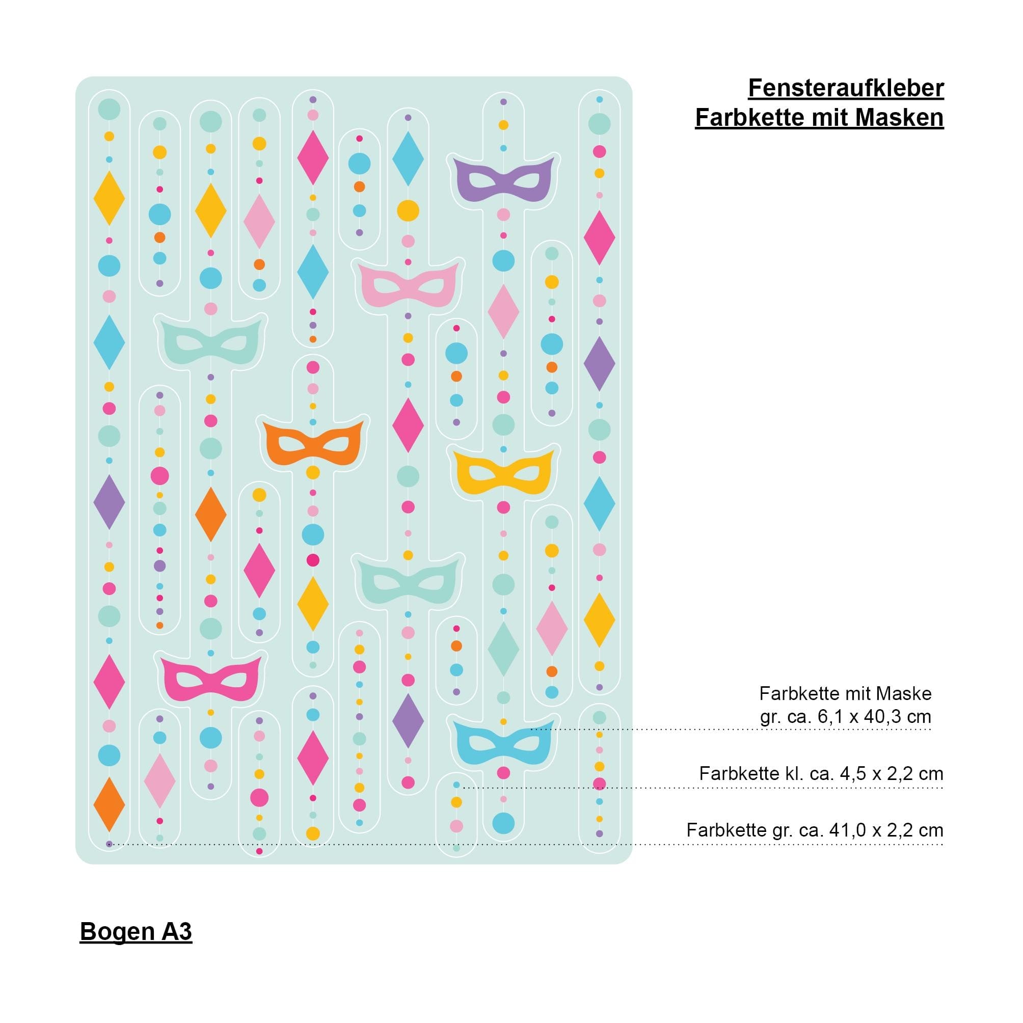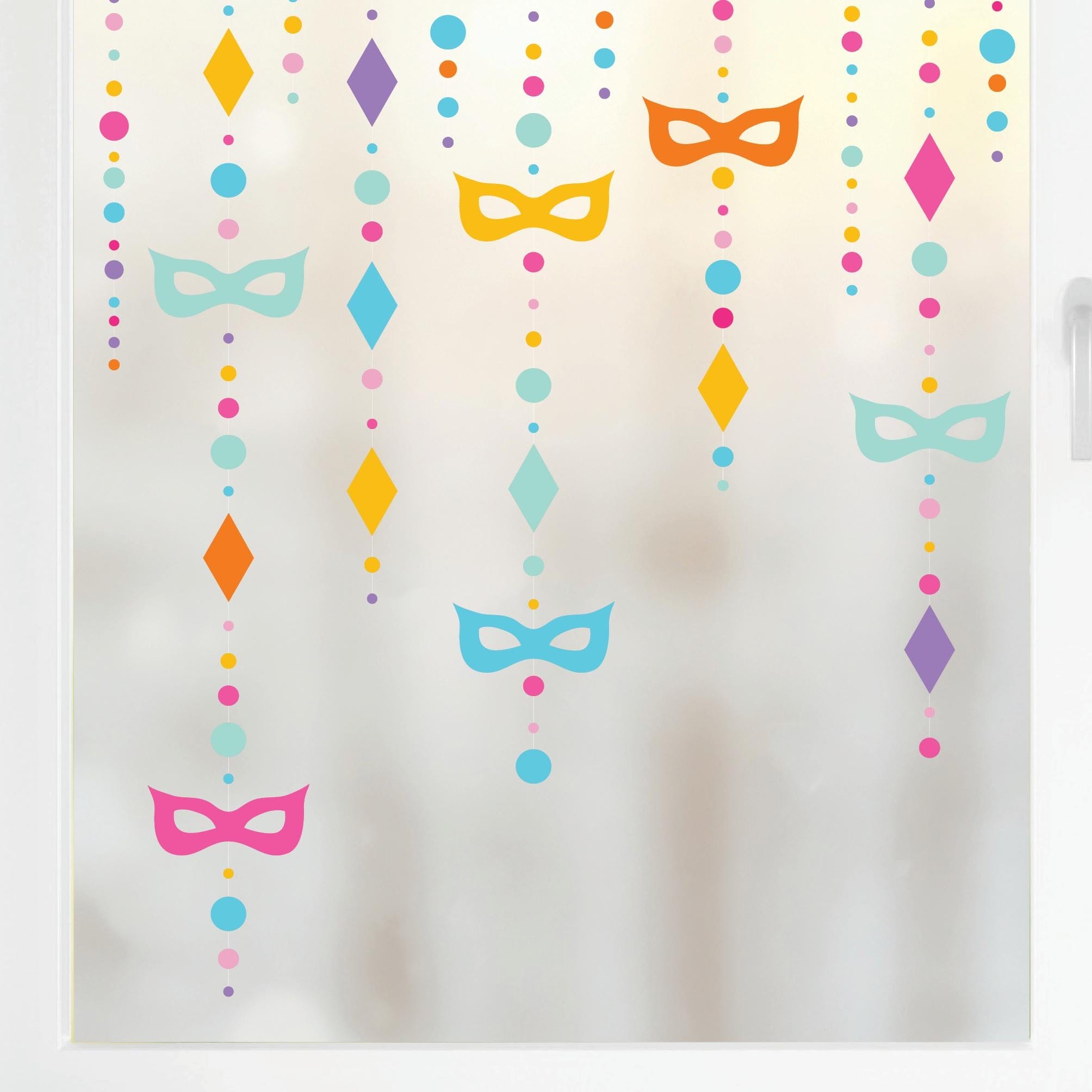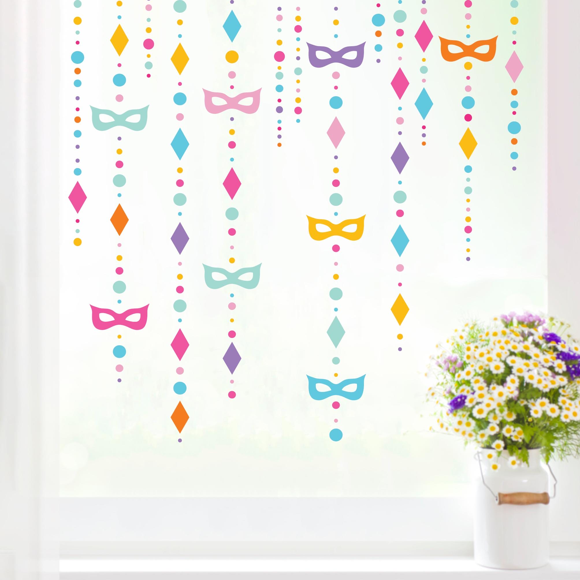 Fensterbild Konfettikette Maske Rauten Girlande bunte Vierecke und Masken farbig wiederverwendbar Frühling Fasching Karneval Geburtstag