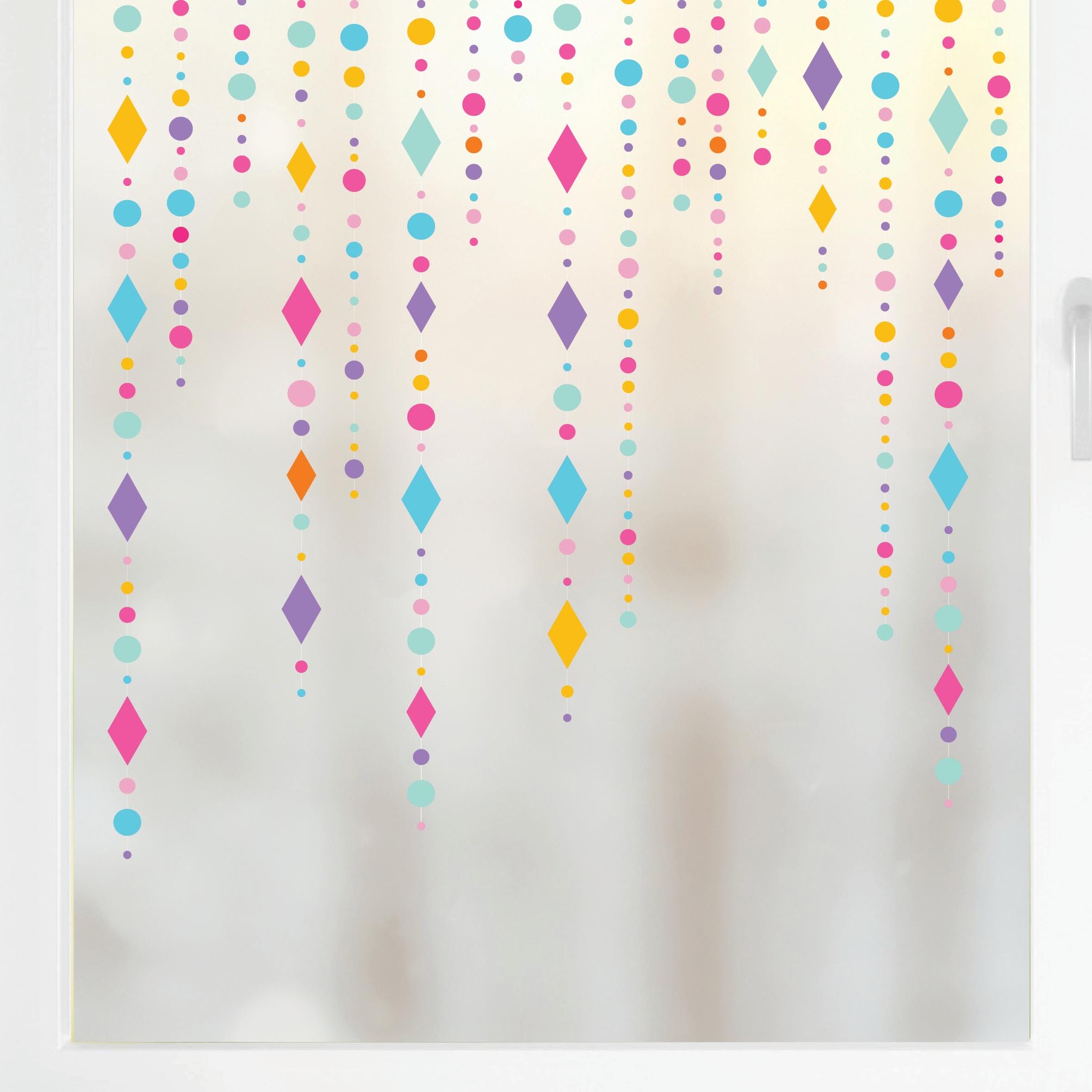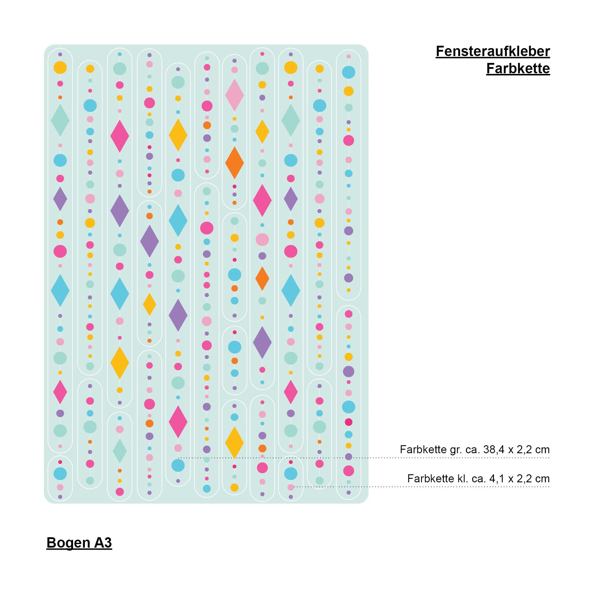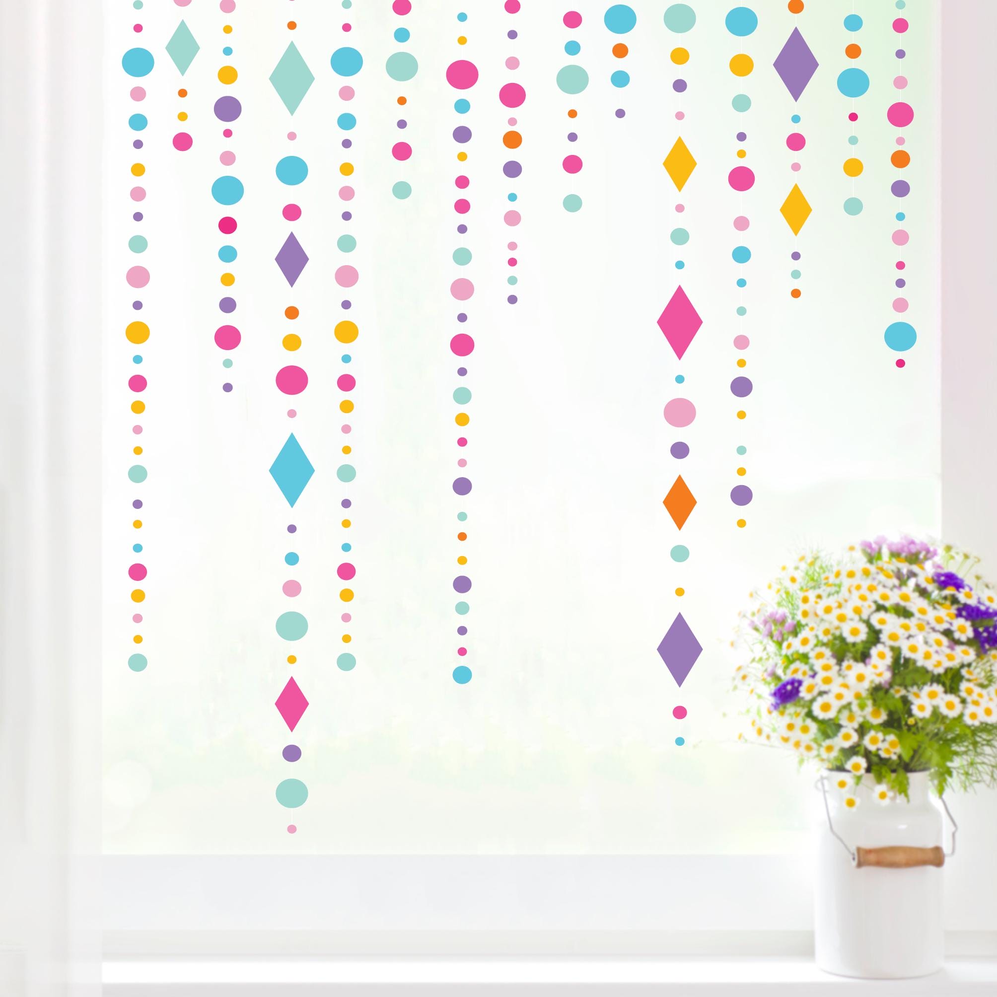 Fensterbild Konfettikette Rauten Girlande Farbspritzer bunte Viereck wiederverwendbar Frühling Fasching farbige Kreise Karneval Geburtstag
